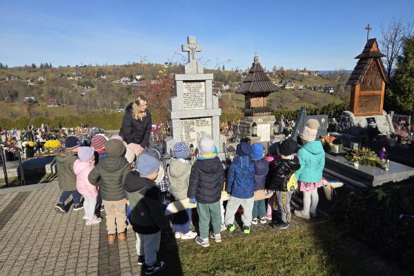 dodano dnia: 9 listopada 2025 / 19:12Czytaj więcejTuż po Święcie Wszystkich Świętych nasze przedszkolaki wybrały się na pobliski cmentarz, by uczcić pamięć tych, którzy odeszli. Dzieci z powagą i szacunkiem zapaliły znicze na grobach pamięciowych oraz na grobie założycieli naszej szkoły.