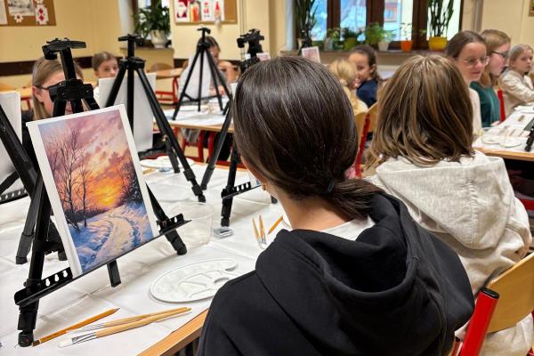 dodano dnia: 14 grudnia 2025 / 14:46Czytaj więcej2 grudnia 2025 roku uczennice klas piątych i siódmych miały okazję spotkać się z malarką oraz autorką ilustracji do bajki dziecięcej, panią Natalią Kwolek. Efektem końcowym spotkania były piękne prace na płótnie, namalowane przez naszą uzdolnioną młodzież.