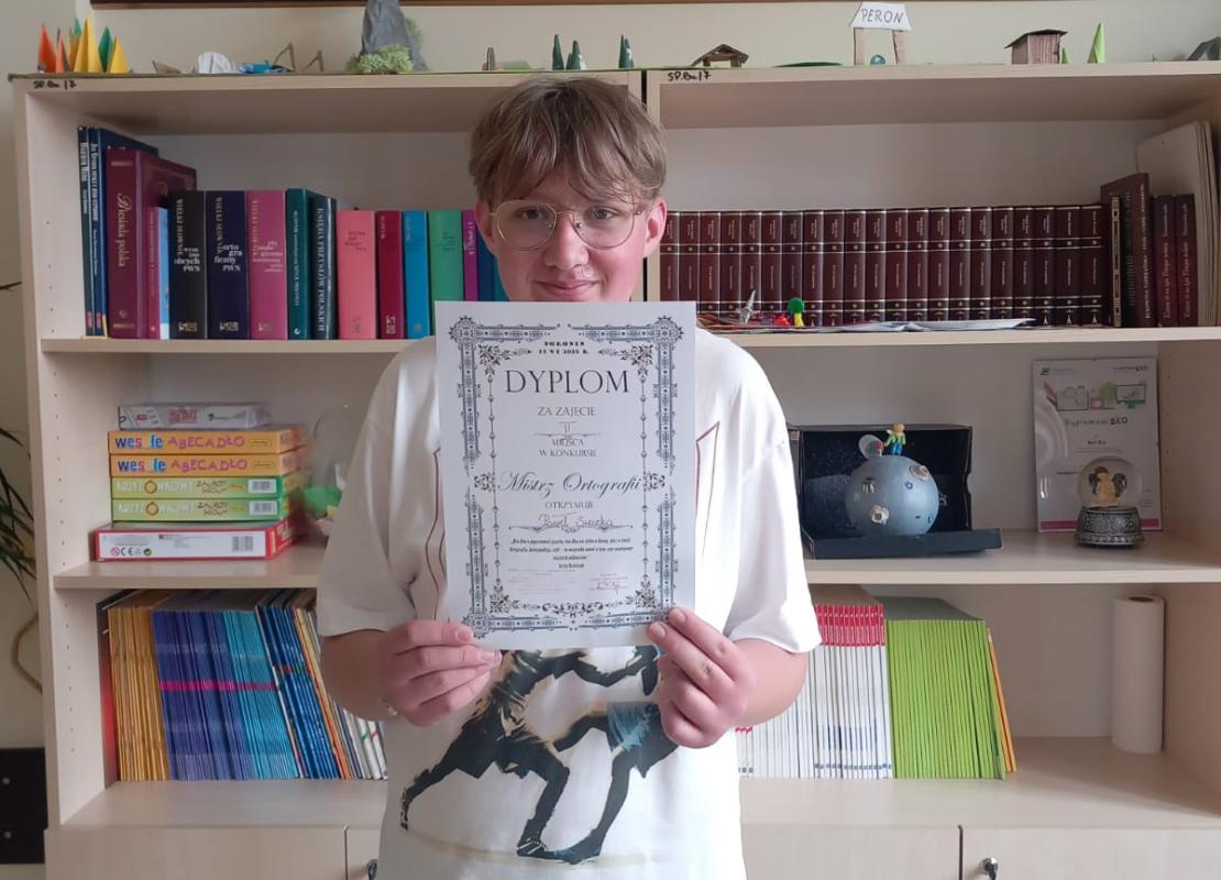 Z radością informujemy, że Paweł Sieczka, uczeń klasy VIIIb, odniósł duży sukces w Międzyszkolnym Konkursie Ortograficznym „Mistrz Ortografii 2025”, zdobywając zaszczytne II miejsce. Konkurs odbył się w Szkole Podstawowej im. Legionów Polskich w Poroninie i zgromadził uczestników z wielu okolicznych szkół.