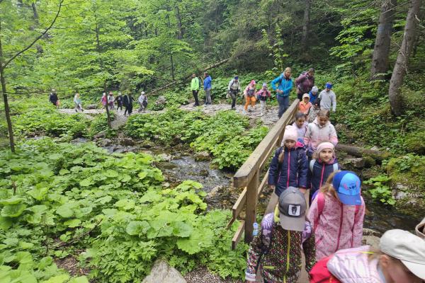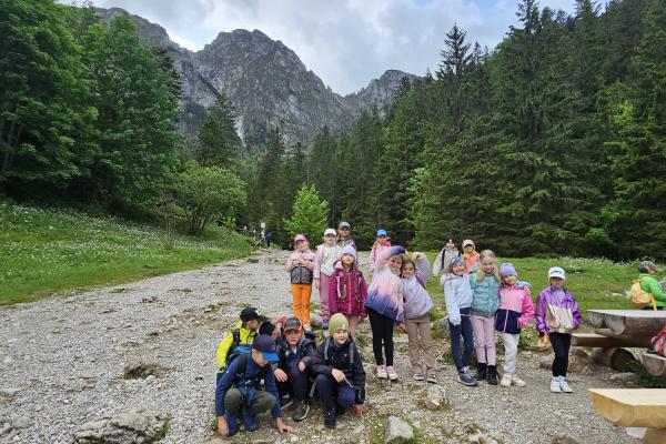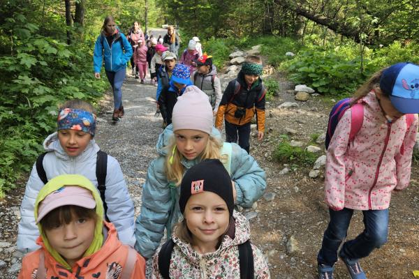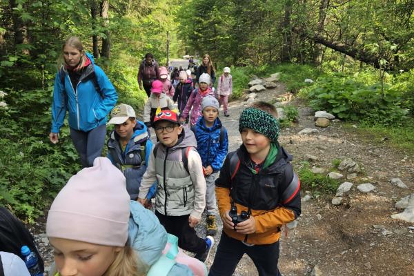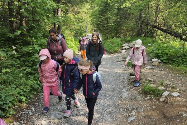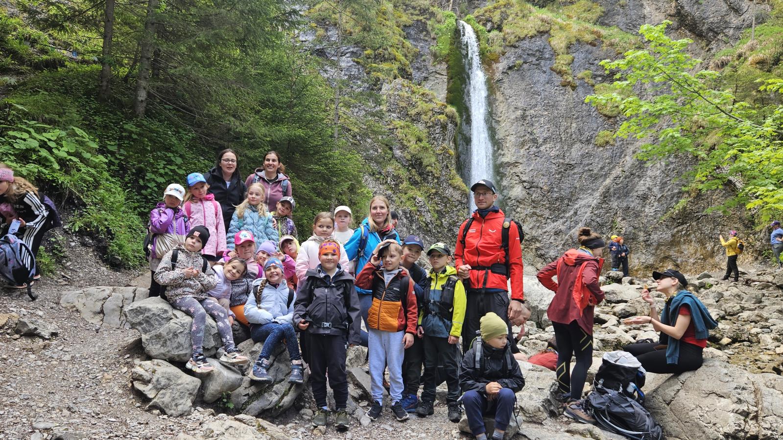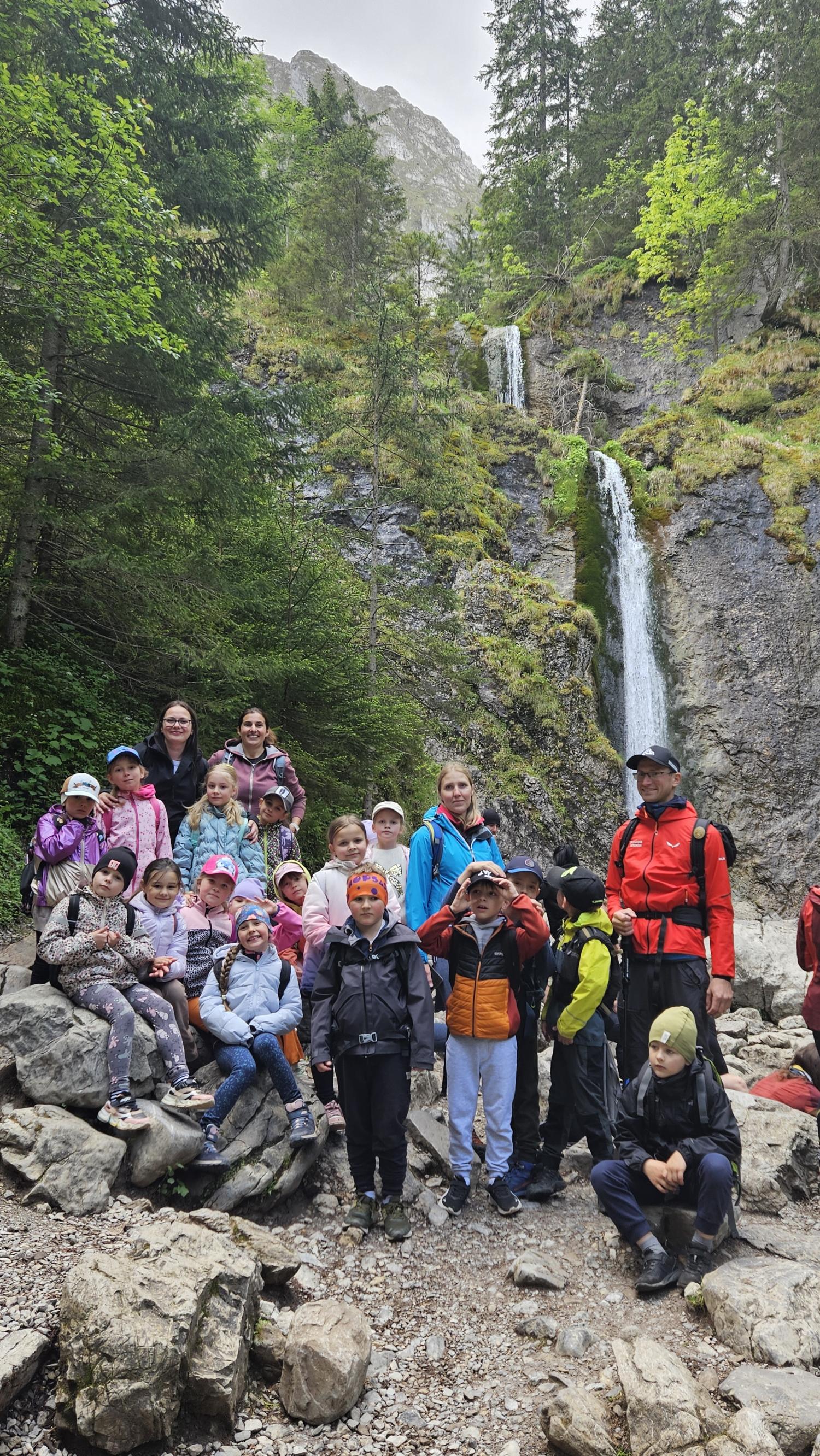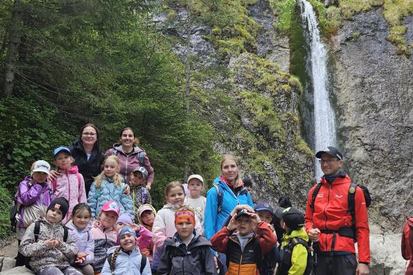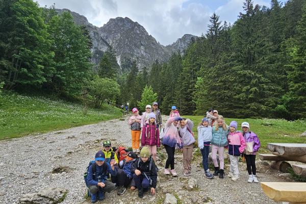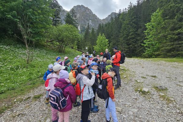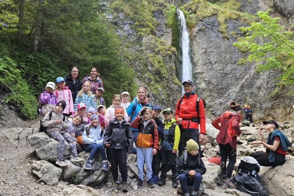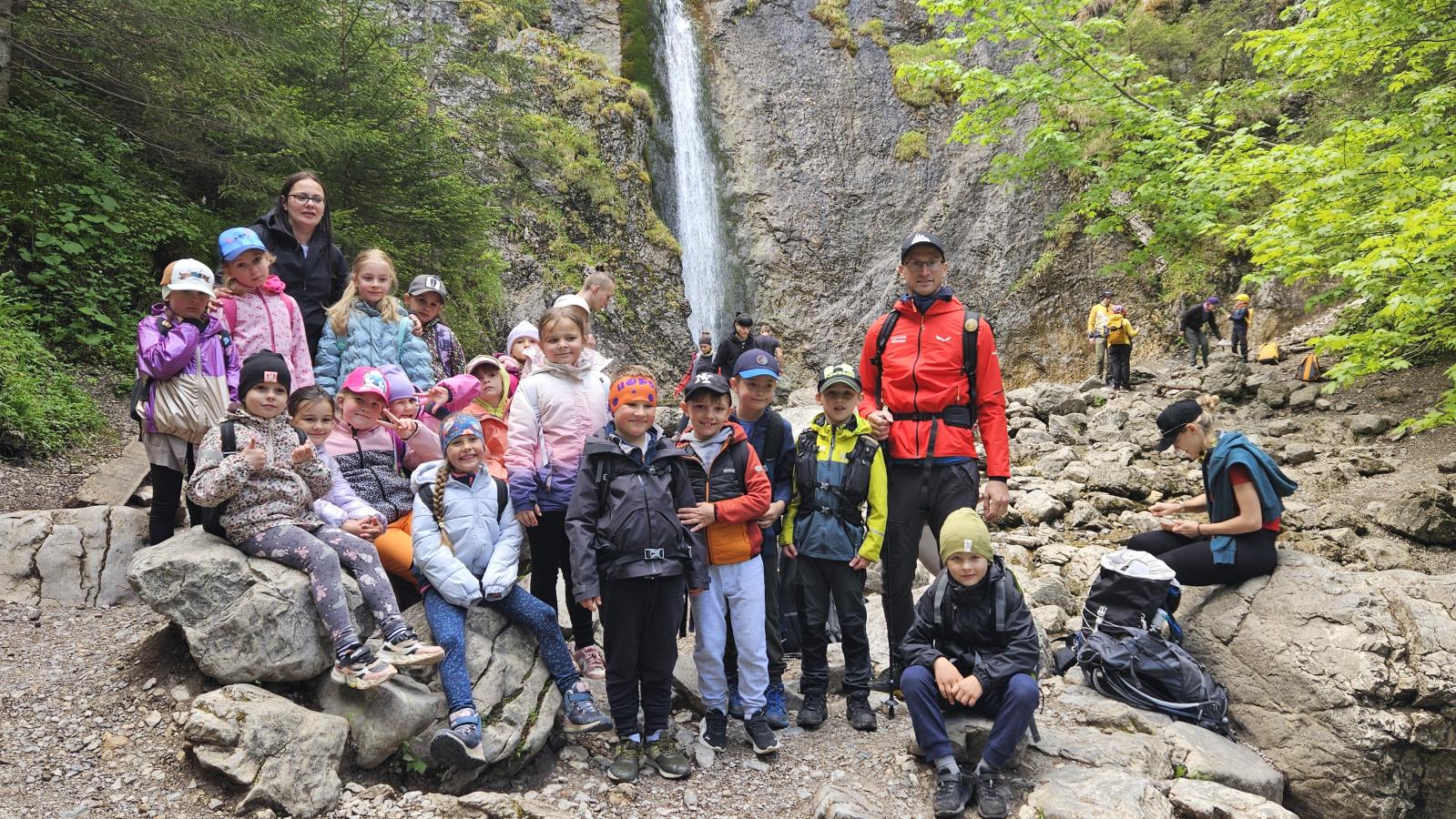 W czasie wędrówki uczniowie mieli okazję podziwiać piękno tatrzańskiej przyrody, wsłuchiwać się w odgłosy lasu i obserwować otaczający krajobraz. Zwieńczeniem naszej trasy był Wodospad Siklawica, który wzbudził zachwyt wszystkich uczestników. Dzieci z zainteresowaniem przyglądały się spadającej z wysokości wodzie i z radością robiły pamiątkowe zdjęcia. W trakcie wycieczki nie zabrakło również odpoczynku na polanie oraz rozmów o zasadach bezpieczeństwa w górach i potrzebie ochrony przyrody.
