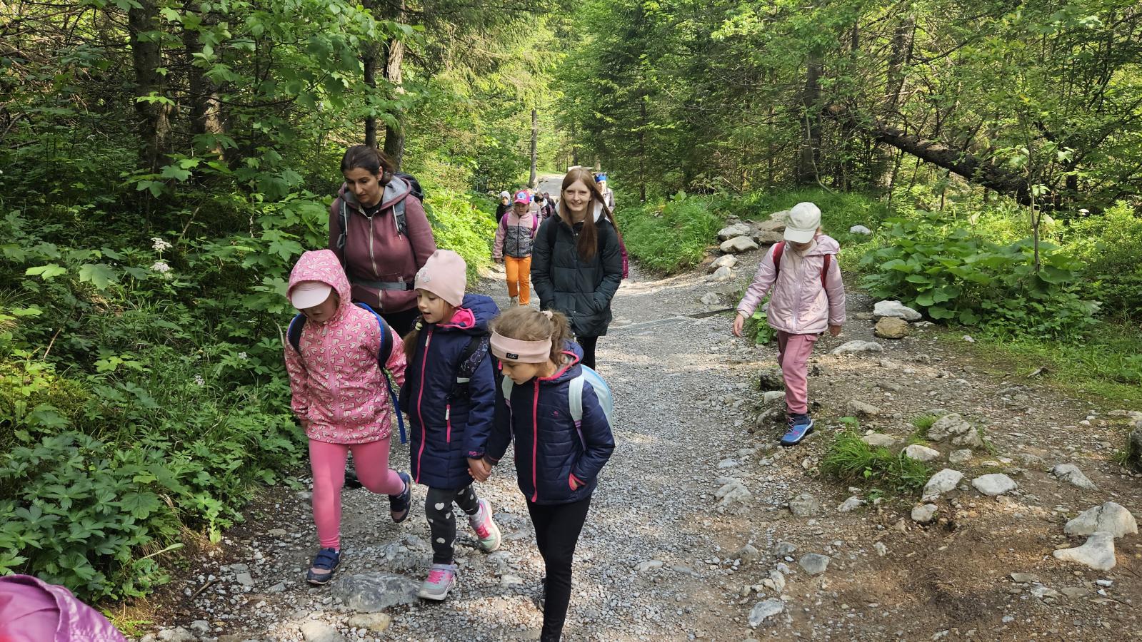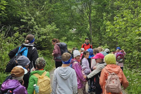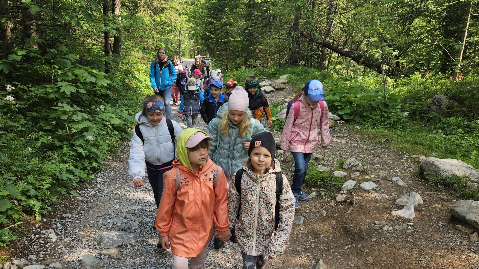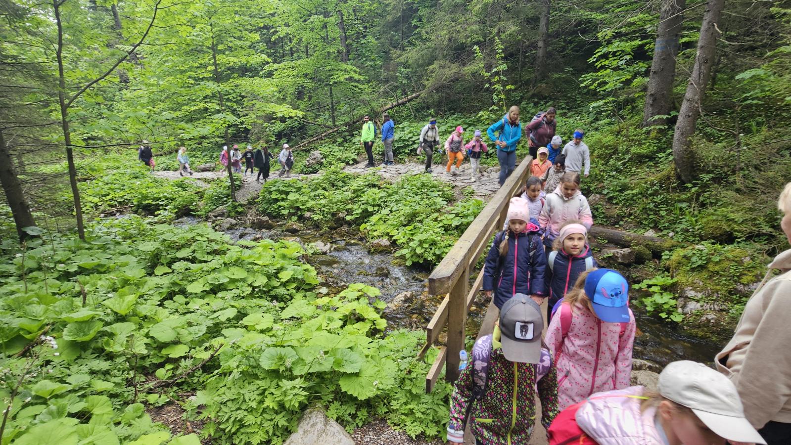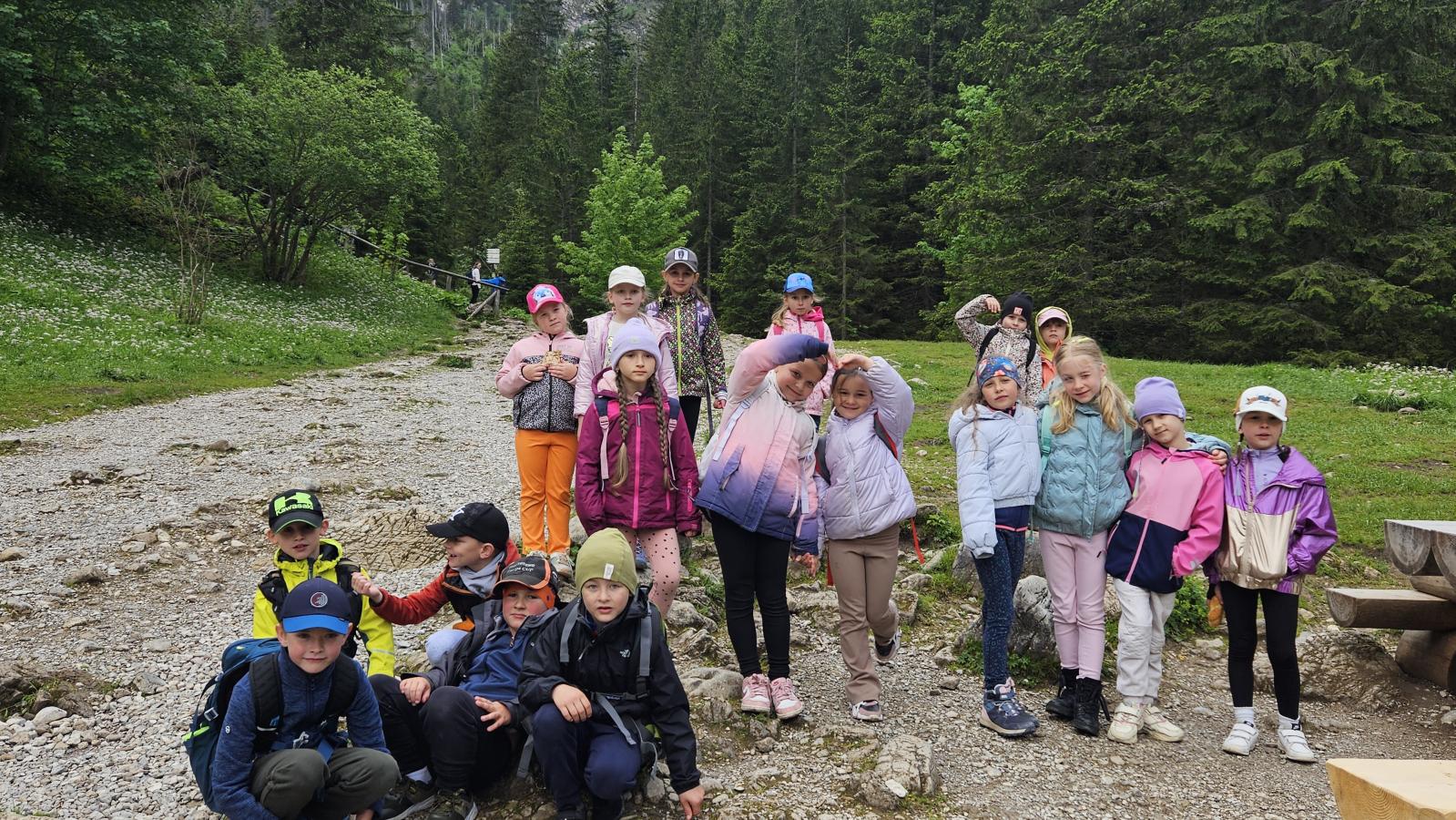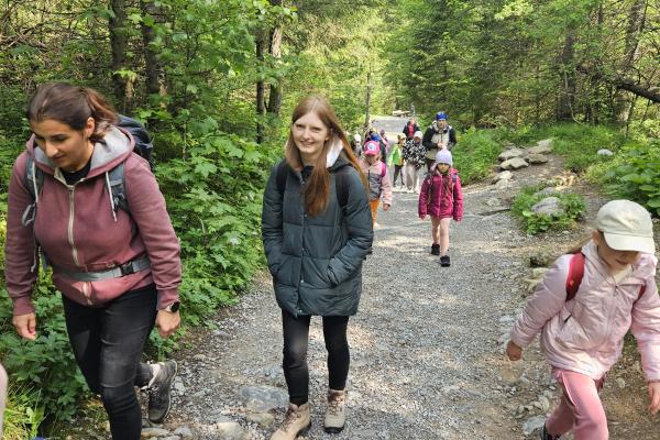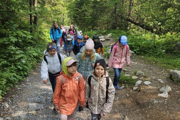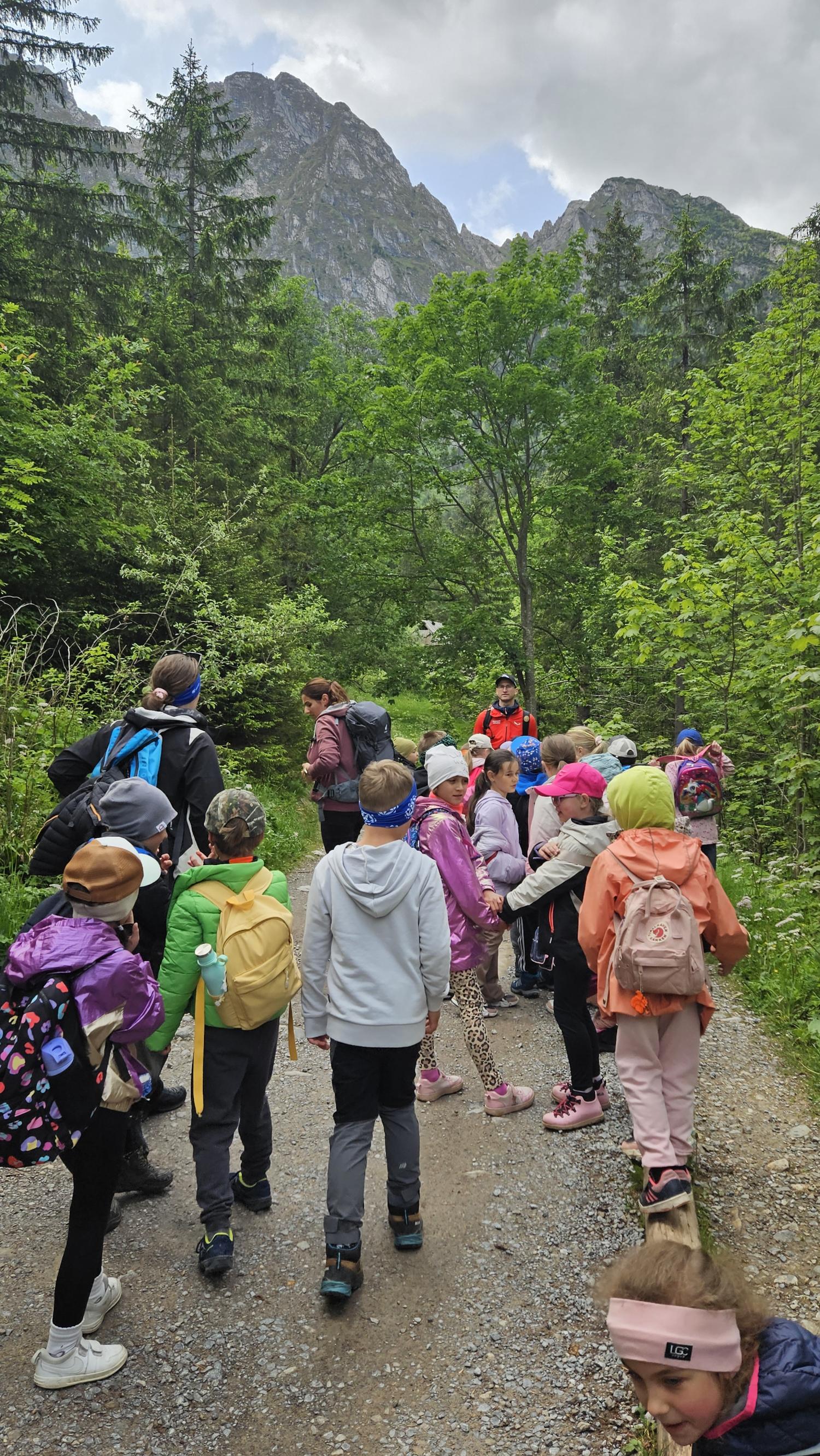 W czasie wędrówki uczniowie mieli okazję podziwiać piękno tatrzańskiej przyrody, wsłuchiwać się w odgłosy lasu i obserwować otaczający krajobraz. Zwieńczeniem naszej trasy był Wodospad Siklawica, który wzbudził zachwyt wszystkich uczestników. Dzieci z zainteresowaniem przyglądały się spadającej z wysokości wodzie i z radością robiły pamiątkowe zdjęcia. W trakcie wycieczki nie zabrakło również odpoczynku na polanie oraz rozmów o zasadach bezpieczeństwa w górach i potrzebie ochrony przyrody.