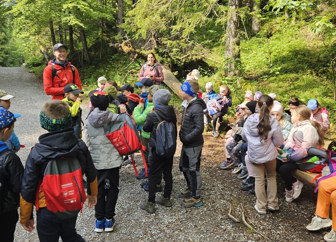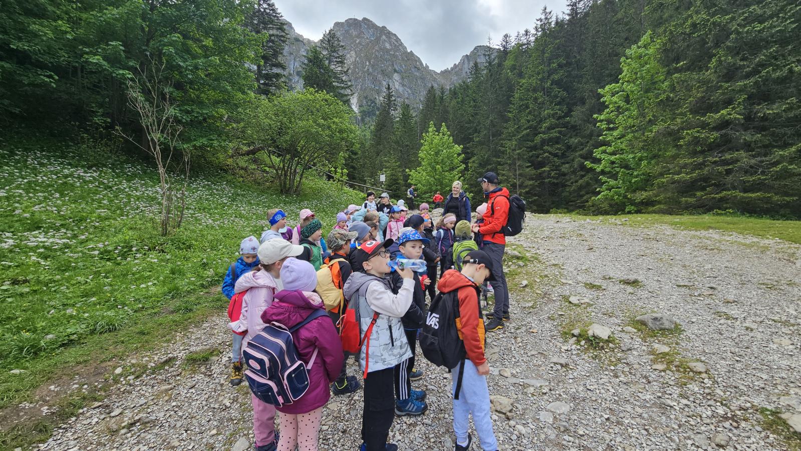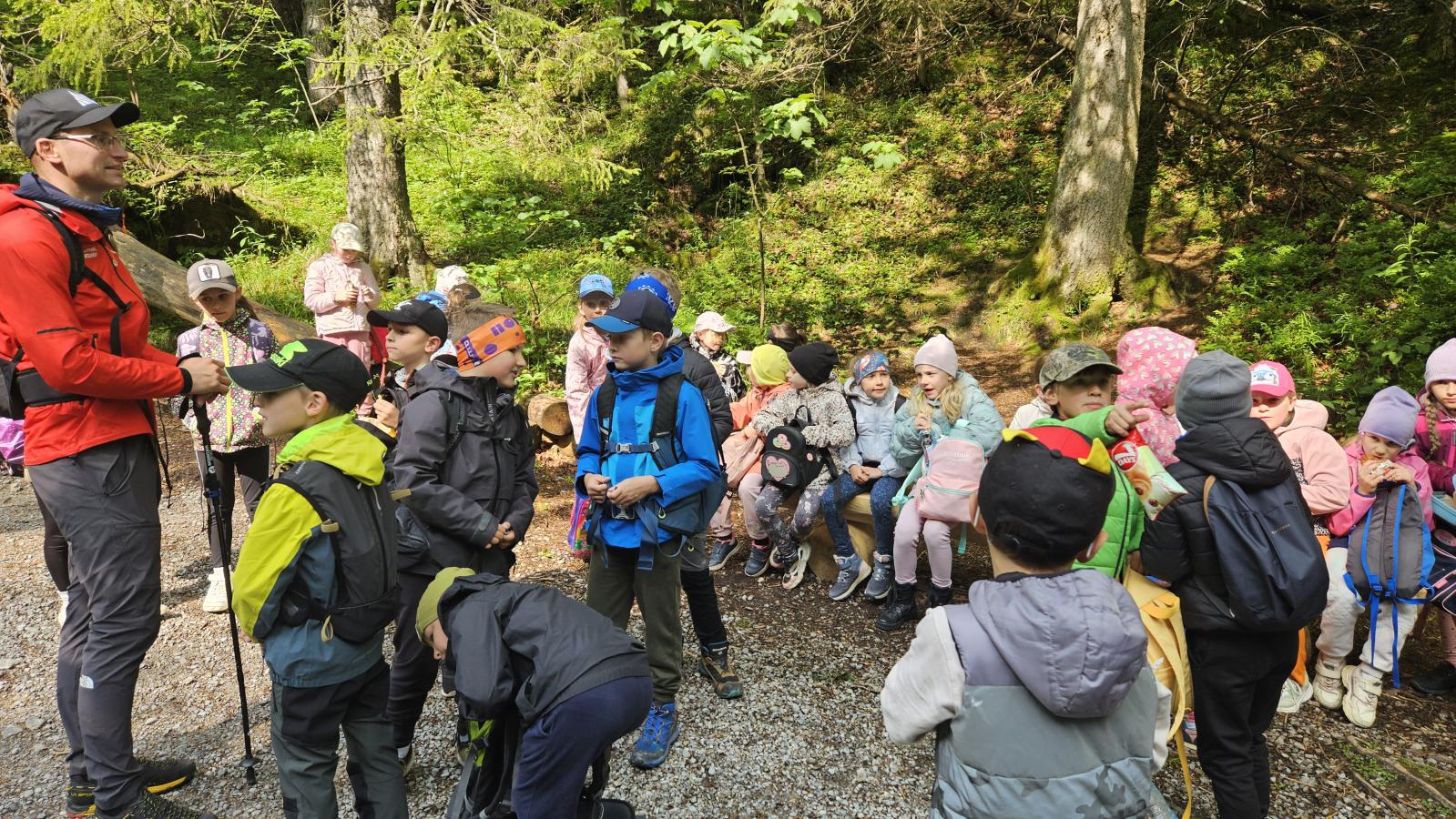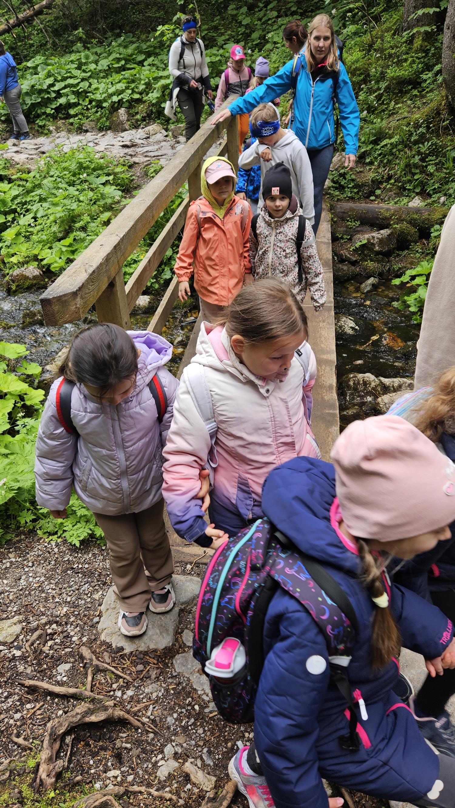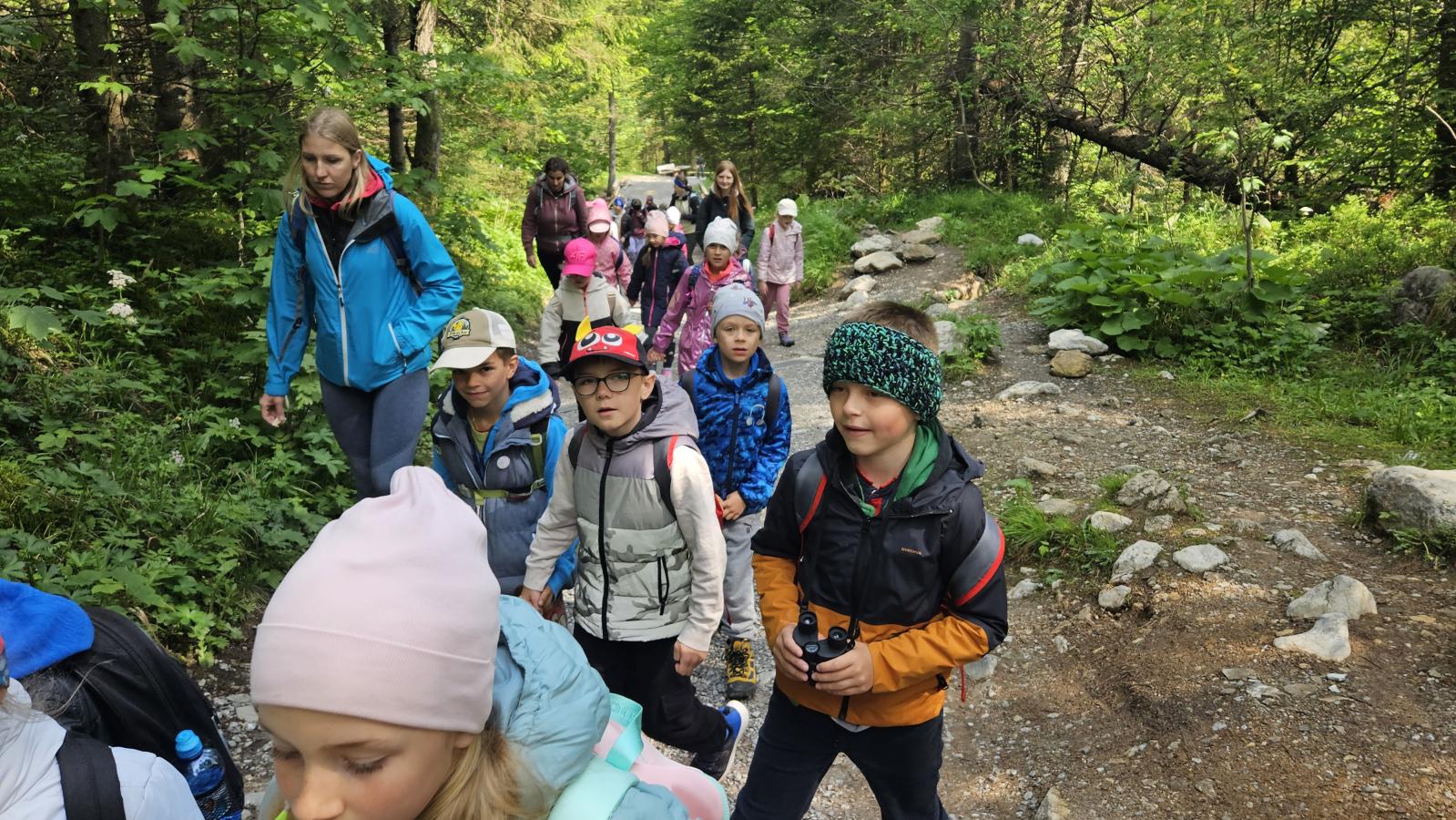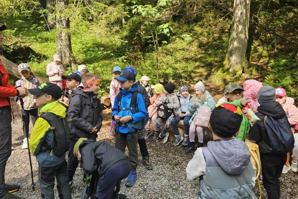 W czasie wędrówki uczniowie mieli okazję podziwiać piękno tatrzańskiej przyrody, wsłuchiwać się w odgłosy lasu i obserwować otaczający krajobraz. Zwieńczeniem naszej trasy był Wodospad Siklawica, który wzbudził zachwyt wszystkich uczestników. Dzieci z zainteresowaniem przyglądały się spadającej z wysokości wodzie i z radością robiły pamiątkowe zdjęcia. W trakcie wycieczki nie zabrakło również odpoczynku na polanie oraz rozmów o zasadach bezpieczeństwa w górach i potrzebie ochrony przyrody.