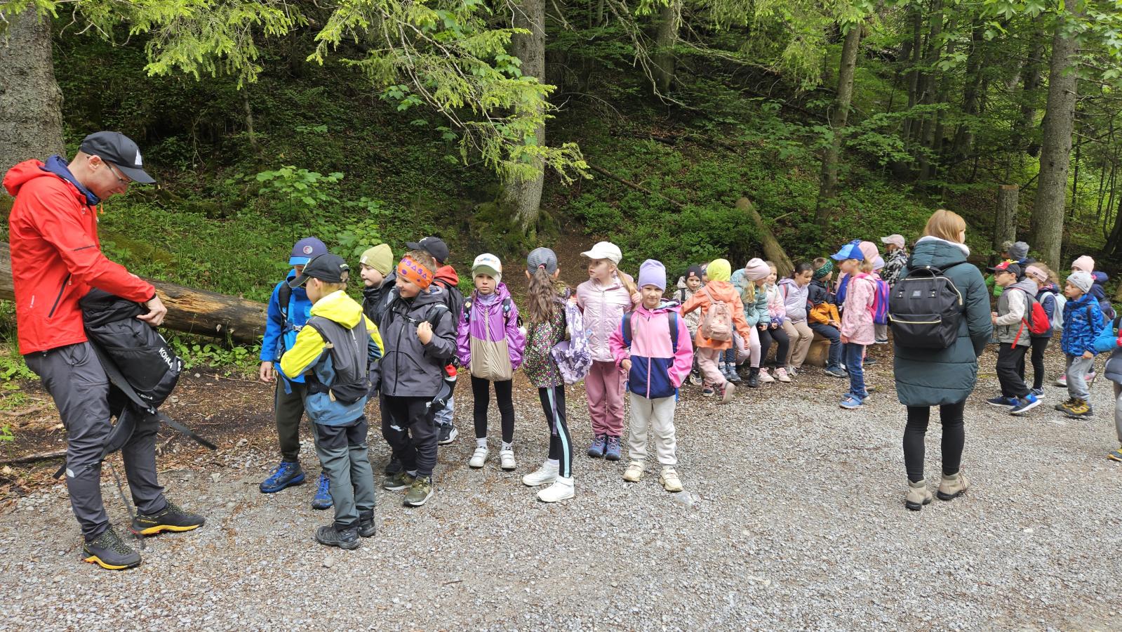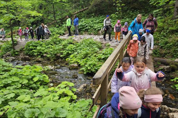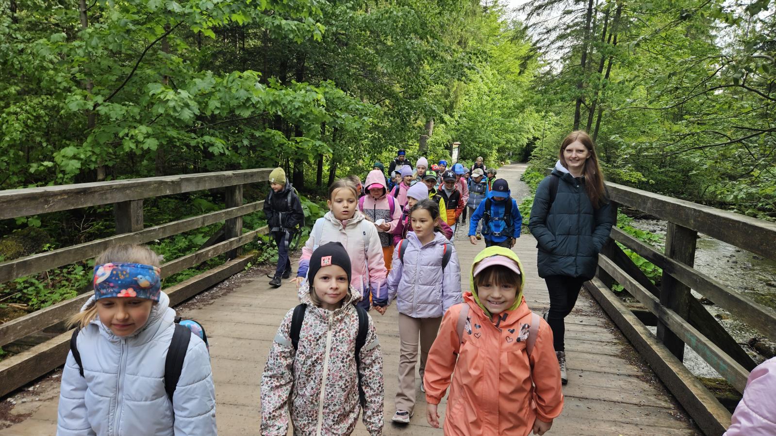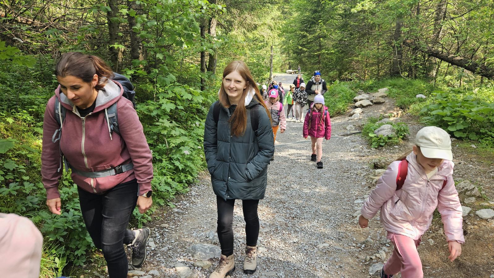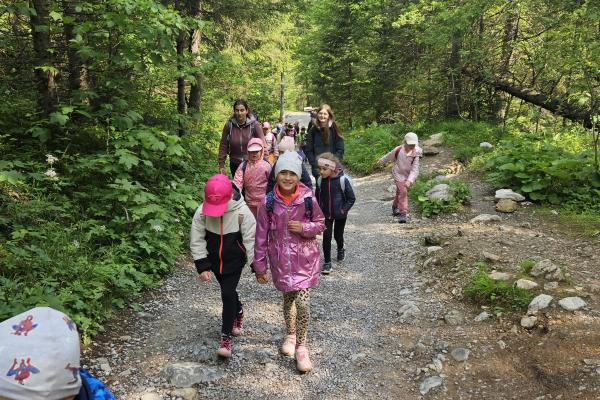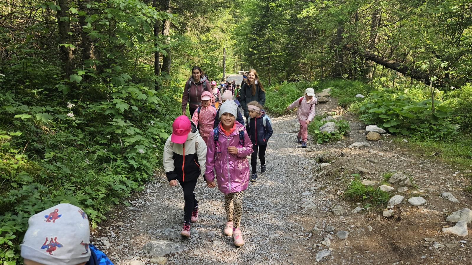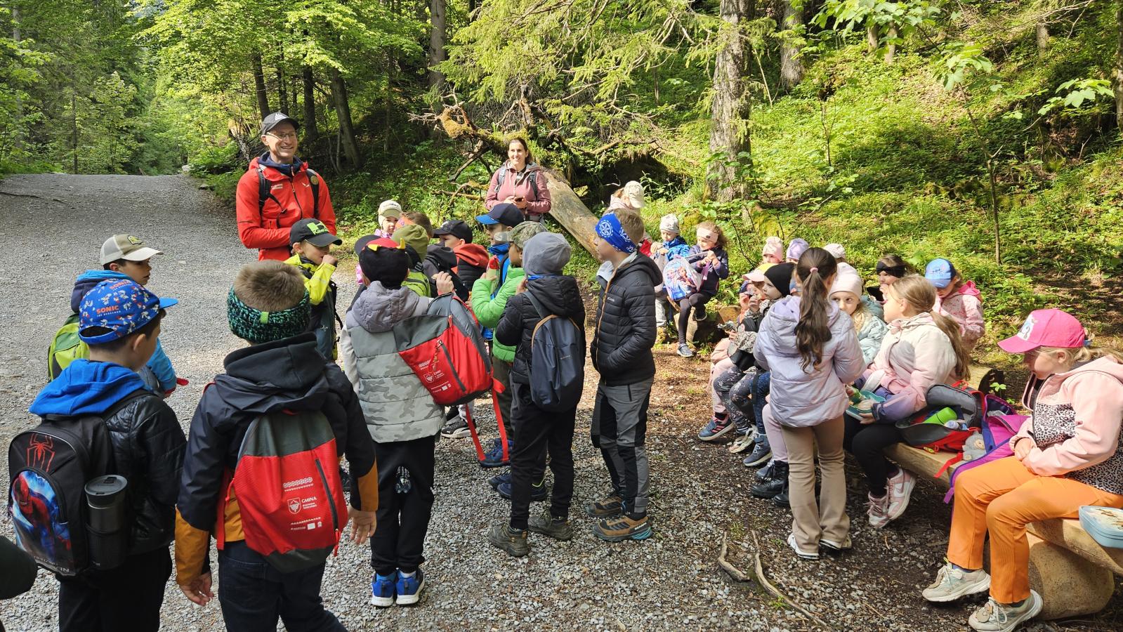 W czasie wędrówki uczniowie mieli okazję podziwiać piękno tatrzańskiej przyrody, wsłuchiwać się w odgłosy lasu i obserwować otaczający krajobraz. Zwieńczeniem naszej trasy był Wodospad Siklawica, który wzbudził zachwyt wszystkich uczestników. Dzieci z zainteresowaniem przyglądały się spadającej z wysokości wodzie i z radością robiły pamiątkowe zdjęcia. W trakcie wycieczki nie zabrakło również odpoczynku na polanie oraz rozmów o zasadach bezpieczeństwa w górach i potrzebie ochrony przyrody.