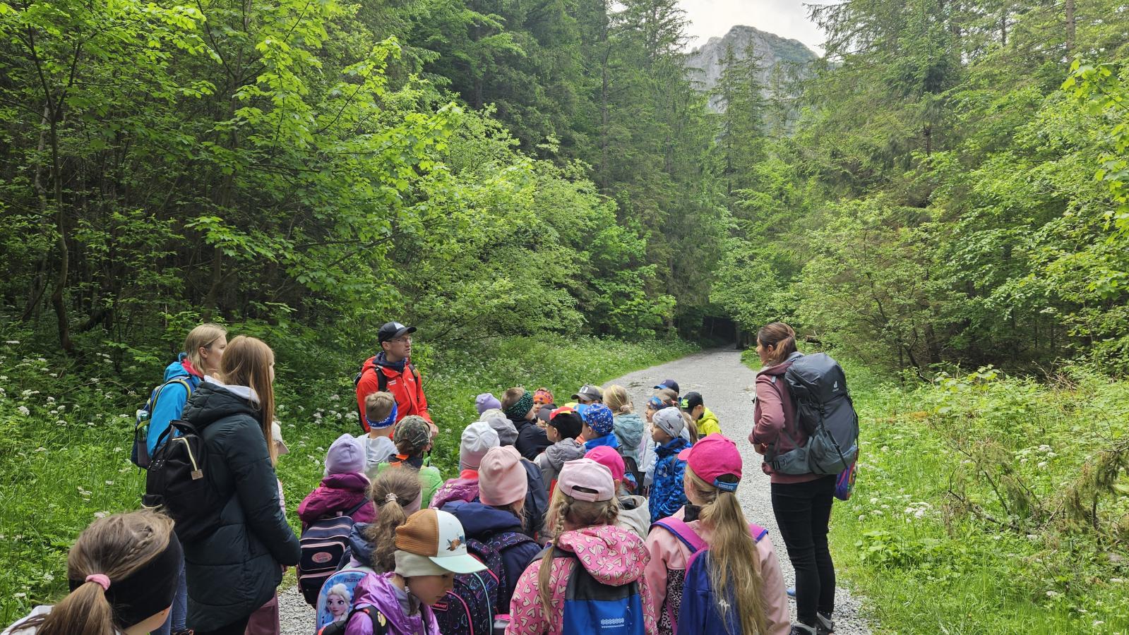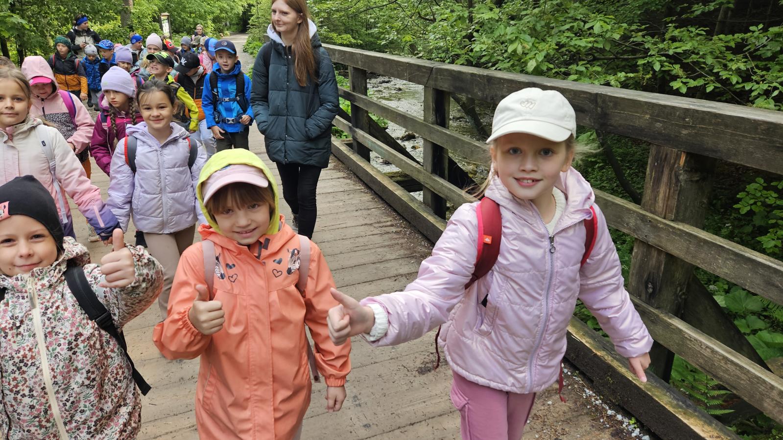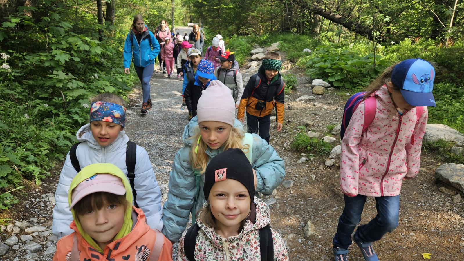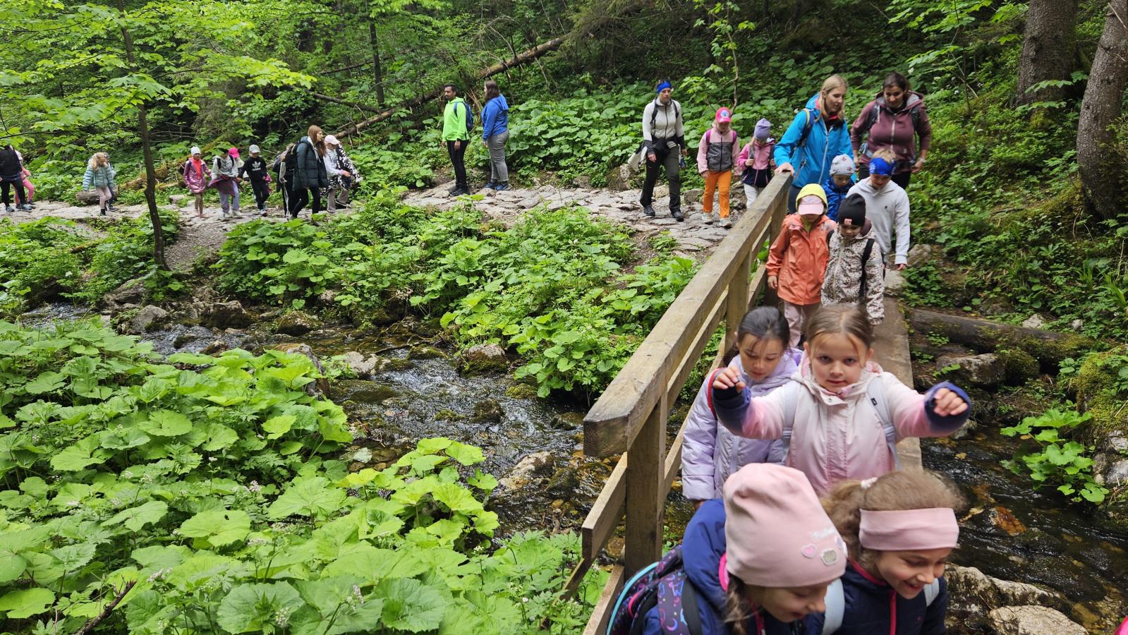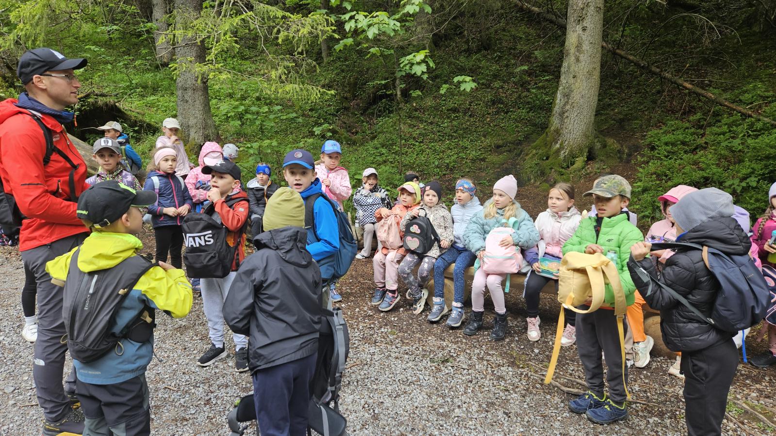 W czasie wędrówki uczniowie mieli okazję podziwiać piękno tatrzańskiej przyrody, wsłuchiwać się w odgłosy lasu i obserwować otaczający krajobraz. Zwieńczeniem naszej trasy był Wodospad Siklawica, który wzbudził zachwyt wszystkich uczestników. Dzieci z zainteresowaniem przyglądały się spadającej z wysokości wodzie i z radością robiły pamiątkowe zdjęcia. W trakcie wycieczki nie zabrakło również odpoczynku na polanie oraz rozmów o zasadach bezpieczeństwa w górach i potrzebie ochrony przyrody.