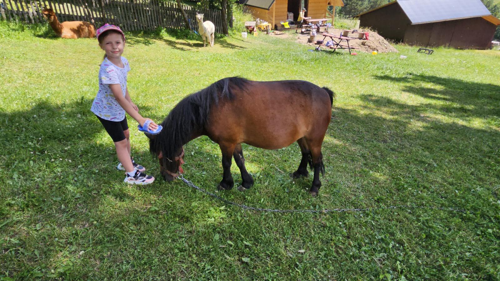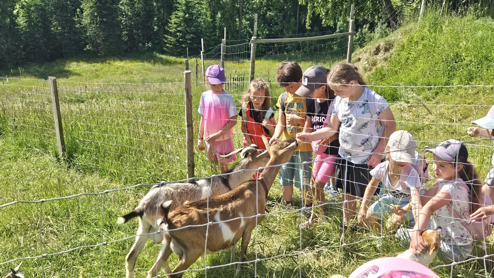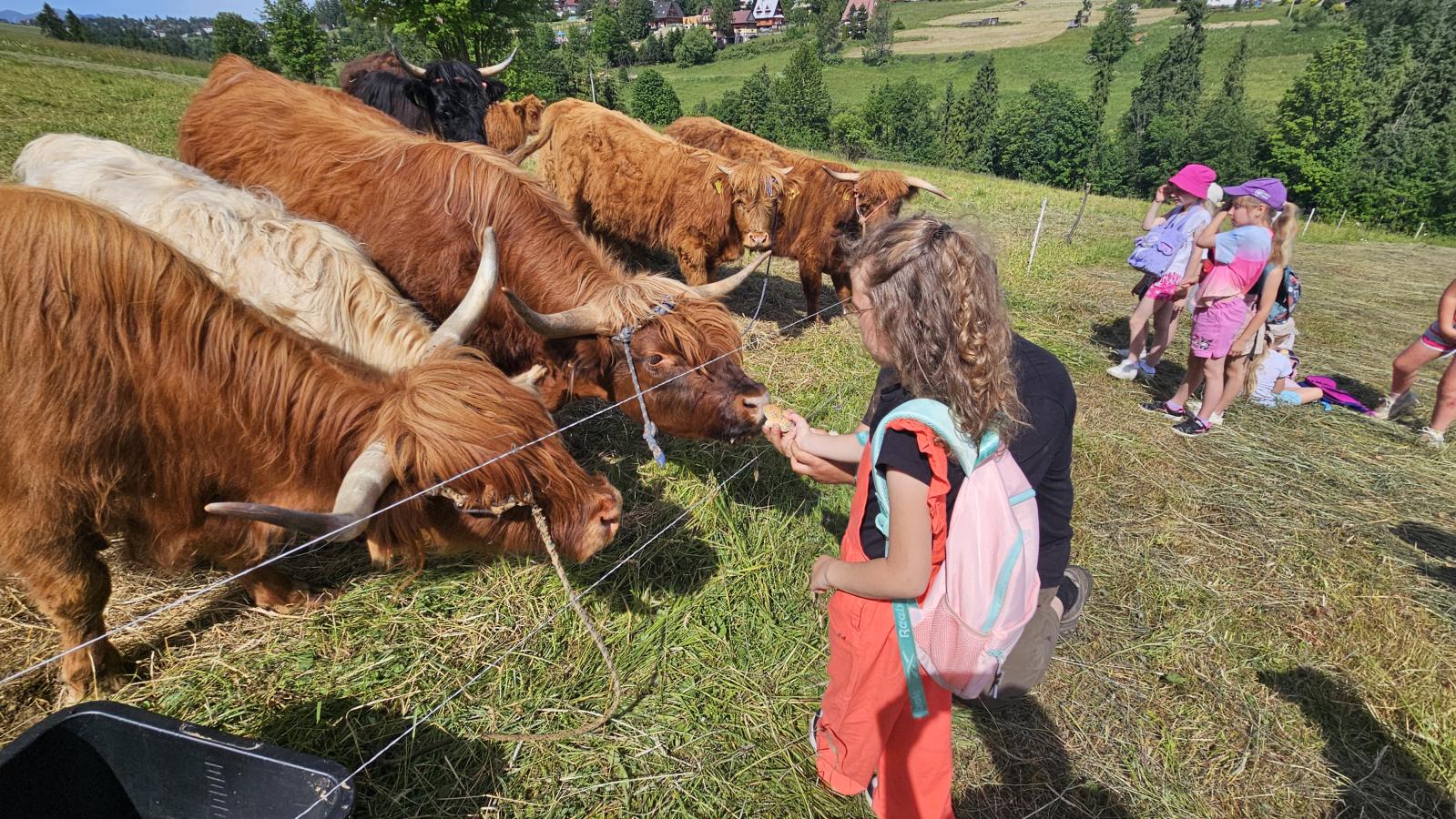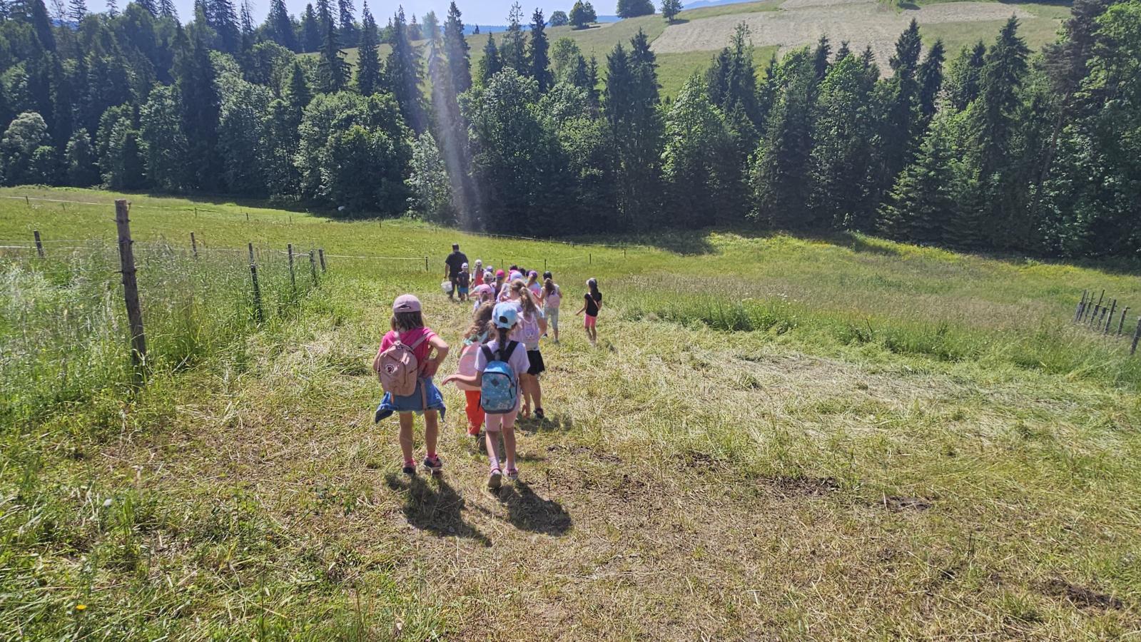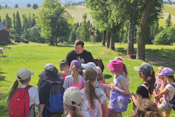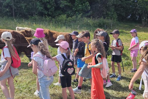 Dzieci miały okazję zobaczyć z bliska zwierzęta hodowlane, takie jak: kozy, owce, krowy, alpaki, kucyki, a także wyjątkowe krowy z długą sierścią. Największą radość sprawiła możliwość pogłaskania i nakarmienia zwierząt, a niektóre dzieci po raz pierwszy w życiu mogły poczuć, jak to jest jechać na kucyku! Nie zabrakło również akcentów ogrodniczych – dzieci zwiedziły piękny ogródek, pełen różnorodnych warzyw, a następnie wzięły udział w zabawnym quizie „Co to za warzywo?”, który wywołał wiele śmiechu i radości. Po pełnym wrażeń zwiedzaniu przyszedł czas na zabawy na świeżym powietrzu oraz wspólne ognisko z pieczeniem kiełbasek, które smakowały wyjątkowo po tak aktywnym dniu.