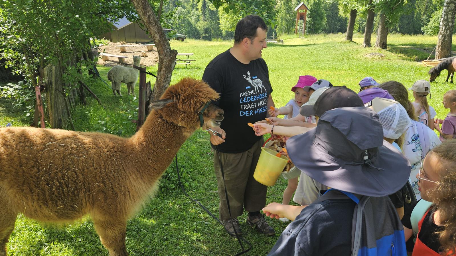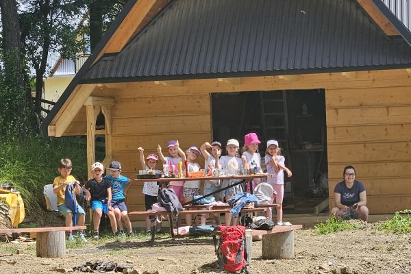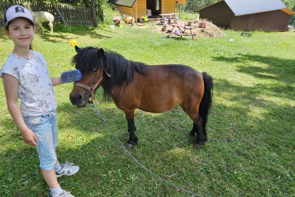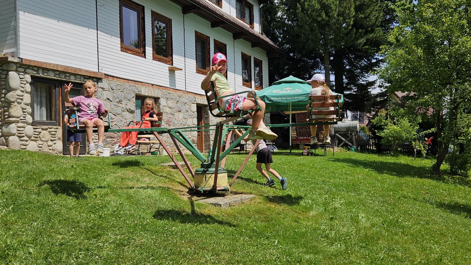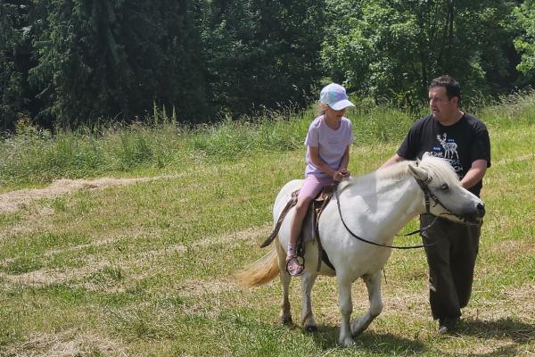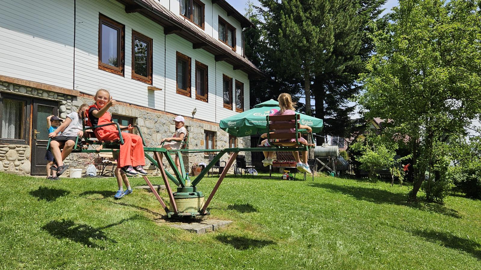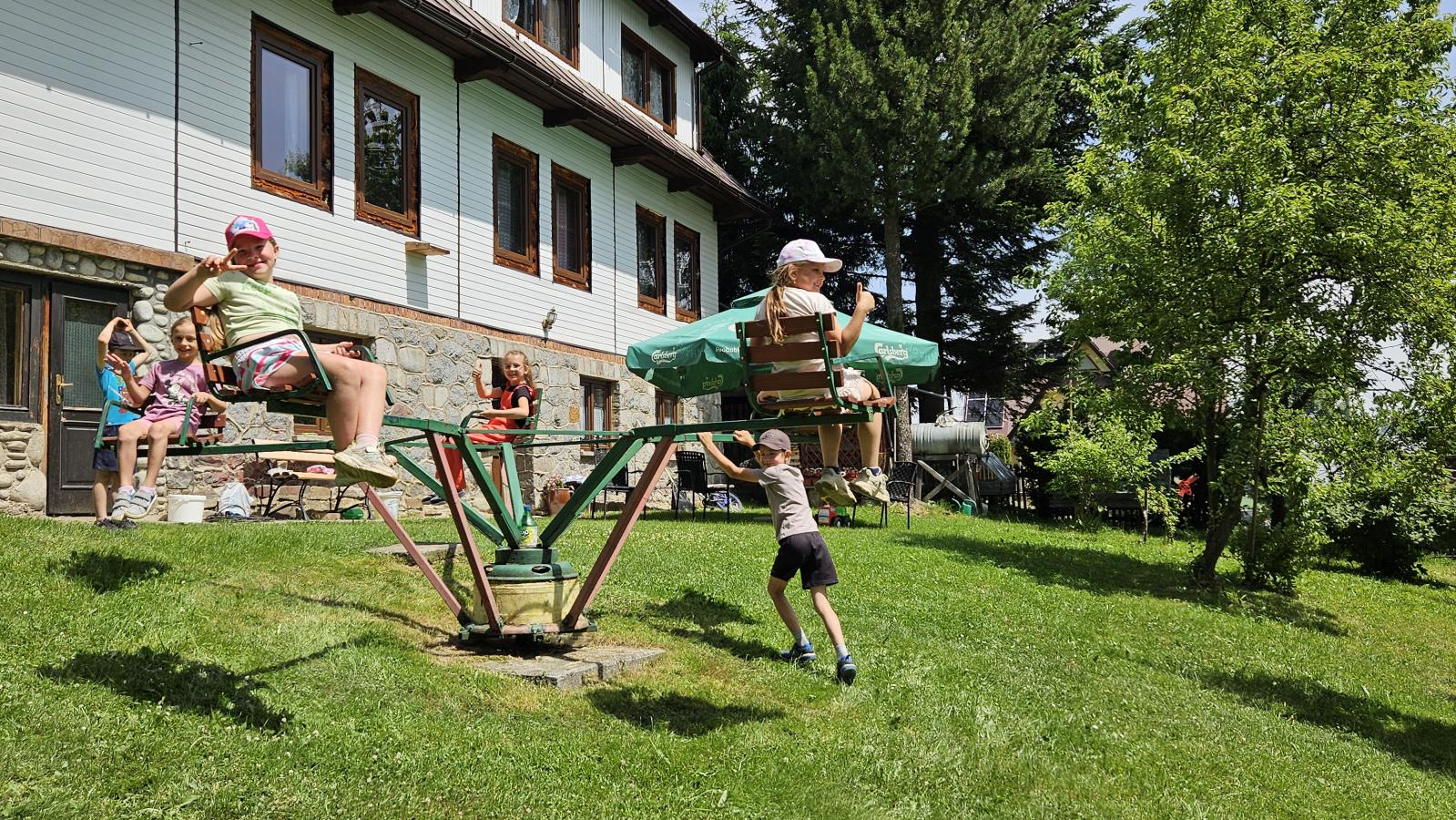 Dzieci miały okazję zobaczyć z bliska zwierzęta hodowlane, takie jak: kozy, owce, krowy, alpaki, kucyki, a także wyjątkowe krowy z długą sierścią. Największą radość sprawiła możliwość pogłaskania i nakarmienia zwierząt, a niektóre dzieci po raz pierwszy w życiu mogły poczuć, jak to jest jechać na kucyku! Nie zabrakło również akcentów ogrodniczych – dzieci zwiedziły piękny ogródek, pełen różnorodnych warzyw, a następnie wzięły udział w zabawnym quizie „Co to za warzywo?”, który wywołał wiele śmiechu i radości. Po pełnym wrażeń zwiedzaniu przyszedł czas na zabawy na świeżym powietrzu oraz wspólne ognisko z pieczeniem kiełbasek, które smakowały wyjątkowo po tak aktywnym dniu.