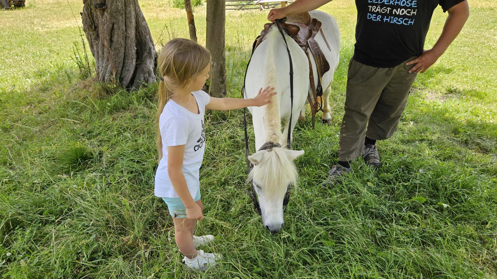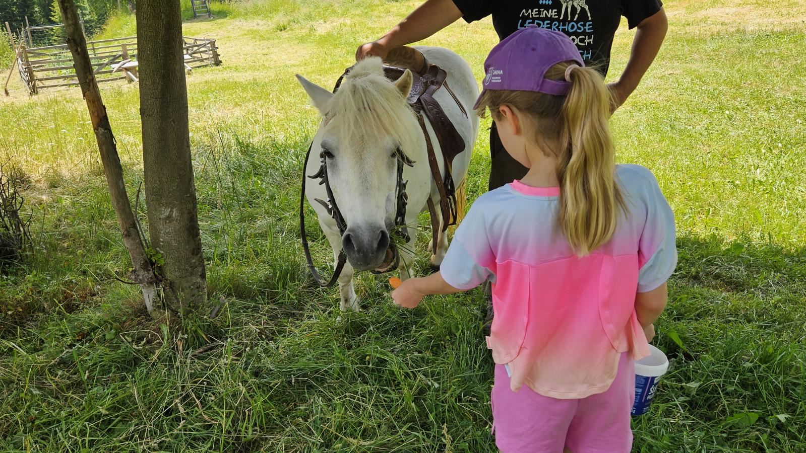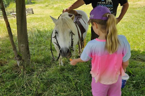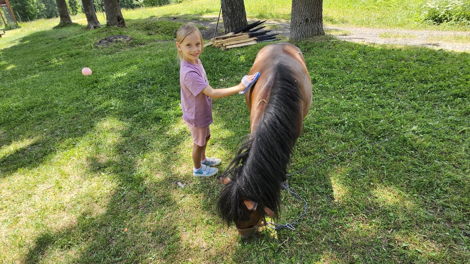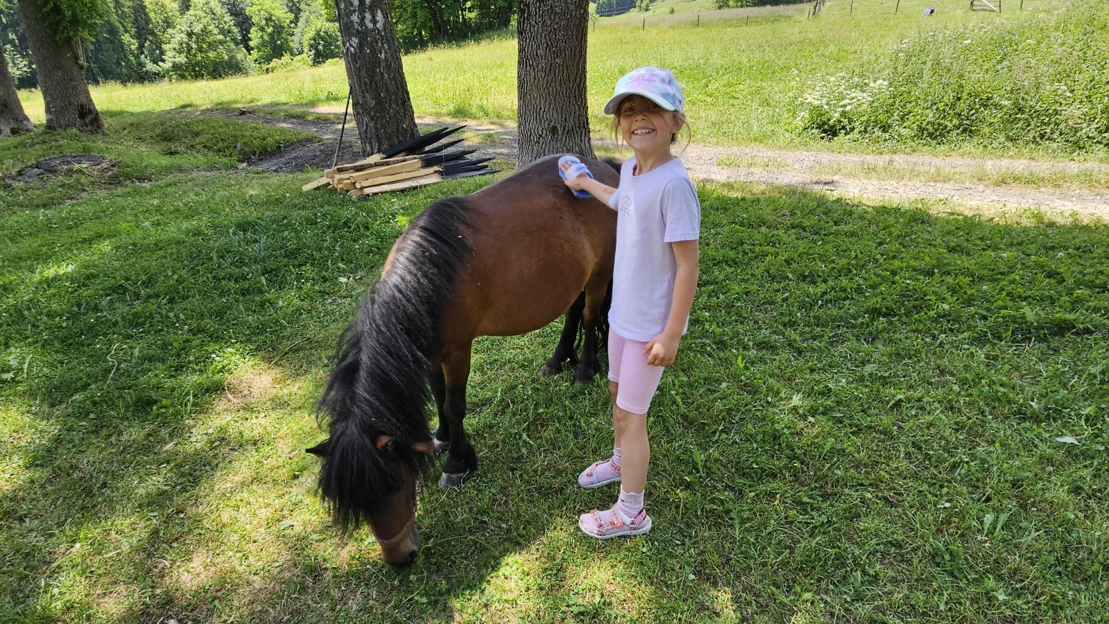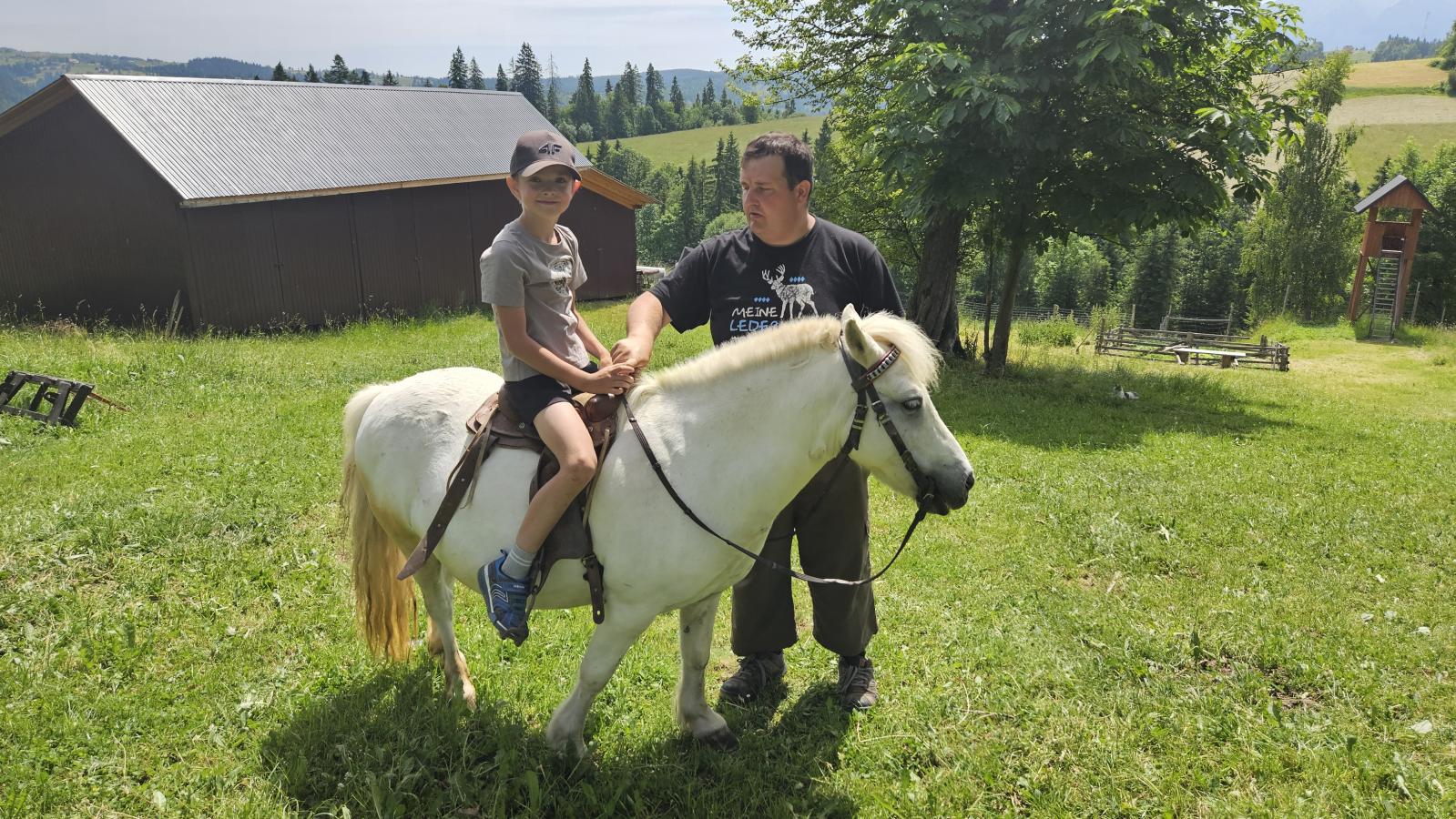 Dzieci miały okazję zobaczyć z bliska zwierzęta hodowlane, takie jak: kozy, owce, krowy, alpaki, kucyki, a także wyjątkowe krowy z długą sierścią. Największą radość sprawiła możliwość pogłaskania i nakarmienia zwierząt, a niektóre dzieci po raz pierwszy w życiu mogły poczuć, jak to jest jechać na kucyku! Nie zabrakło również akcentów ogrodniczych – dzieci zwiedziły piękny ogródek, pełen różnorodnych warzyw, a następnie wzięły udział w zabawnym quizie „Co to za warzywo?”, który wywołał wiele śmiechu i radości. Po pełnym wrażeń zwiedzaniu przyszedł czas na zabawy na świeżym powietrzu oraz wspólne ognisko z pieczeniem kiełbasek, które smakowały wyjątkowo po tak aktywnym dniu.