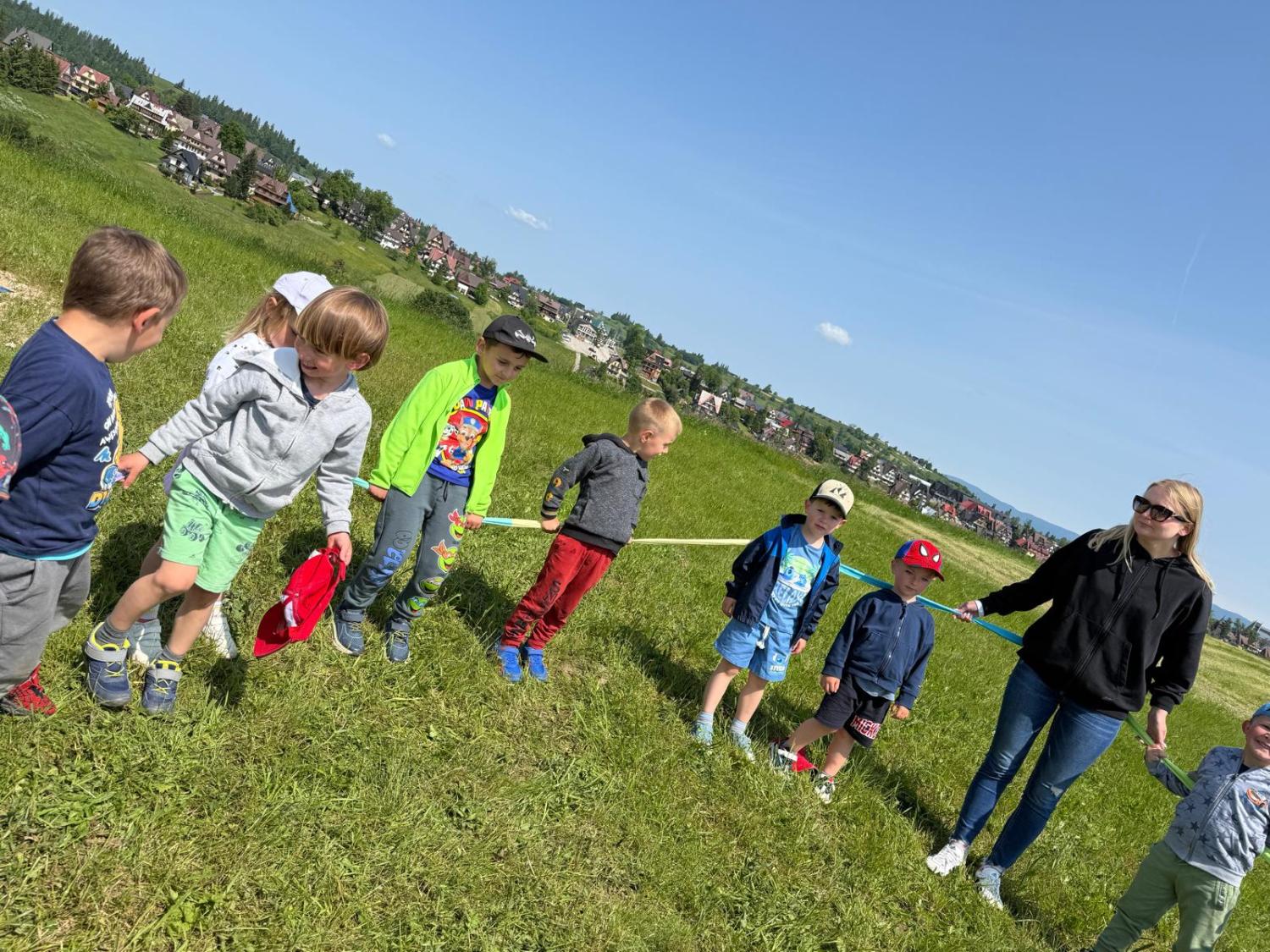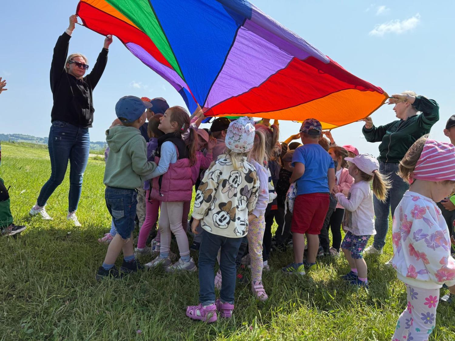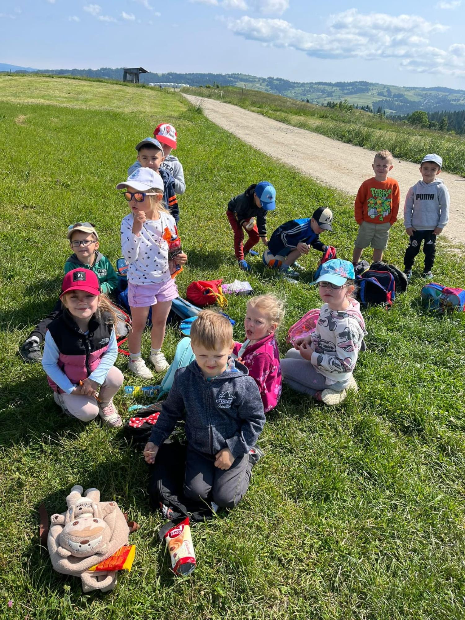 13 czerwca 2025 roku grupy „Jeżyki”, „Motylki” i „Pszczółki” wybrały się na piknik na malowniczy Wierch Przedomiański. Każde dziecko zabrało ze sobą ulubione przekąski, którymi mogliśmy wspólnie się częstować w otoczeniu przyrody i pięknej pogody.