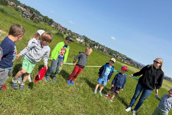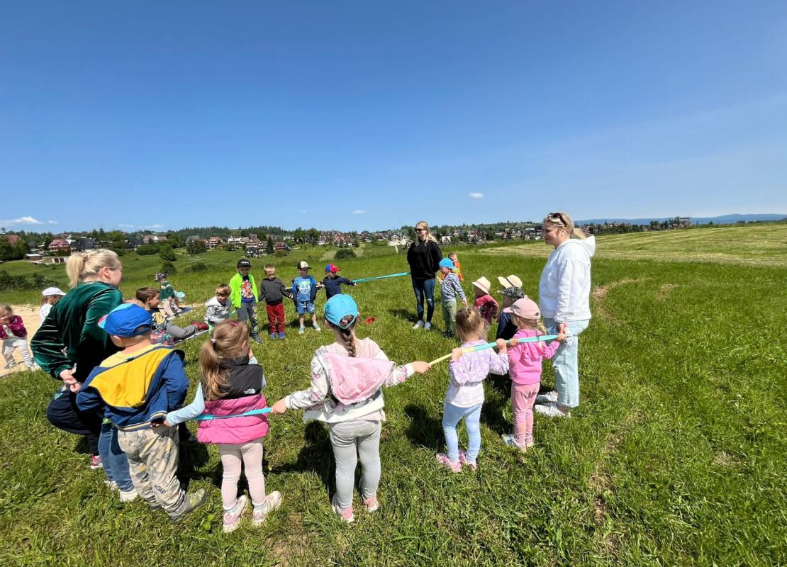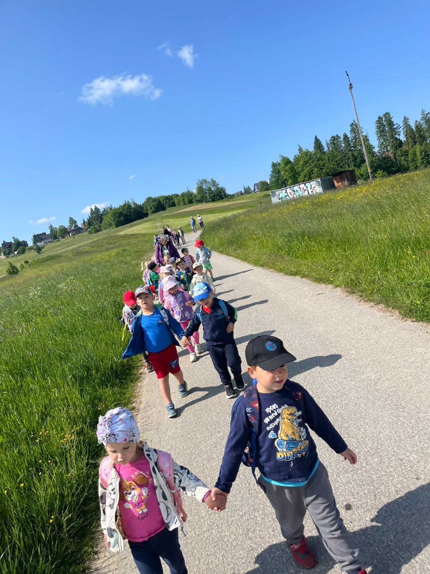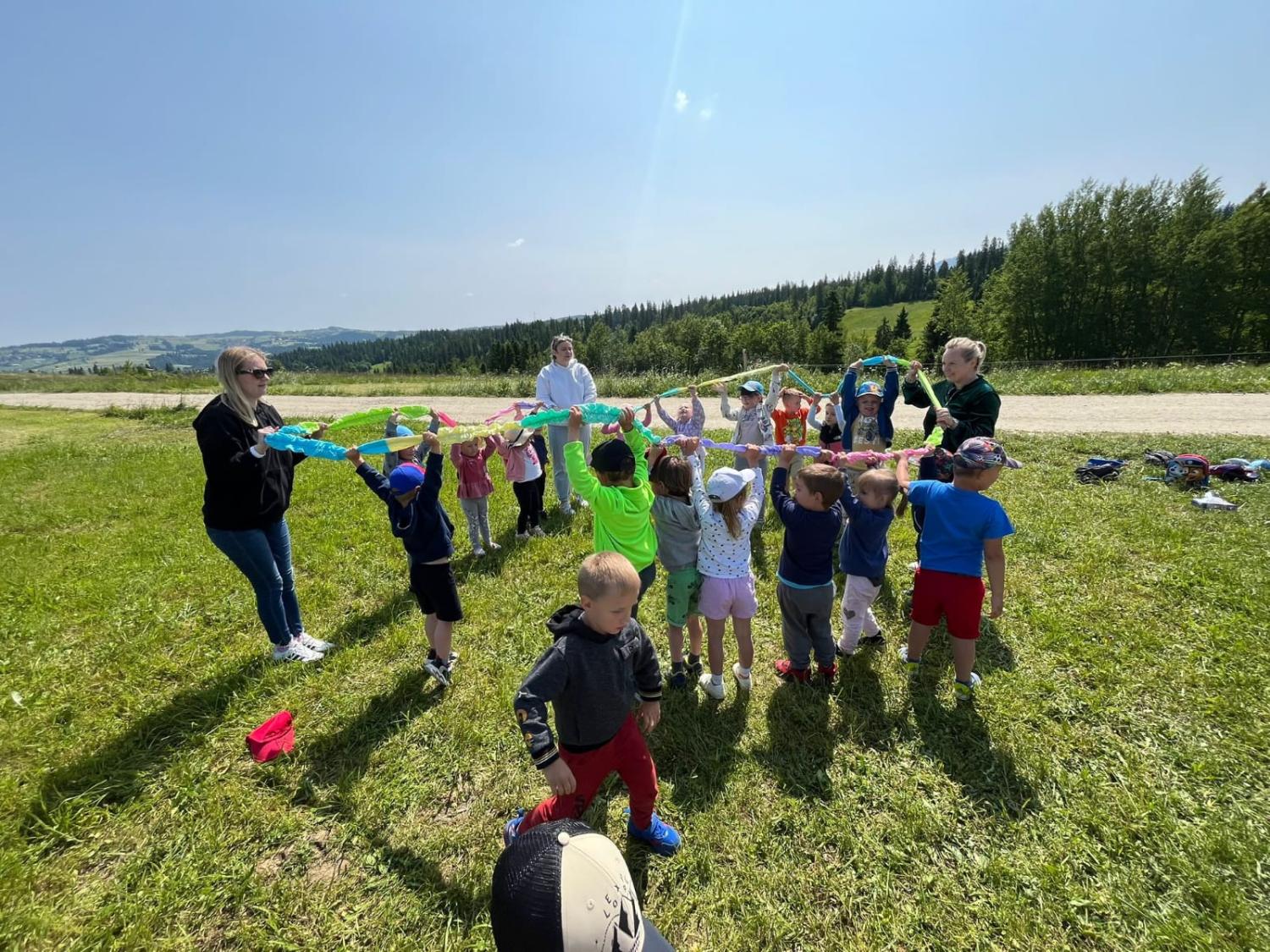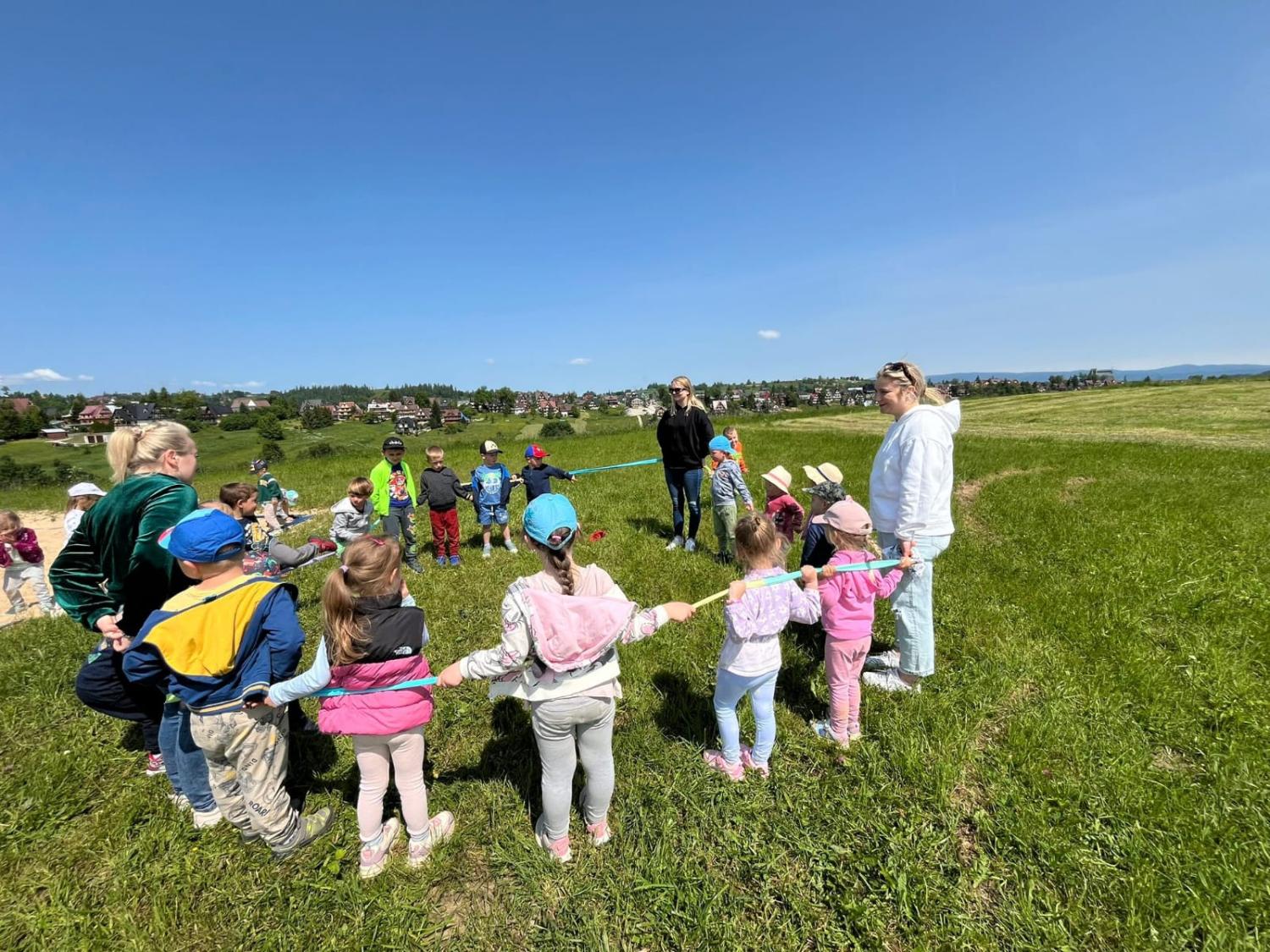 13 czerwca 2025 roku grupy „Jeżyki”, „Motylki” i „Pszczółki” wybrały się na piknik na malowniczy Wierch Przedomiański. Każde dziecko zabrało ze sobą ulubione przekąski, którymi mogliśmy wspólnie się częstować w otoczeniu przyrody i pięknej pogody.