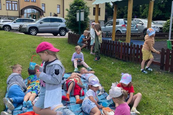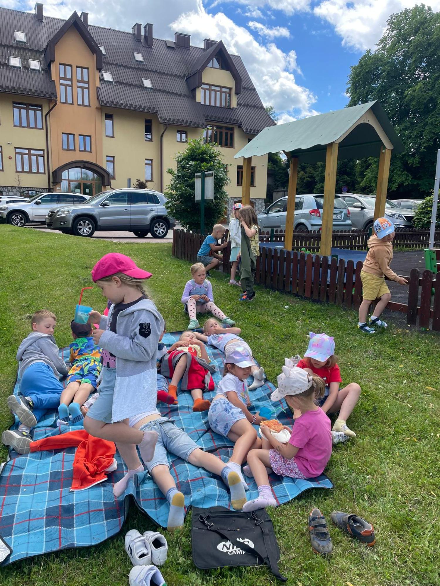 Grupa „Biedronki” spędziła wyjątkowy dzień na pikniku w ogrodzie przedszkolnym. Pogoda dopisała, więc dzieci rozłożyły kocyki, bawiły się na świeżym powietrzu i cieszyły wspólnym czasem.