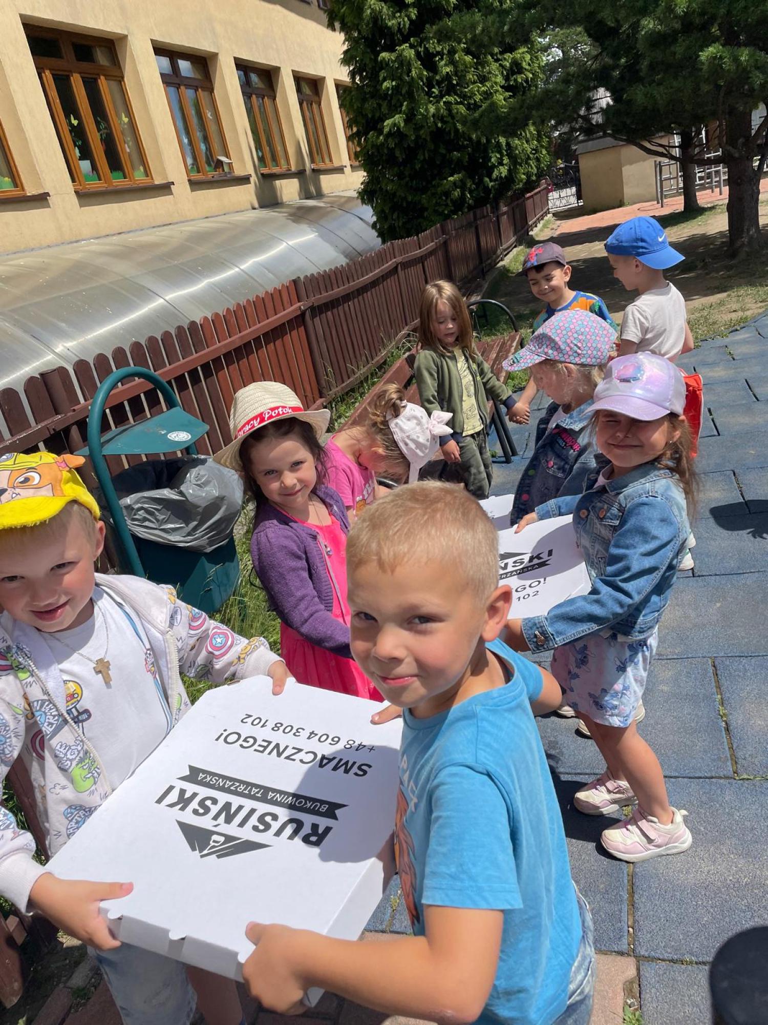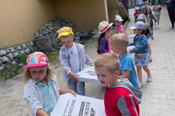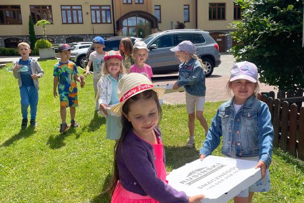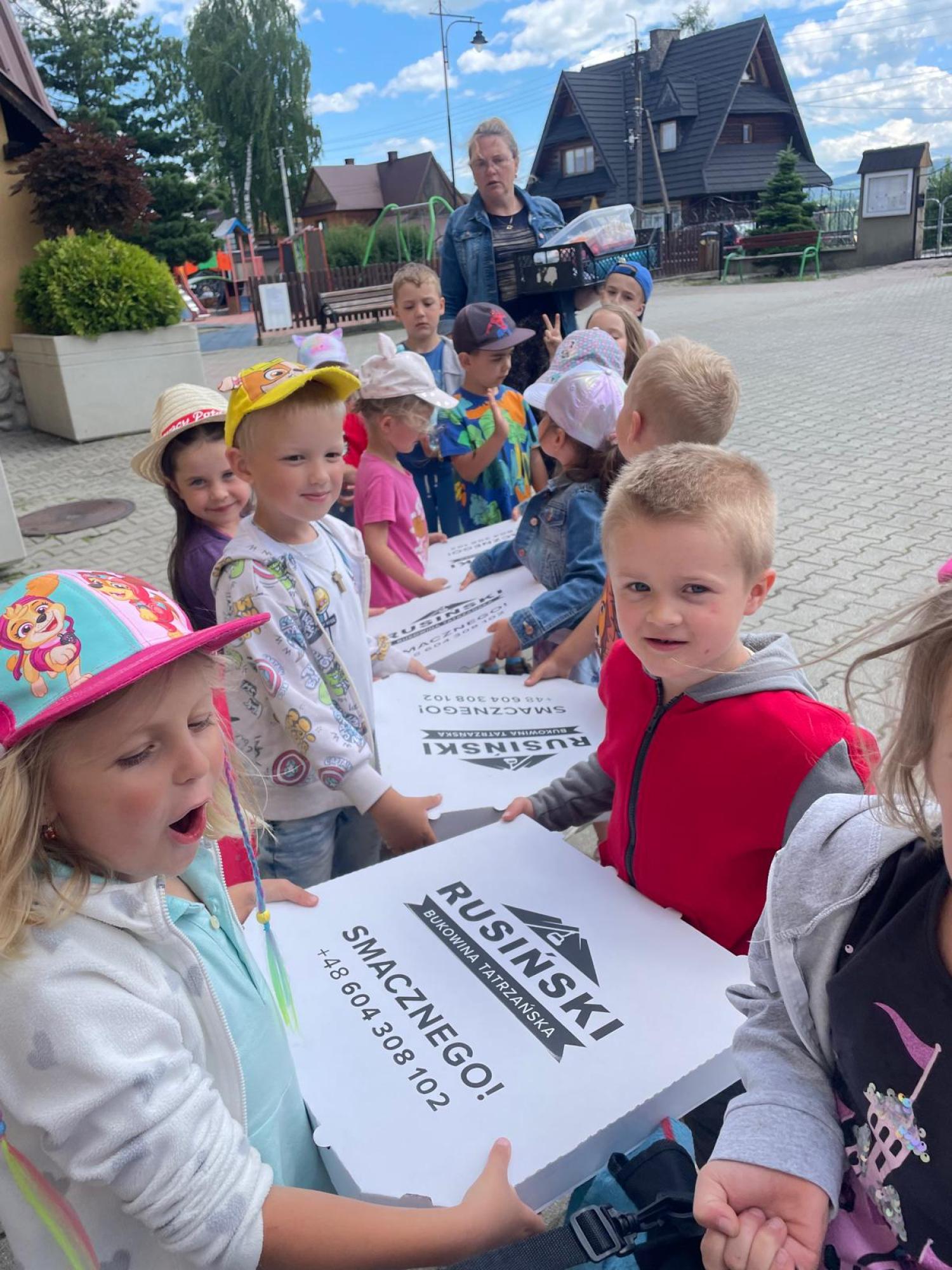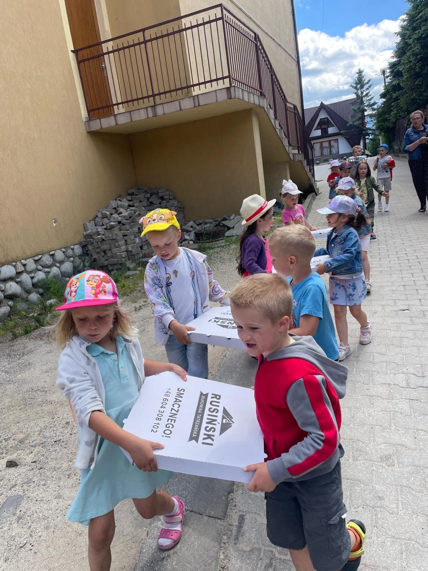 Największą atrakcją tego dnia była oczywiście pyszna pizza! Wspólne jedzenie na kocu smakowało wszystkim jeszcze bardziej niż zwykle. Było dużo śmiechu, rozmów i radości.