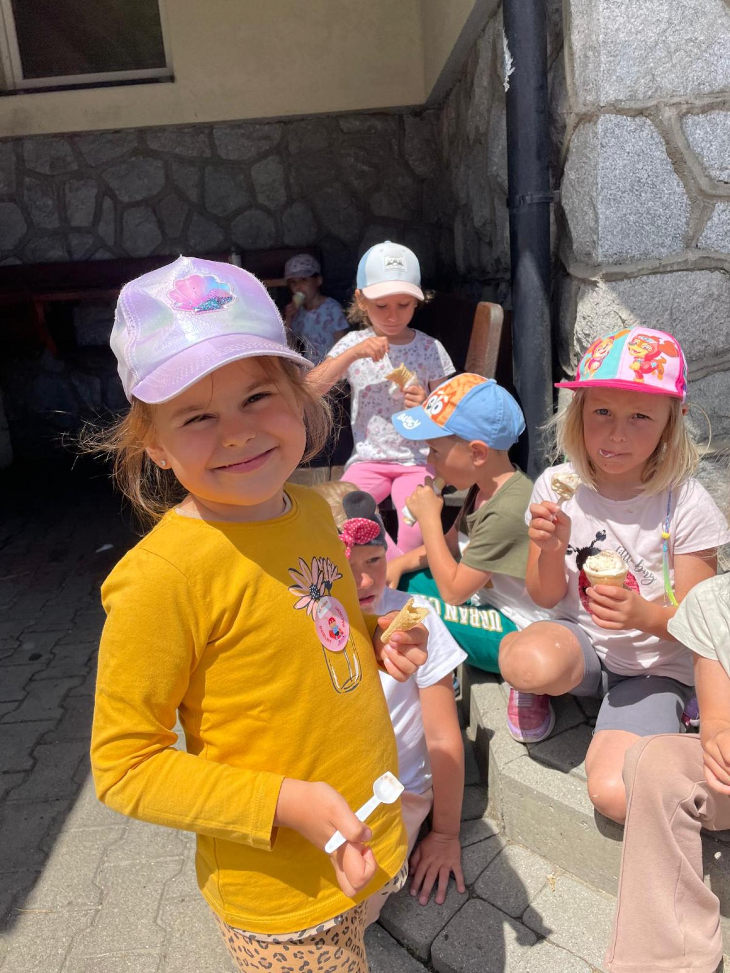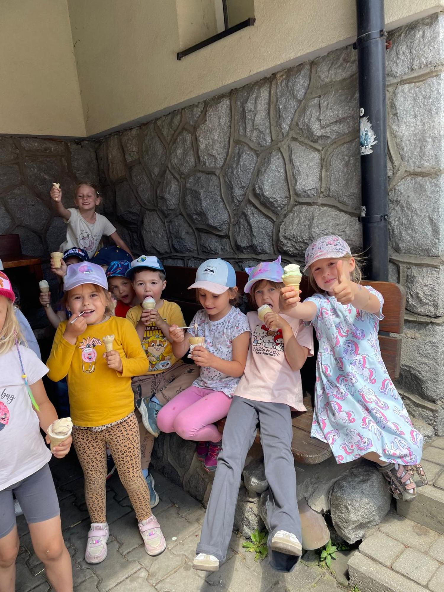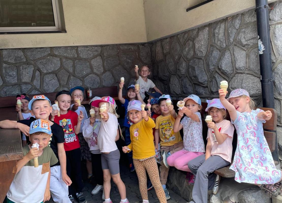 Największą atrakcją była wizyta w lodziarni. Każdy przedszkolak mógł wybrać swój ulubiony smak lodów – radości i uśmiechów nie było końca!