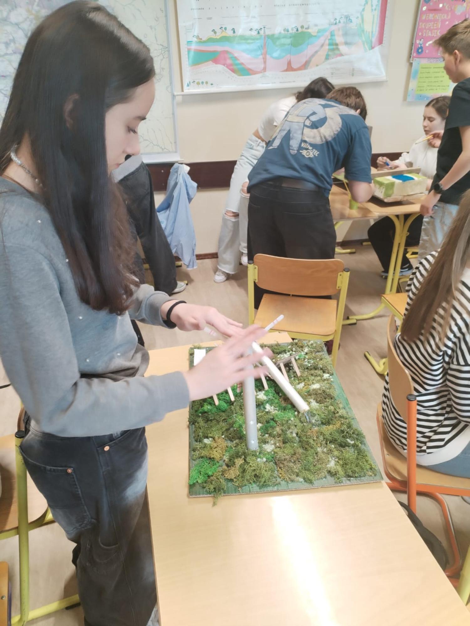 Podczas zajęć młodzież zgłębiała tajniki ekologicznych rozwiązań energetycznych. W ramach projektu uczniowie, pracując w grupach, tworzyli imponujące makiety prezentujące różnorodne metody pozyskiwania czystej energii – m.in. farmy wiatrowe, panele słoneczne i elektrownie wodne.