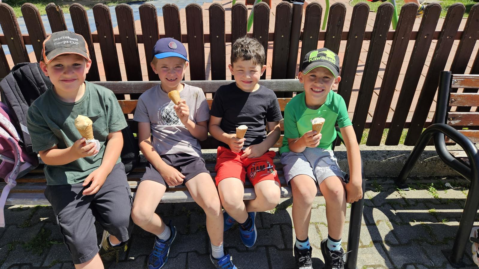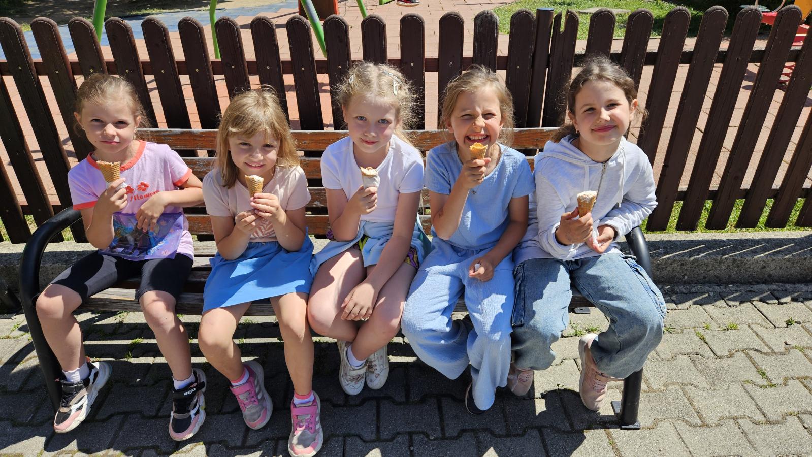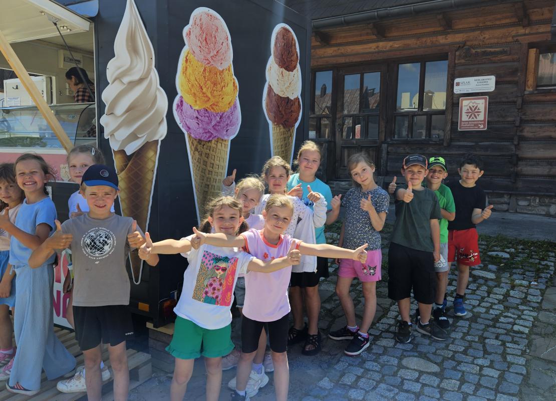 W ostatnim tygodniu przed wakacjami uczniowie klasy 1a wybrali się na pyszne lody – była to słodka niespodzianka i świetna okazja do wspólnego spędzenia czasu poza murami szkoły.