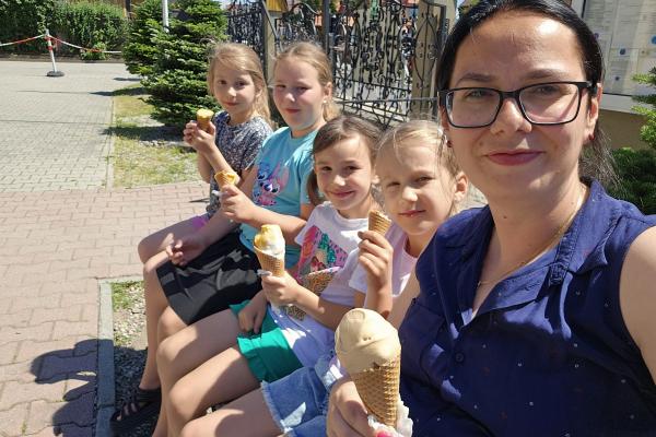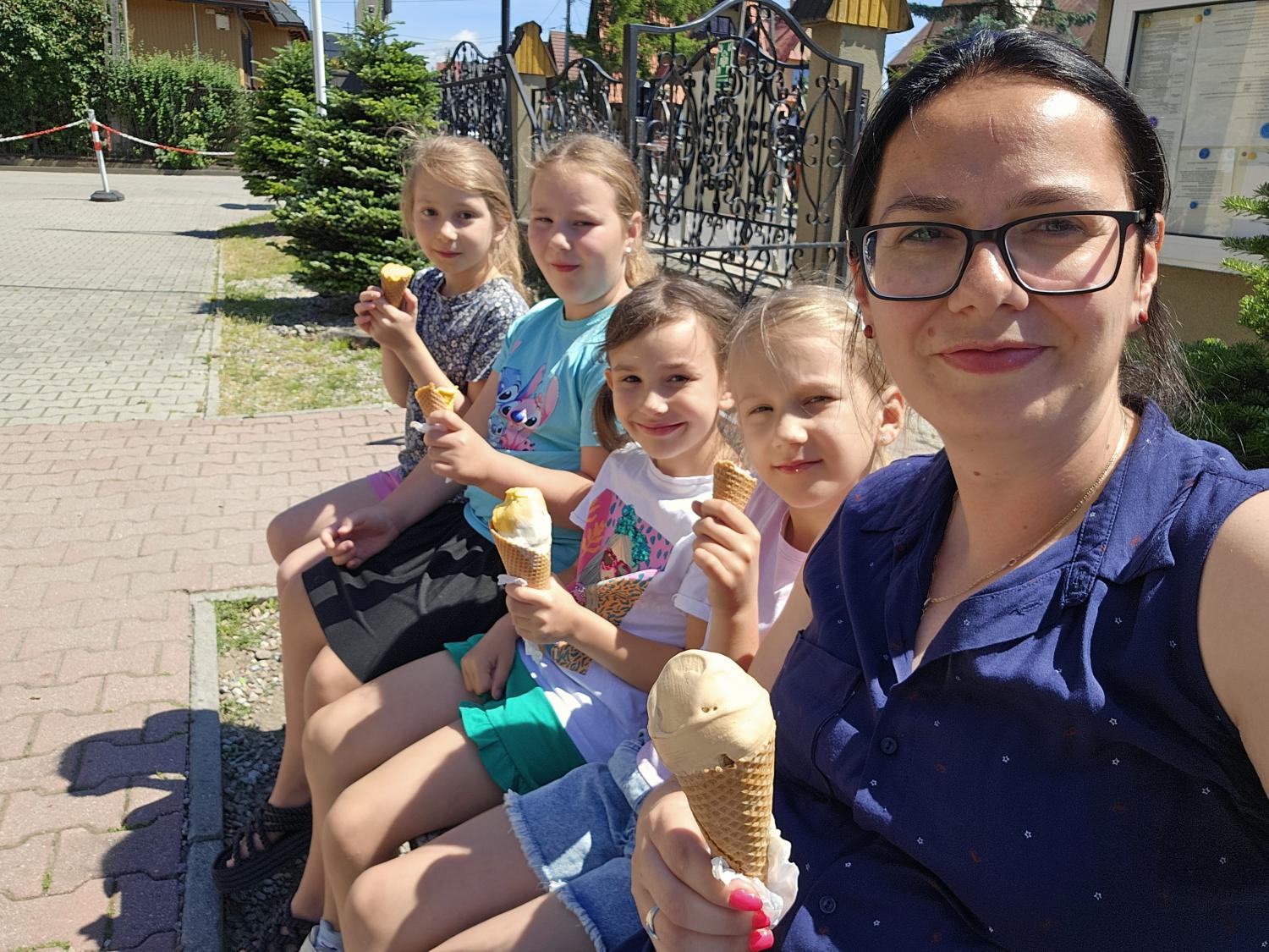 Dzieci z radością wybierały swoje ulubione smaki, a rozmowom i śmiechom nie było końca. Lody smakowały wyśmienicie, a dobra pogoda i wesoła atmosfera sprawiły, że to krótkie wyjście stało się wyjątkowym wydarzeniem.