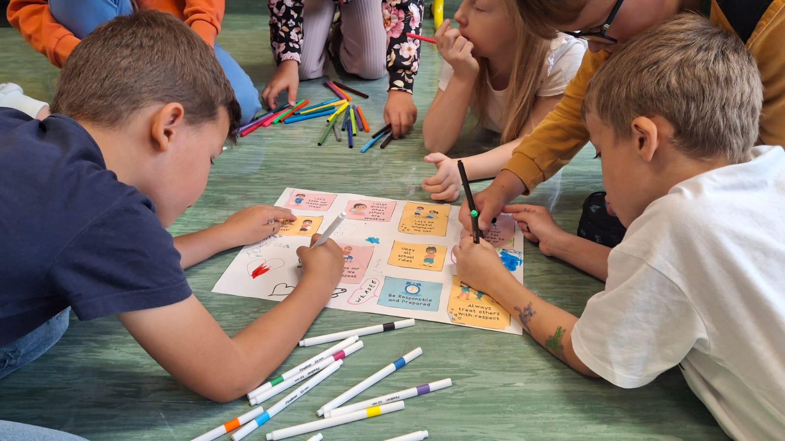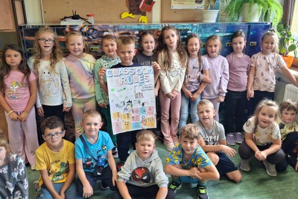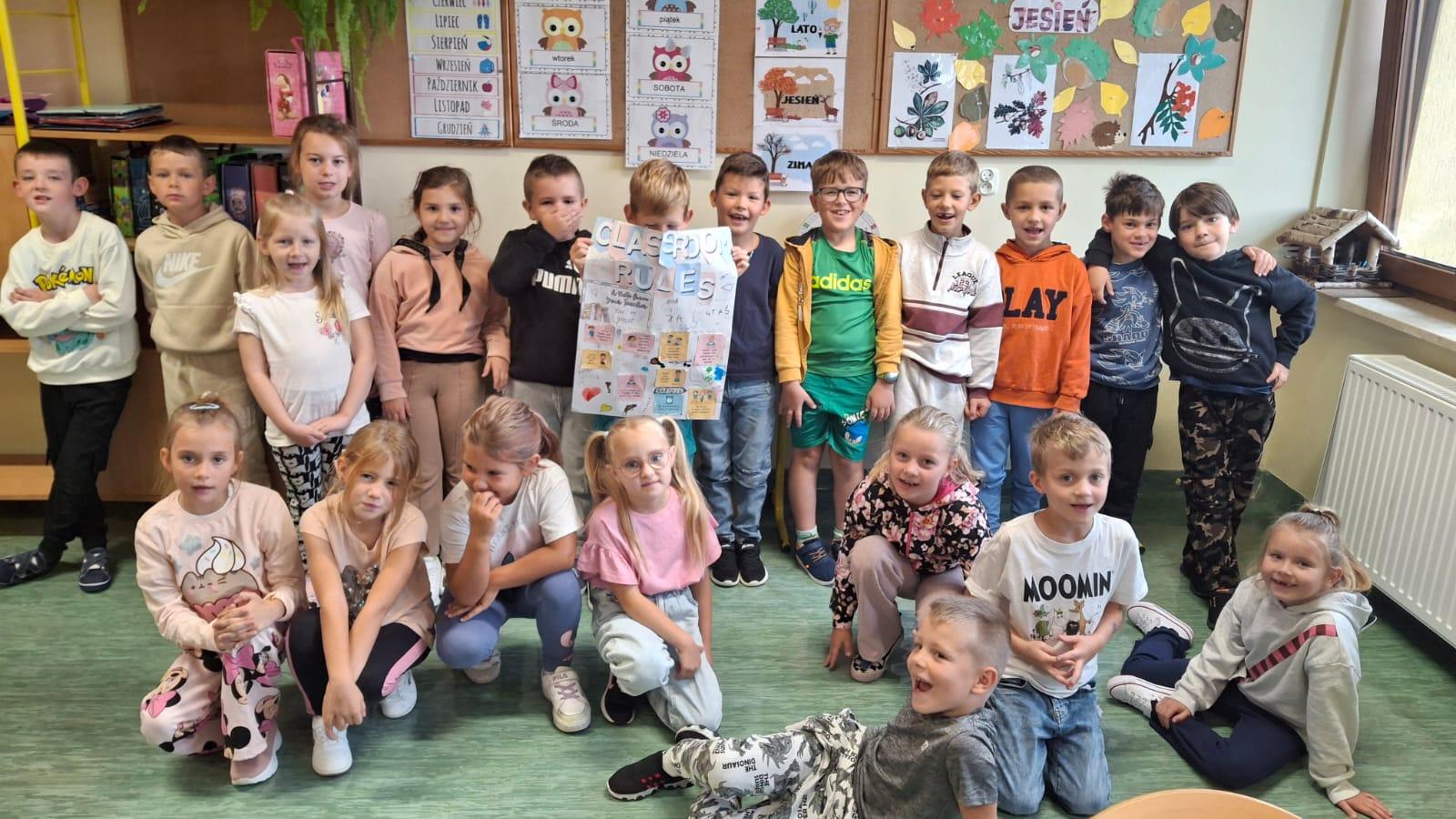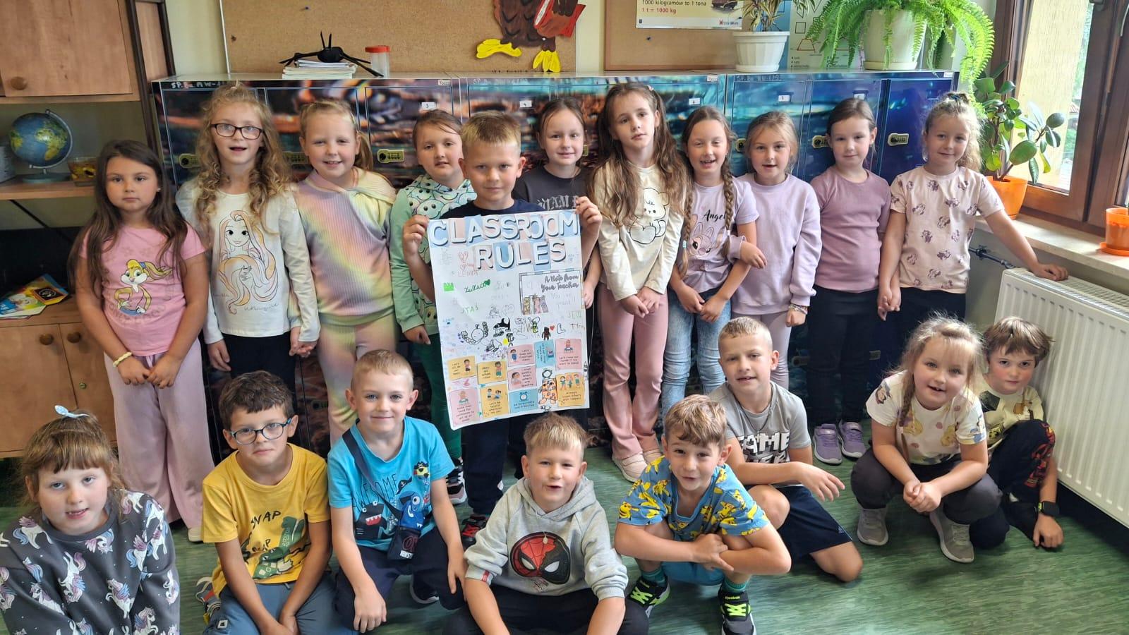 Hello everyone! Nowy rok szkolny rozpoczęliśmy od wspólnego tworzenia kontraktu klasowego podczas zajęć z języka angielskiego w klasach pierwszych. Uczniowie, pracując w grupach, przygotowali kolorowy plakat, na którym zapisali najważniejsze zasady obowiązujące na lekcjach – oczywiście po angielsku!