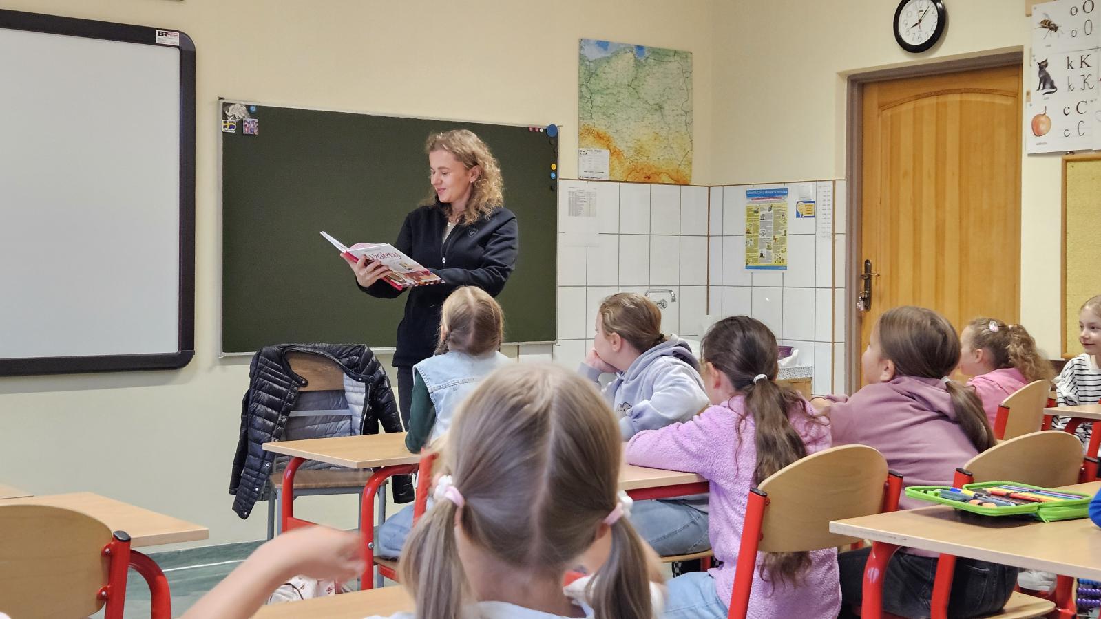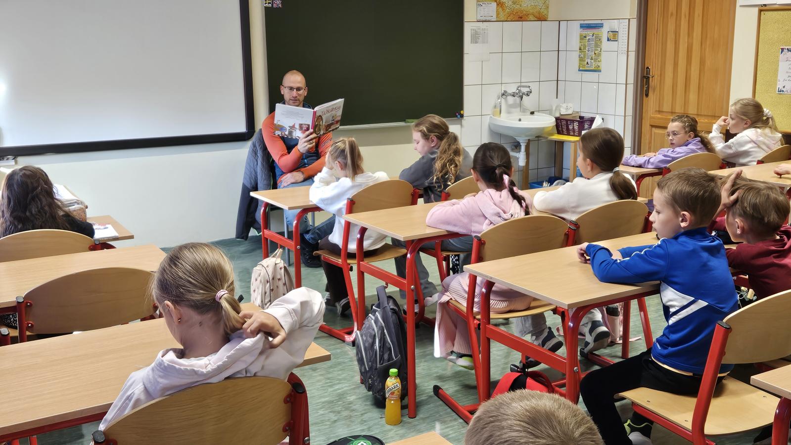 Wspólne czytanie było nie tylko okazją do poznania przygód bohaterów, ale również do spędzenia miłego czasu w atmosferze bliskości i radości. Uczniowie z dużym zainteresowaniem słuchali, a później chętnie dzielili się swoimi wrażeniami i spostrzeżeniami.