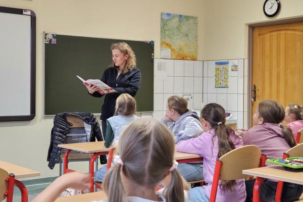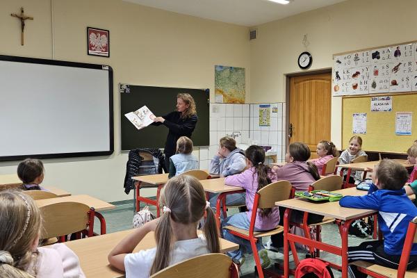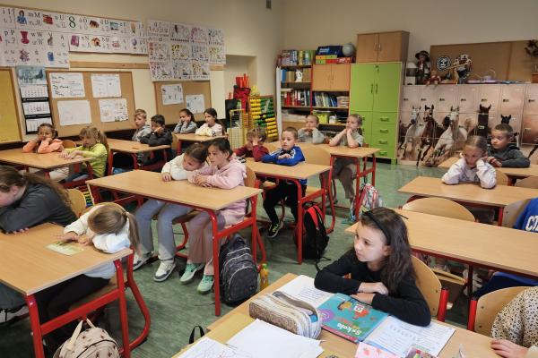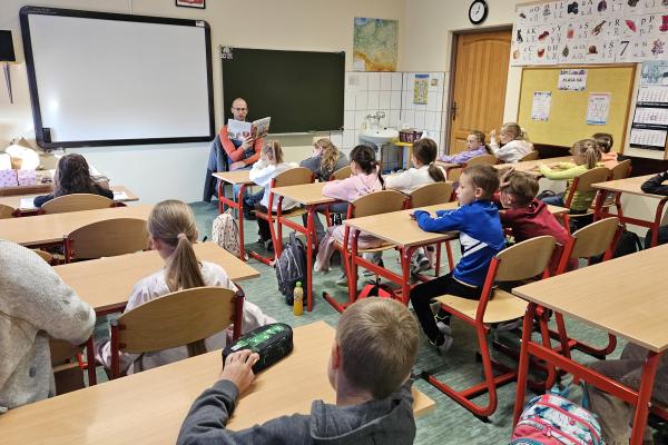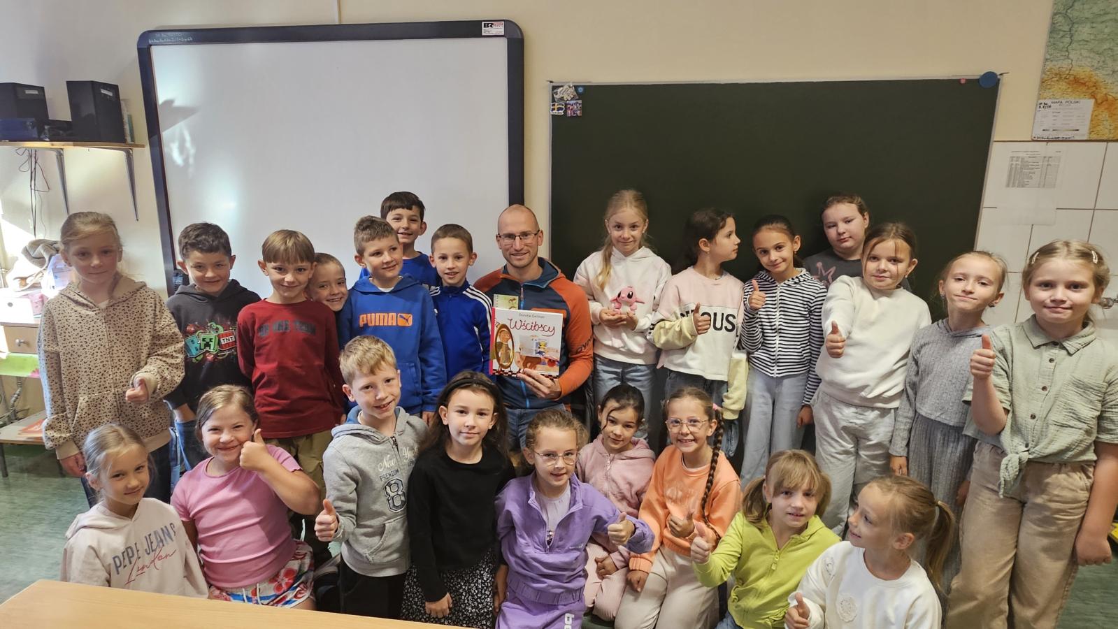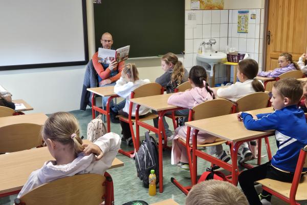 W ramach promocji czytelnictwa w klasie IIa odbyło się wyjątkowe spotkanie z książką. Tym razem to rodzice – pani Małgorzata i pan Michał – czytali głośno dzieciom lekturę Doroty Gellner „Wścibscy”.