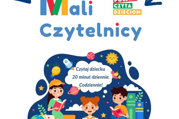 W roku szkolnym 2025/2026 oddziały przedszkolne 0a i 0b będą uczestniczyć w programie „Mali czytelnicy”. Program ten to pilotażowy projekt edukacyjny skierowany do przedszkoli, którego zadaniem jest promowanie czytania dzieciom oraz uświadomienie nauczycielom i rodzicom korzyści płynących z regularnego czytania najmłodszym. Zapraszamy rodziców do aktywnego uczestnictwa w programie.