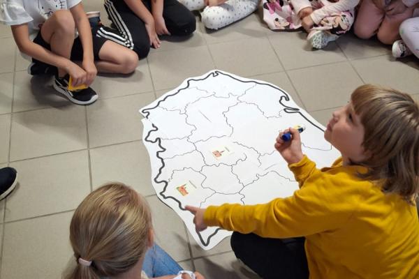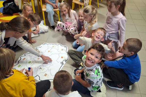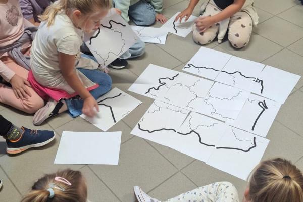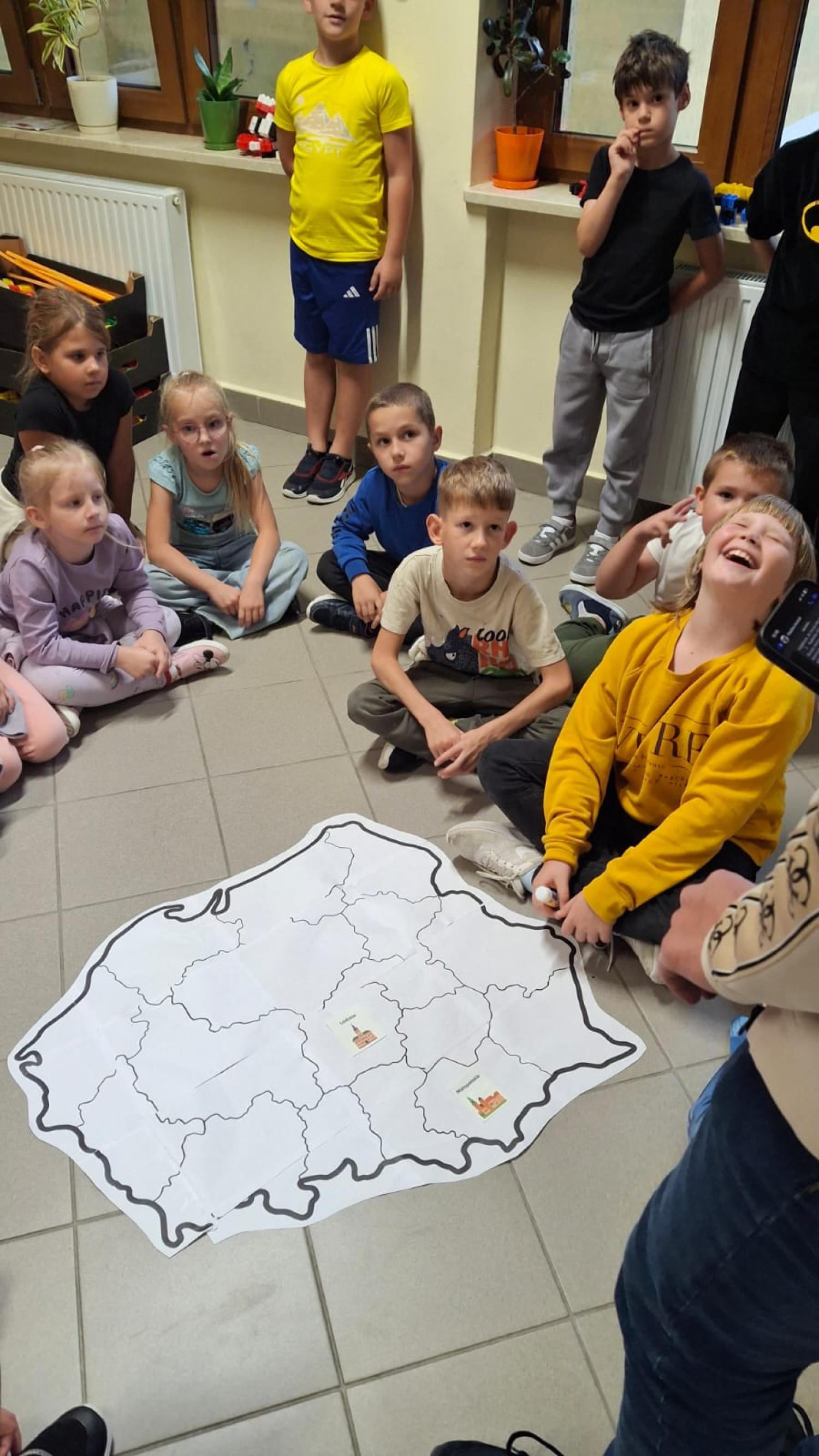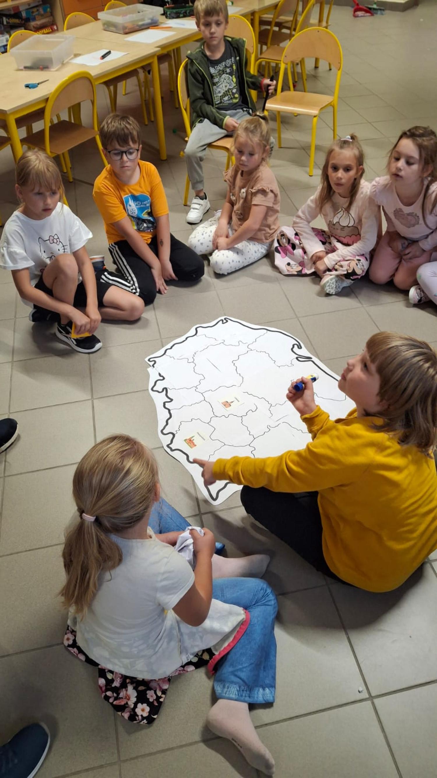 We wrześniu zrealizowaliśmy pierwsze zadanie projektu – „Moja mała ojczyzna”. Uczniowie stworzyli mapę naszego kraju, zaznaczając na niej ważne i charakterystyczne miejsca. Podczas pracy nad projektem opowiadali o ich znaczeniu, dzielili się ciekawostkami oraz wspomnieniami związanymi z tymi miejscami.