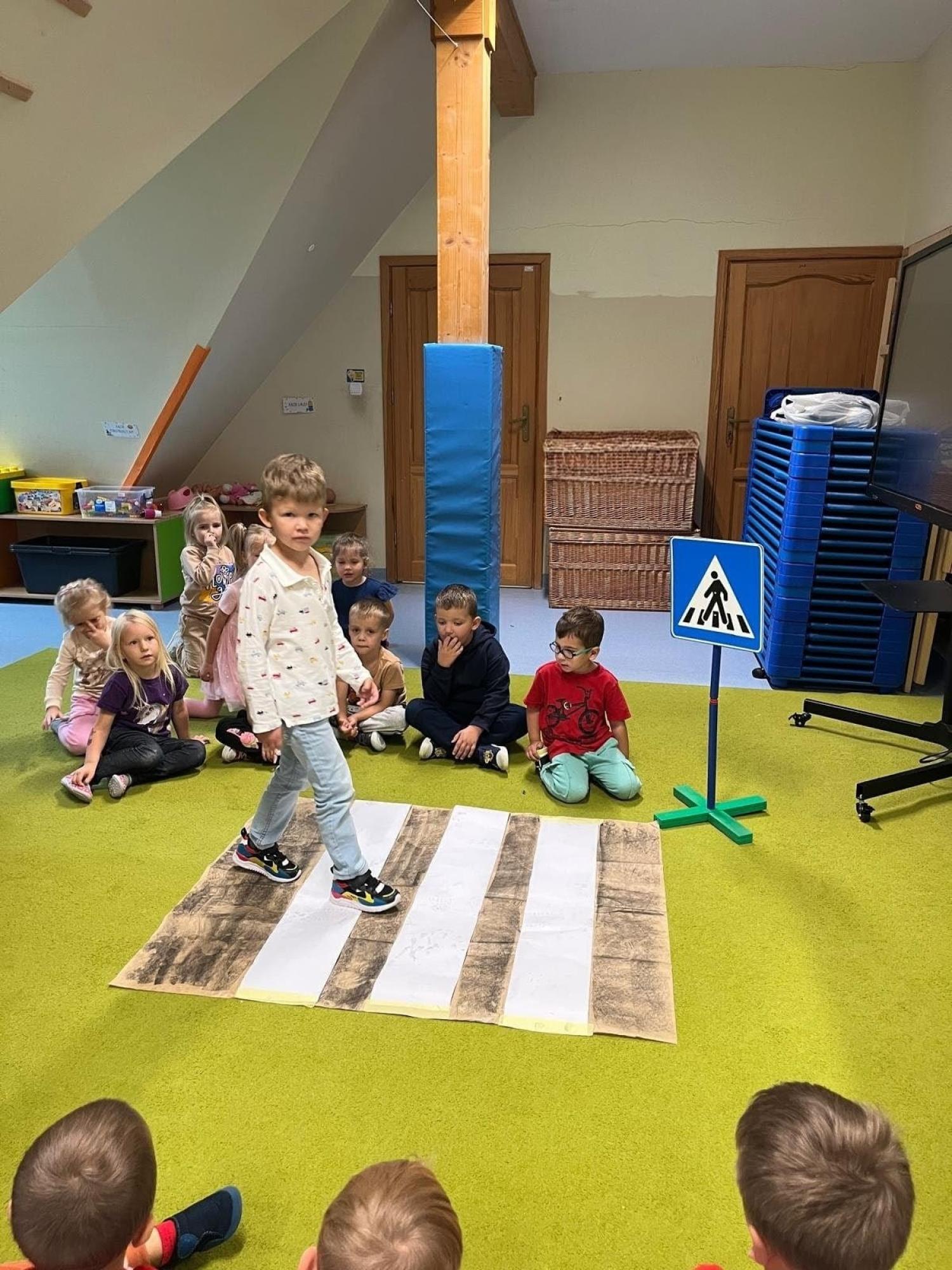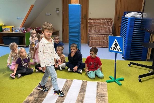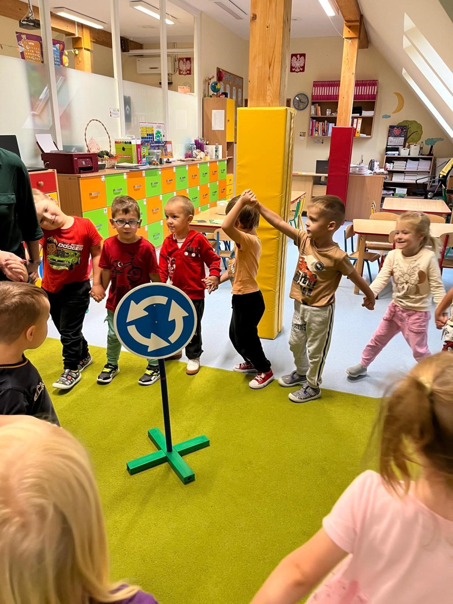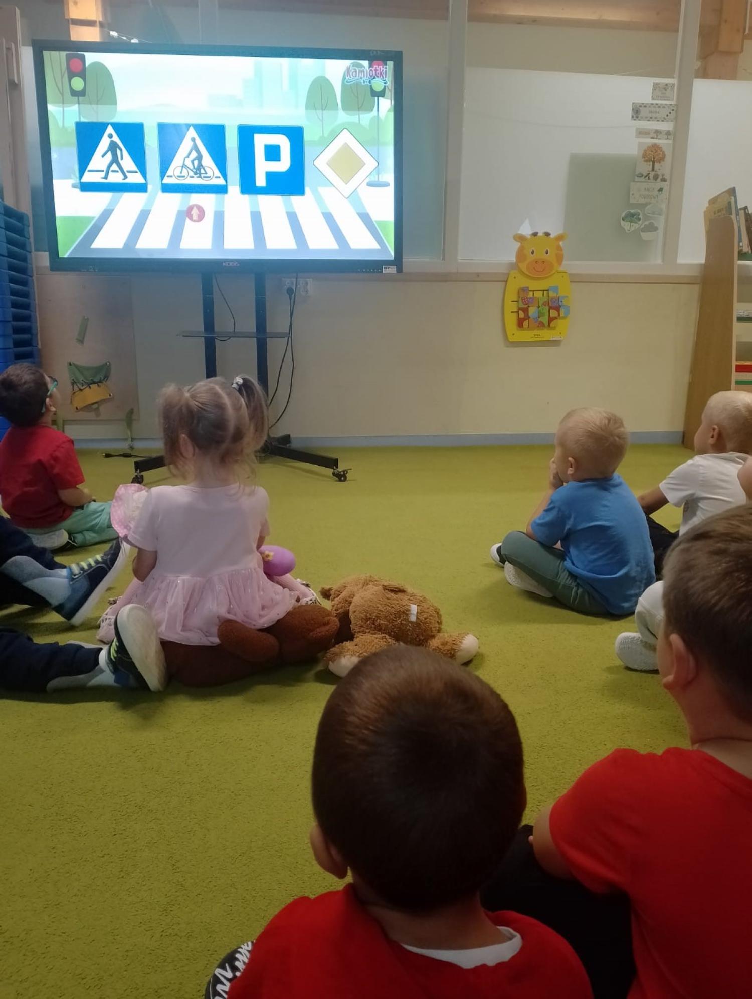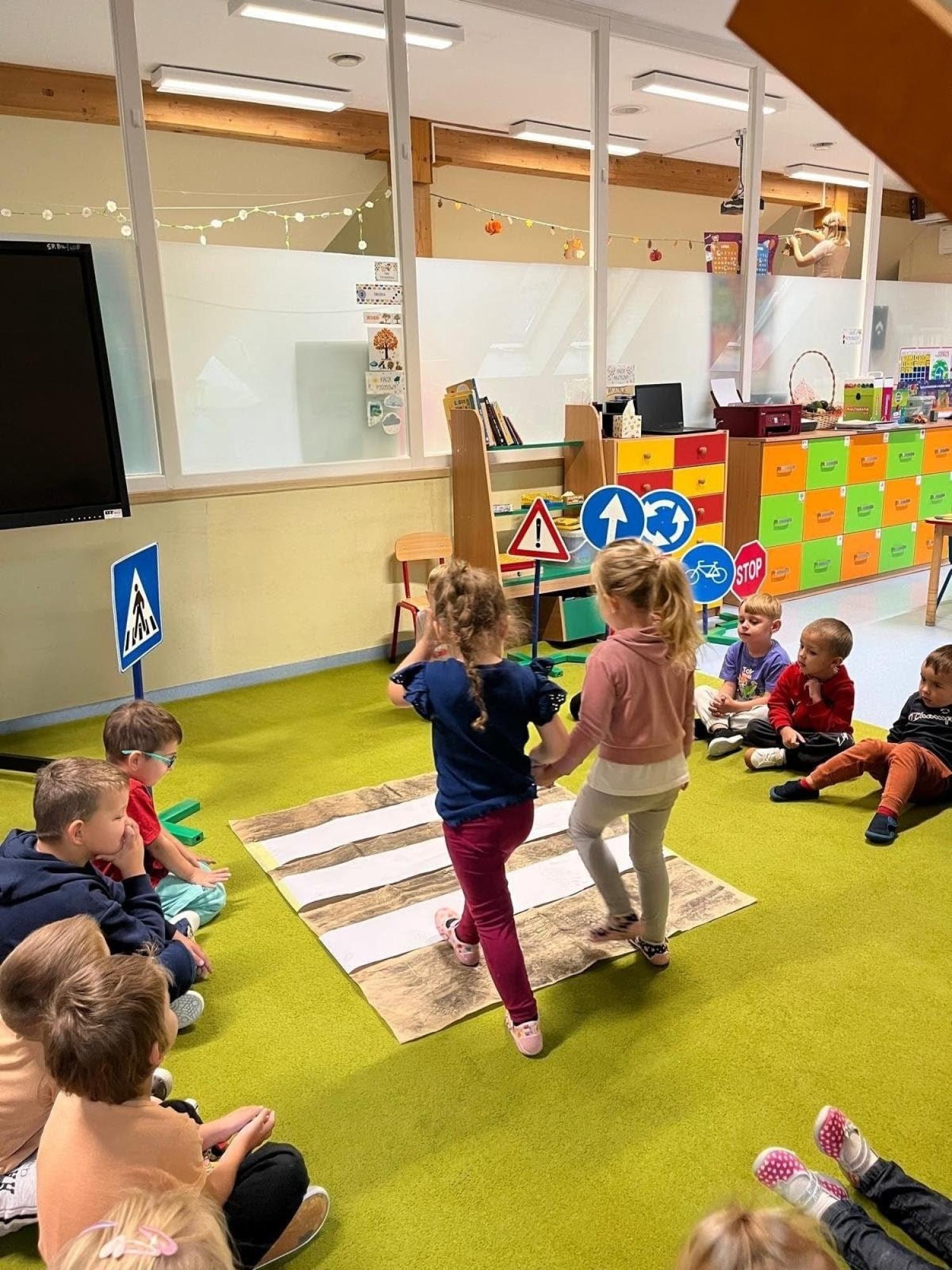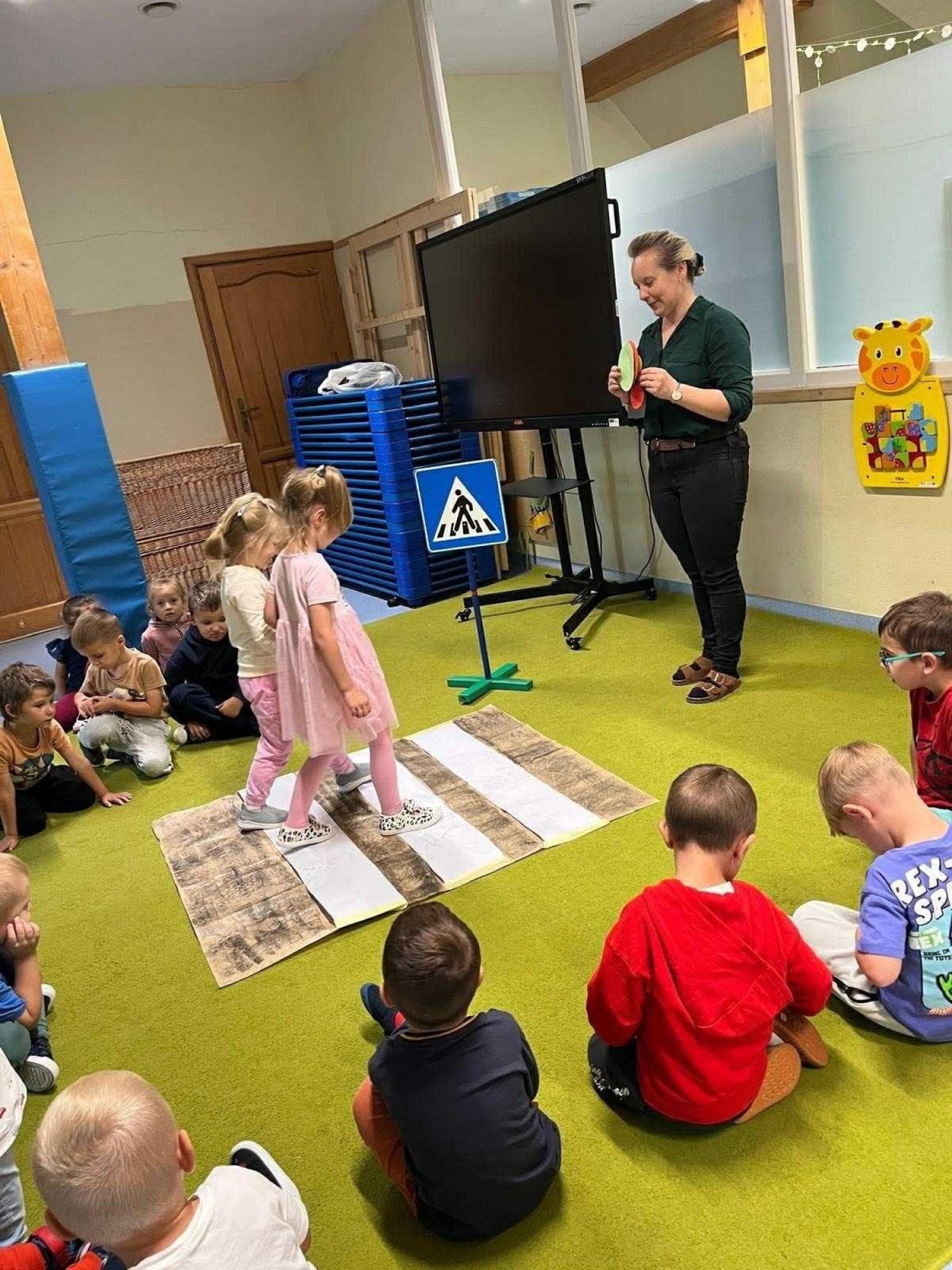 Zajęcia były pełne zabaw, gier i scenek, dzięki którym dzieci mogły aktywnie utrwalać zdobytą wiedzę. Przedszkolaki chętnie odpowiadały na pytania i ćwiczyły prawidłowe przechodzenie przez ulicę.
