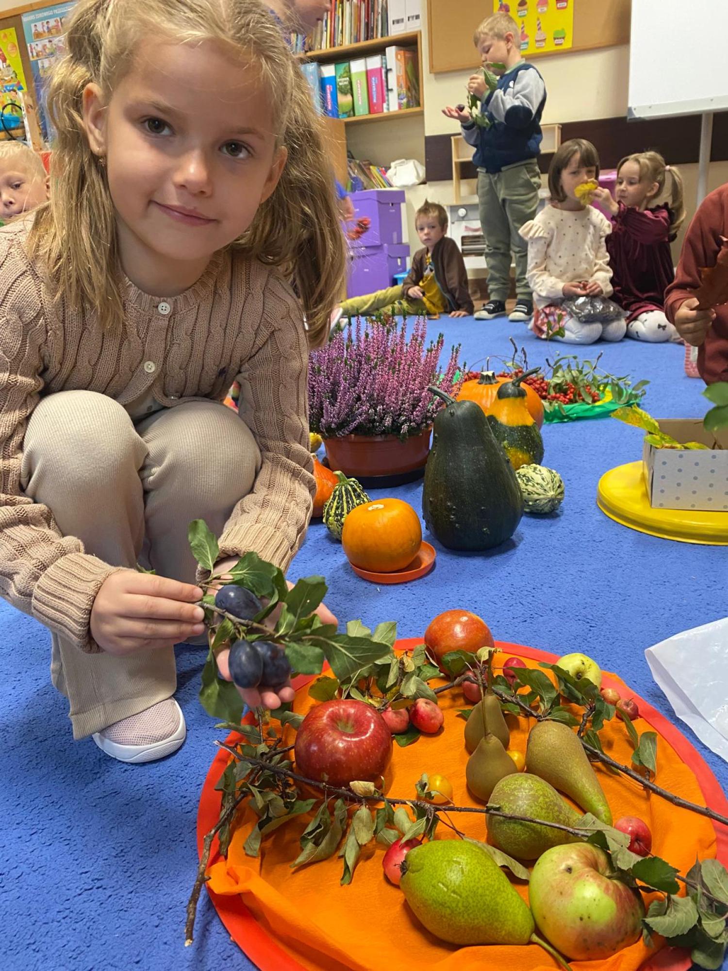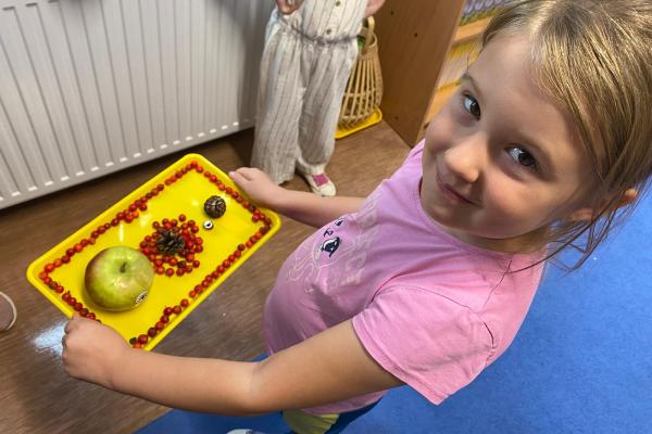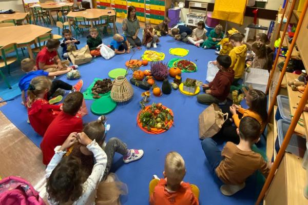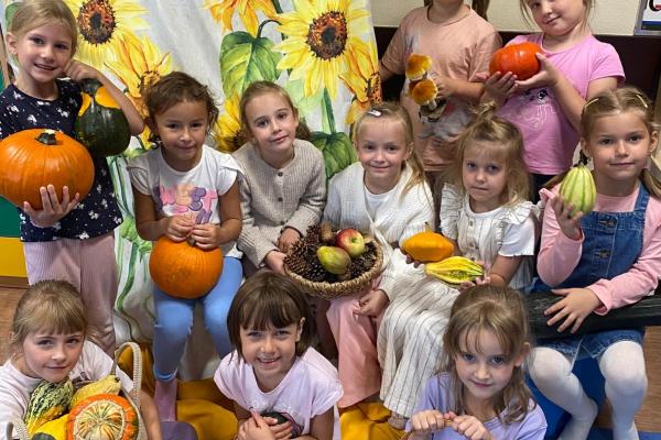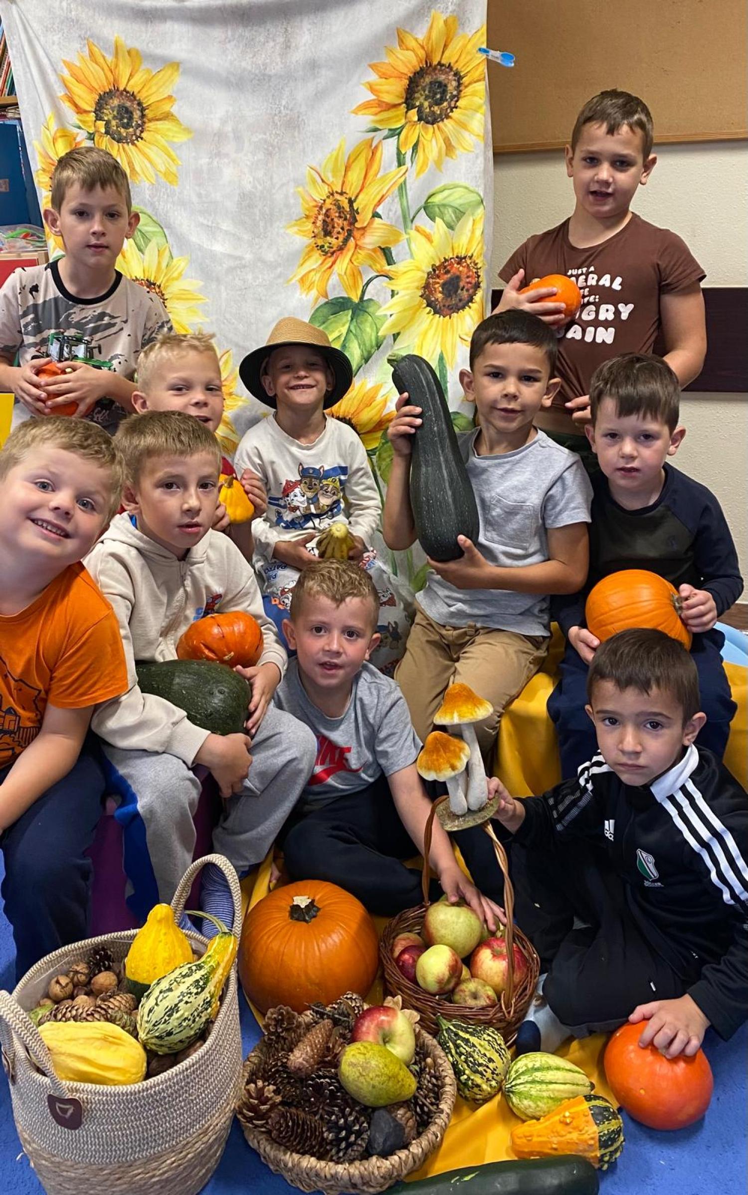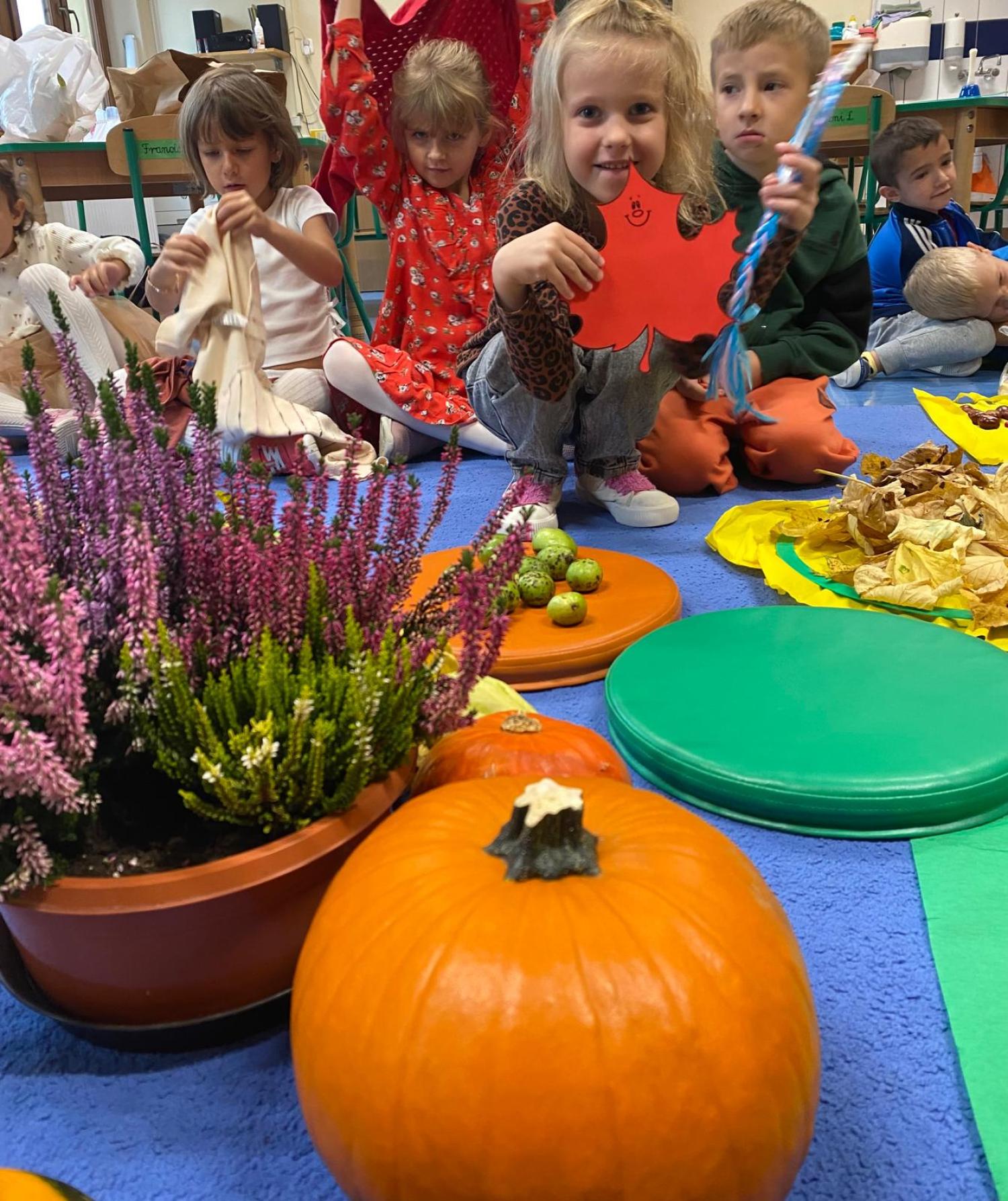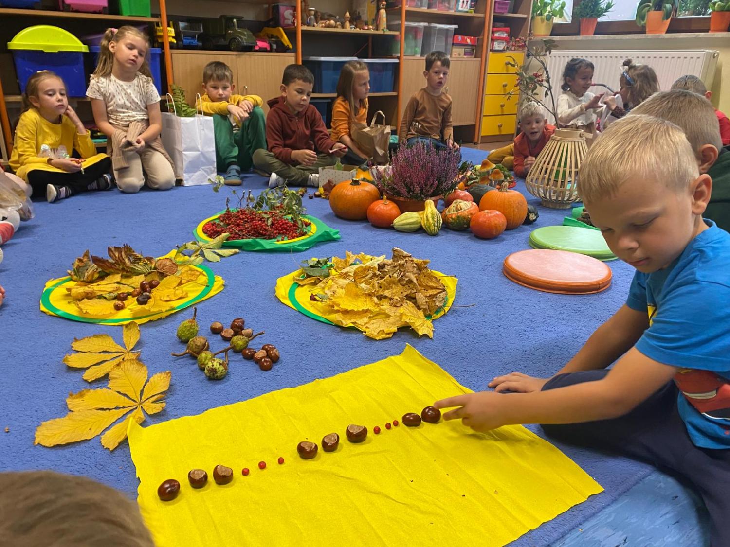 Pierwszy dzień jesieni był w naszym przedszkolu pełen uśmiechów i zabawy. Dzieci z grup 0a i 0b odkrywały uroki nowej pory roku – oglądały jej dary, rysowały Panią Jesień, przeliczały jej skarby, tańczyły i wspólnie świętowały. To był wyjątkowy dzień, który na długo zostanie w pamięci przedszkolaków.
