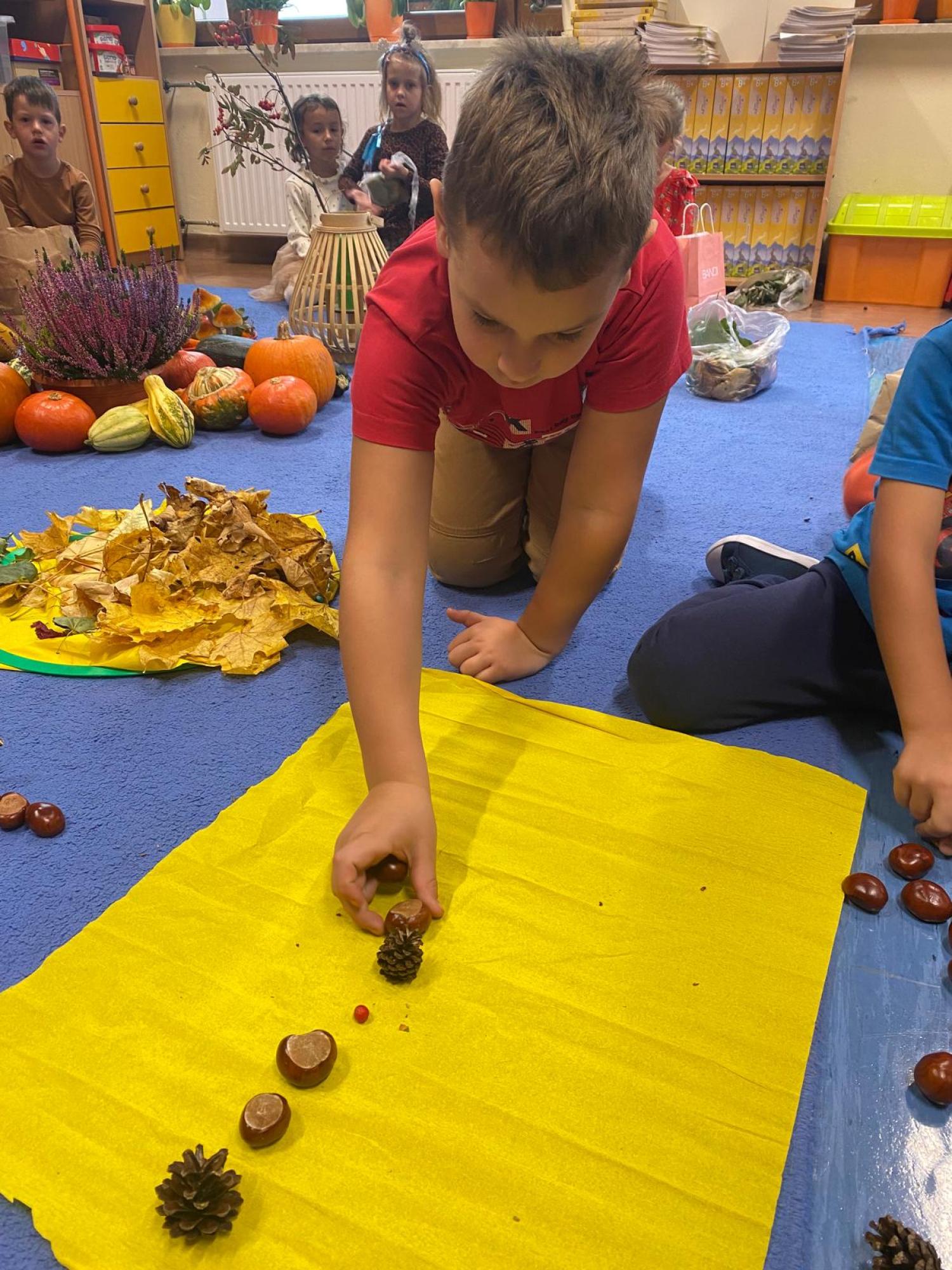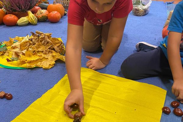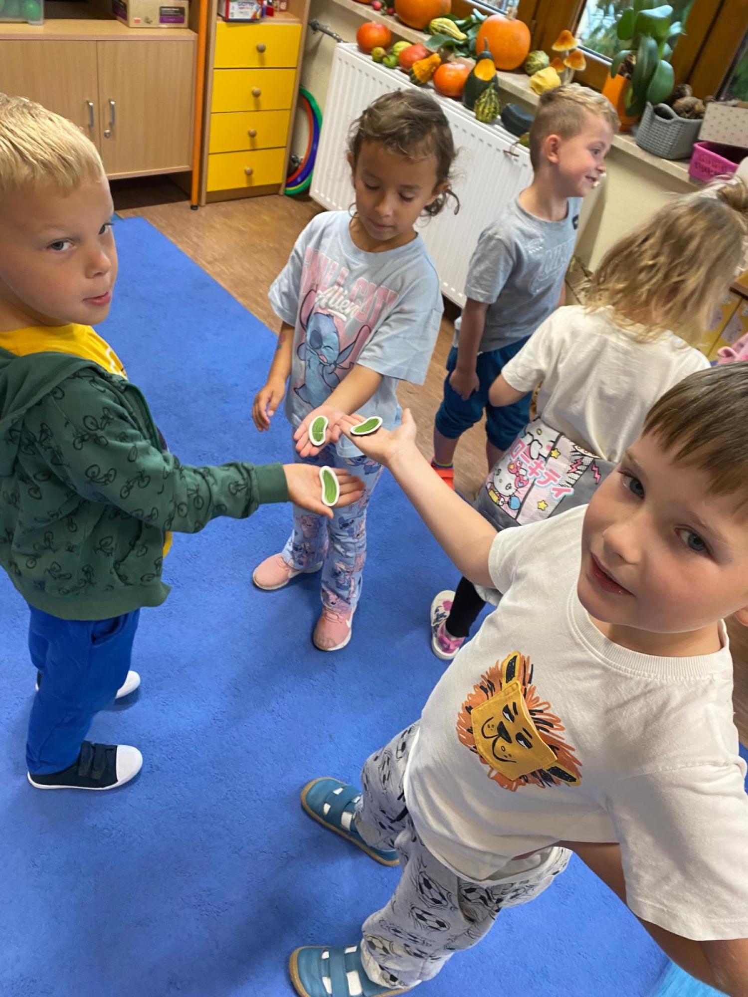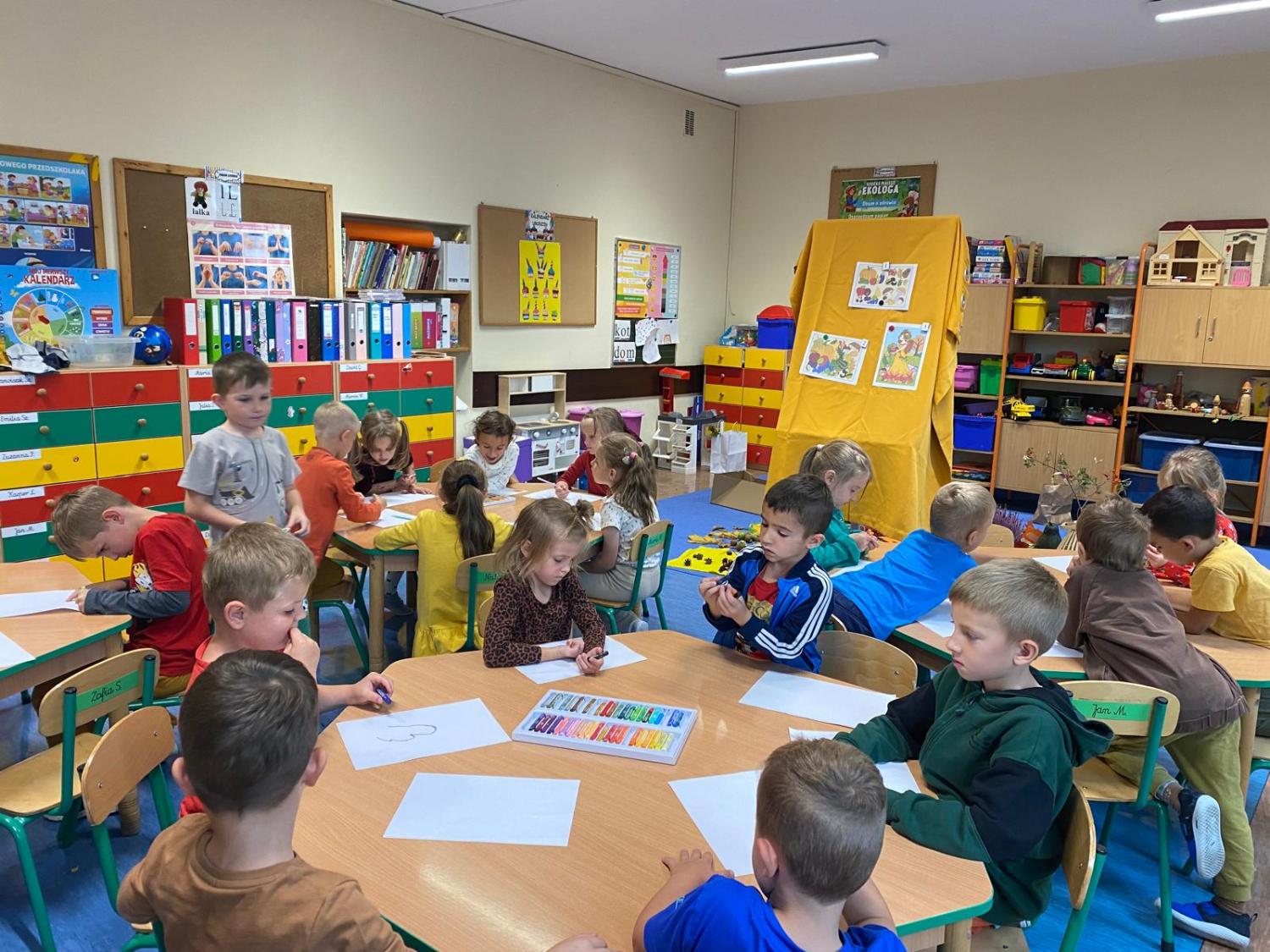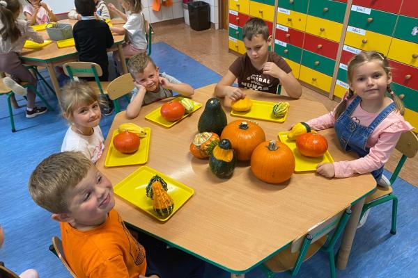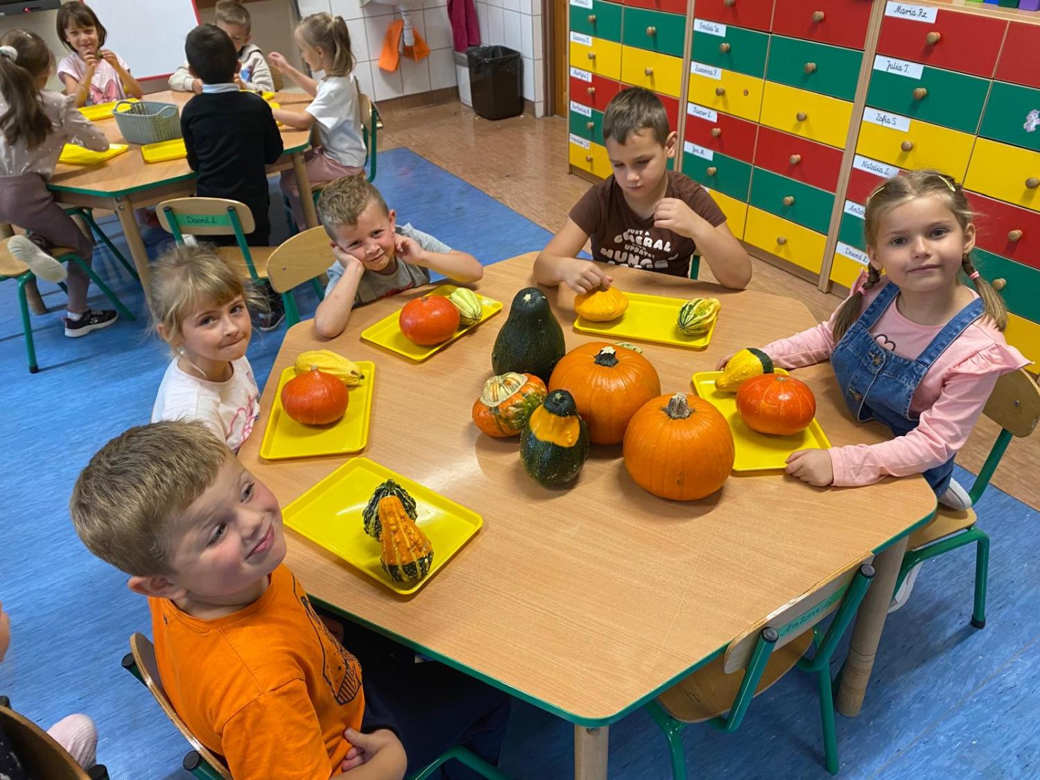 Pierwszy dzień jesieni był w naszym przedszkolu pełen uśmiechów i zabawy. Dzieci z grup 0a i 0b odkrywały uroki nowej pory roku – oglądały jej dary, rysowały Panią Jesień, przeliczały jej skarby, tańczyły i wspólnie świętowały. To był wyjątkowy dzień, który na długo zostanie w pamięci przedszkolaków.