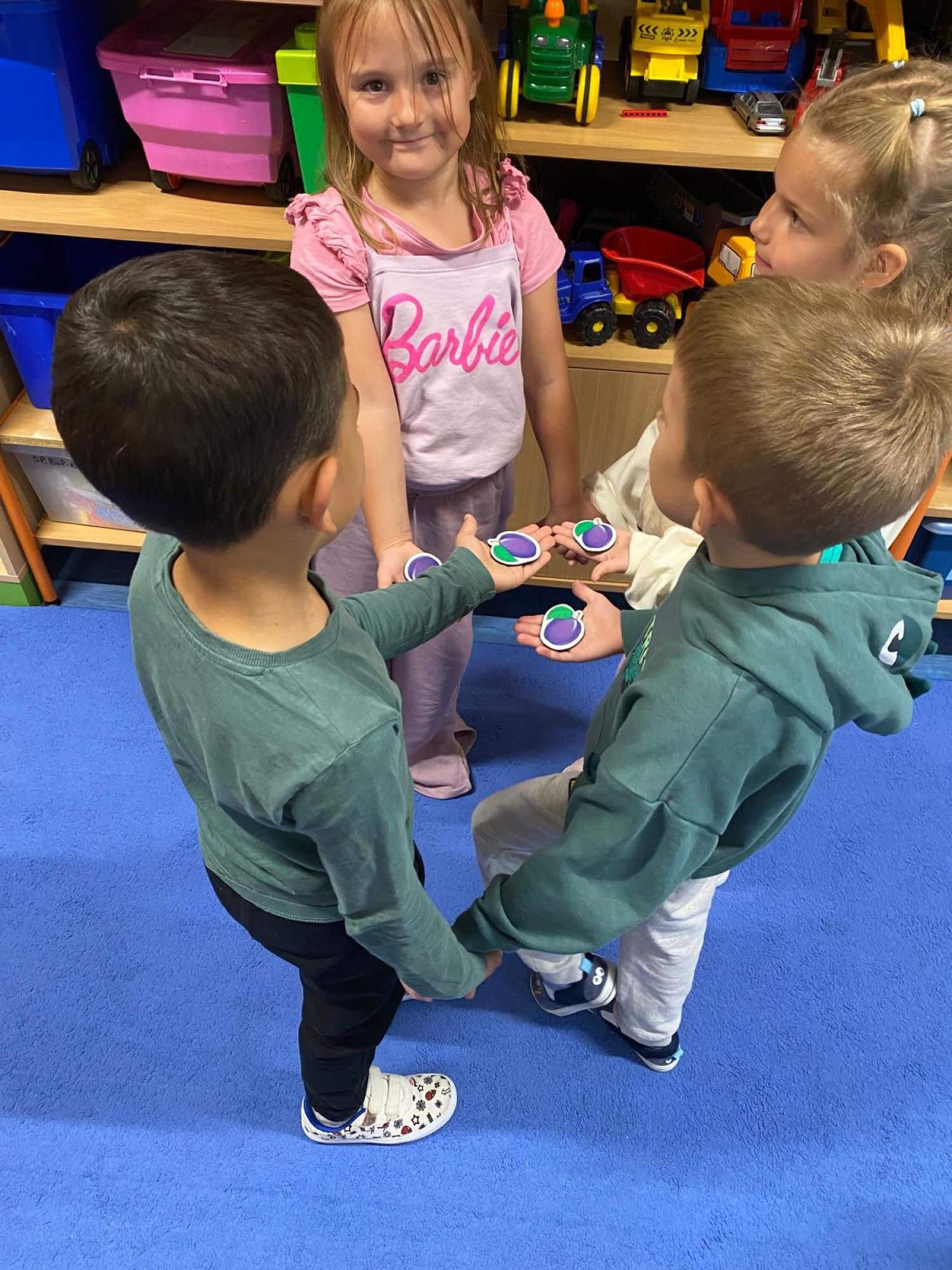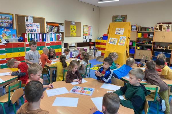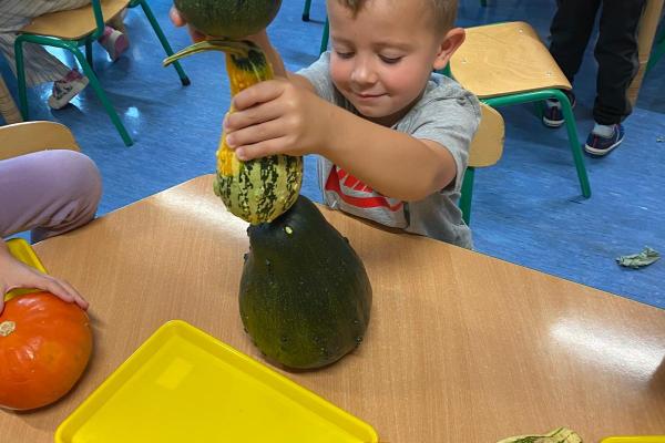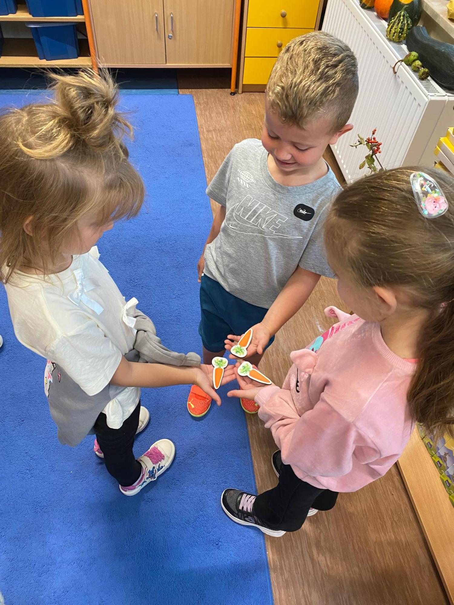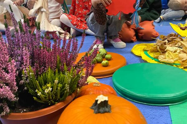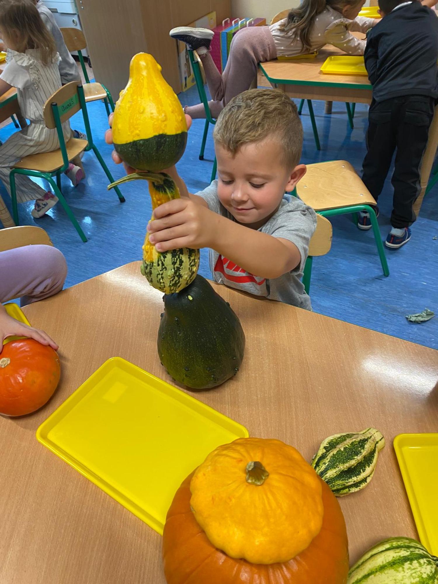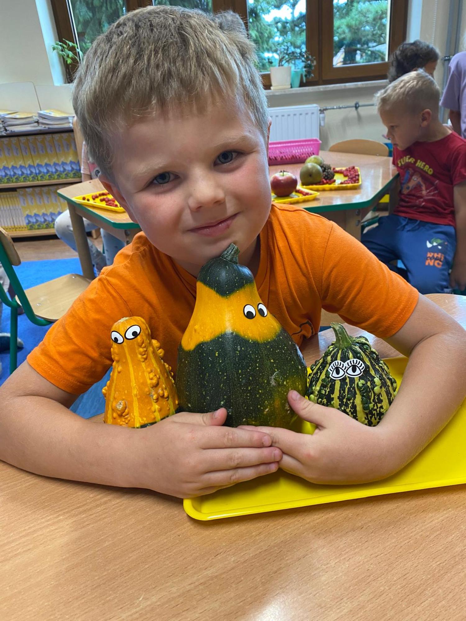 Pierwszy dzień jesieni był w naszym przedszkolu pełen uśmiechów i zabawy. Dzieci z grup 0a i 0b odkrywały uroki nowej pory roku – oglądały jej dary, rysowały Panią Jesień, przeliczały jej skarby, tańczyły i wspólnie świętowały. To był wyjątkowy dzień, który na długo zostanie w pamięci przedszkolaków.
