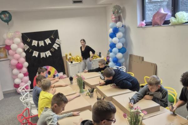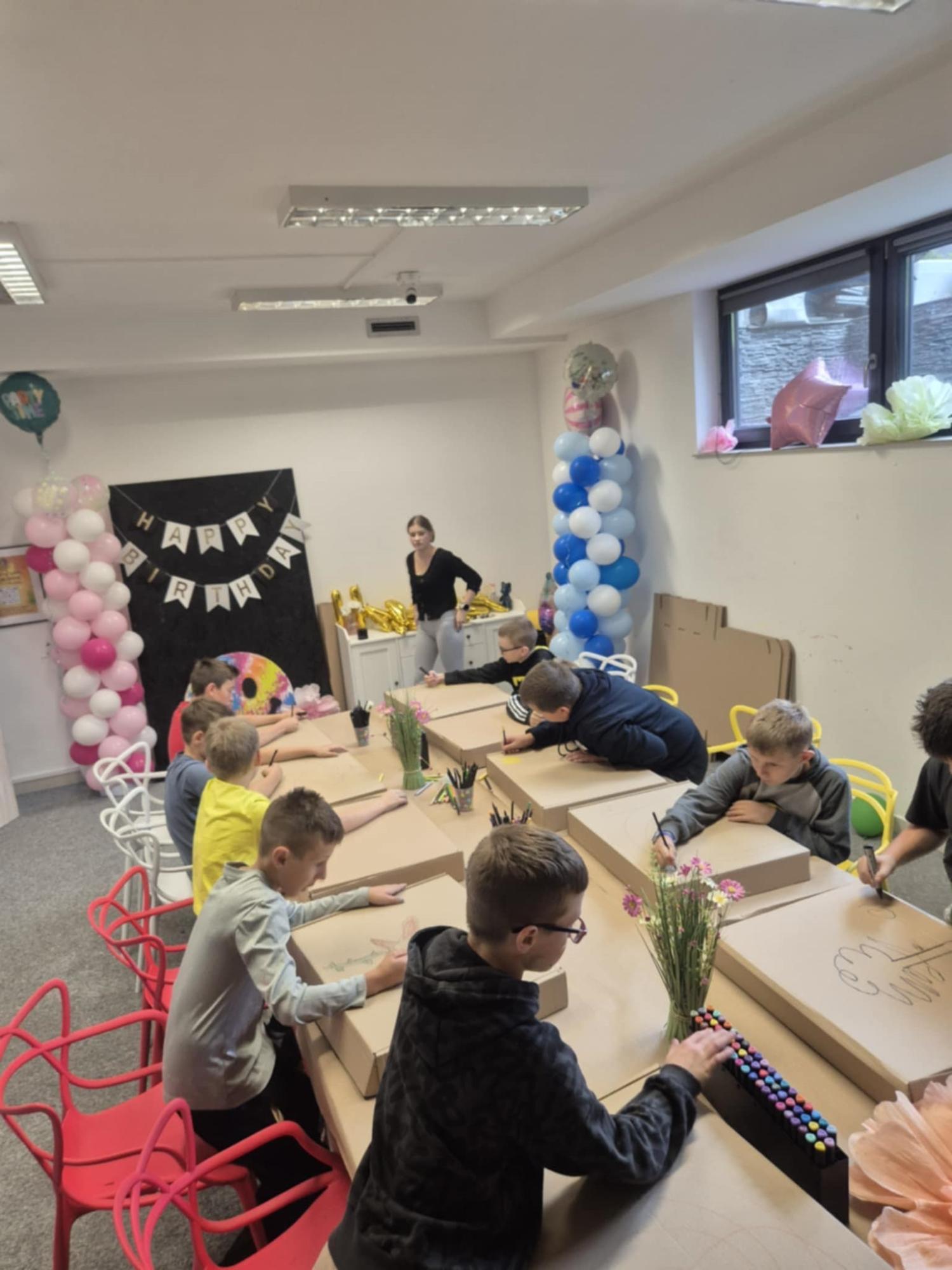 Następnie w Chlap Studio czekała na nich artystyczna przygoda. Podczas kreatywnych warsztatów dzieci zamieniły się w małych twórców, malując, projektując i eksperymentując z kolorami.