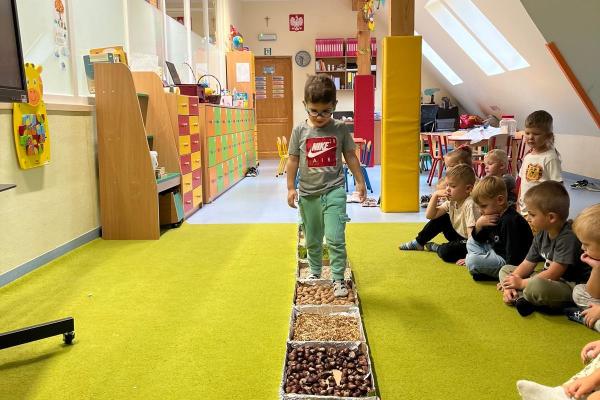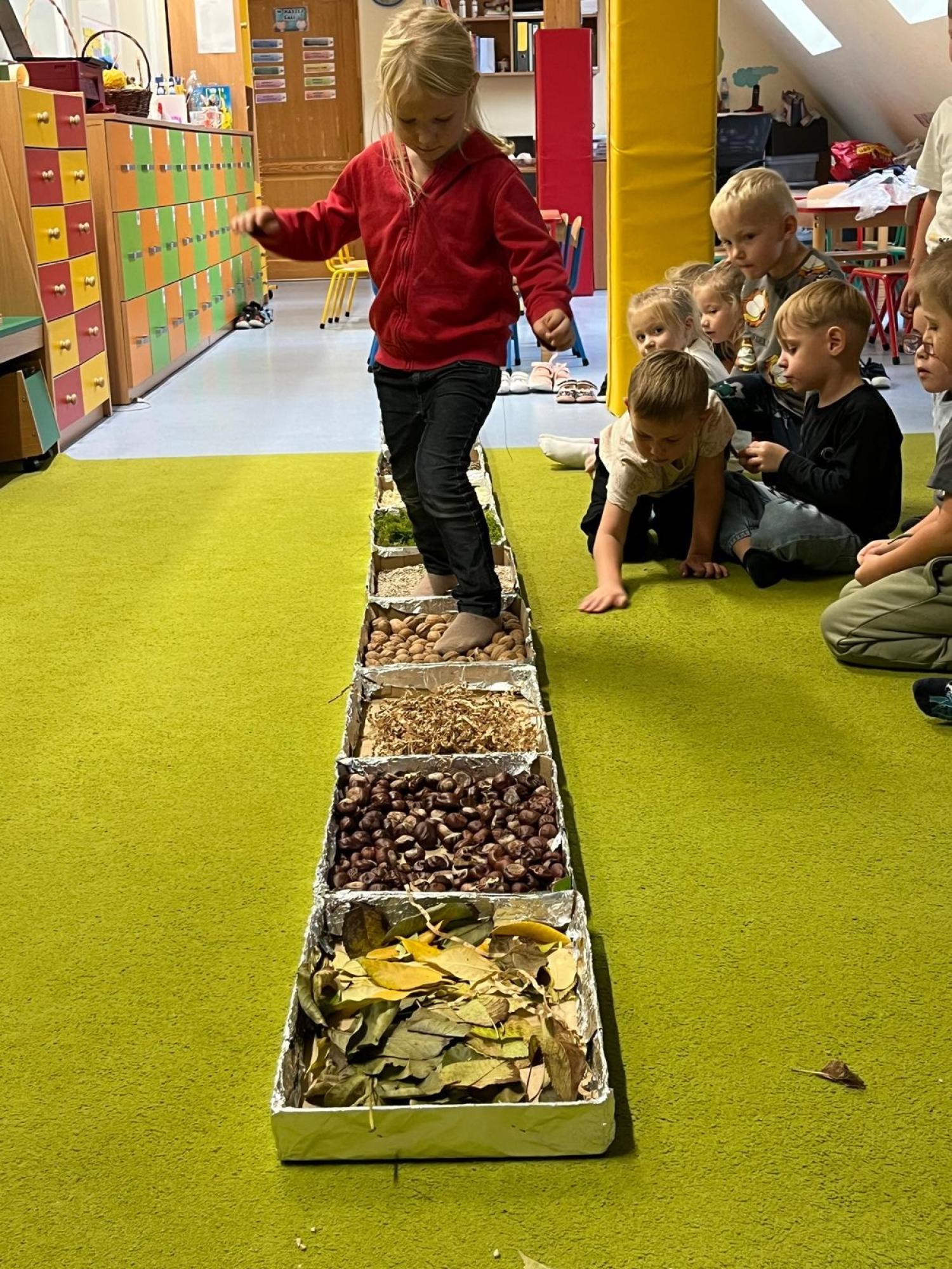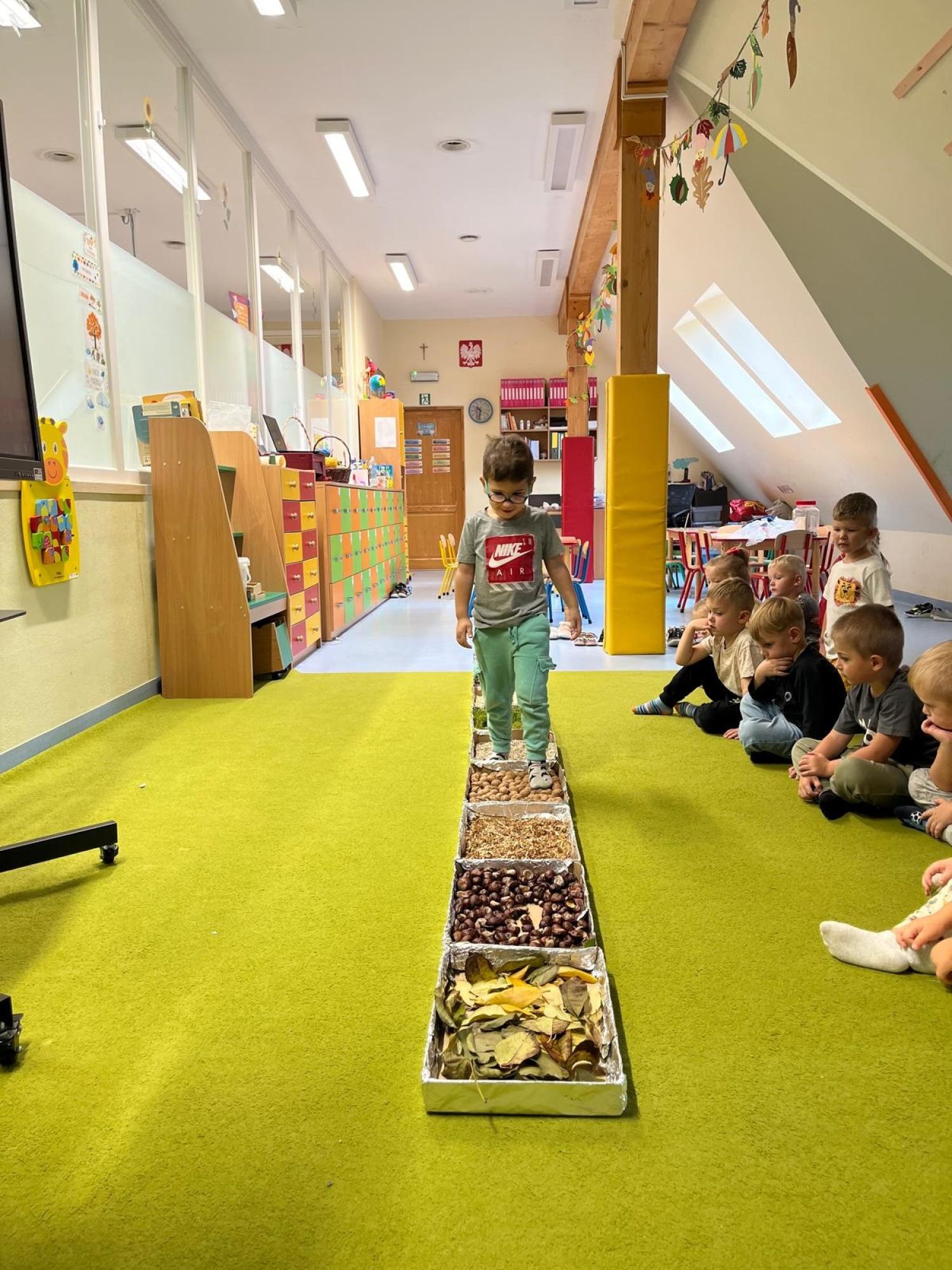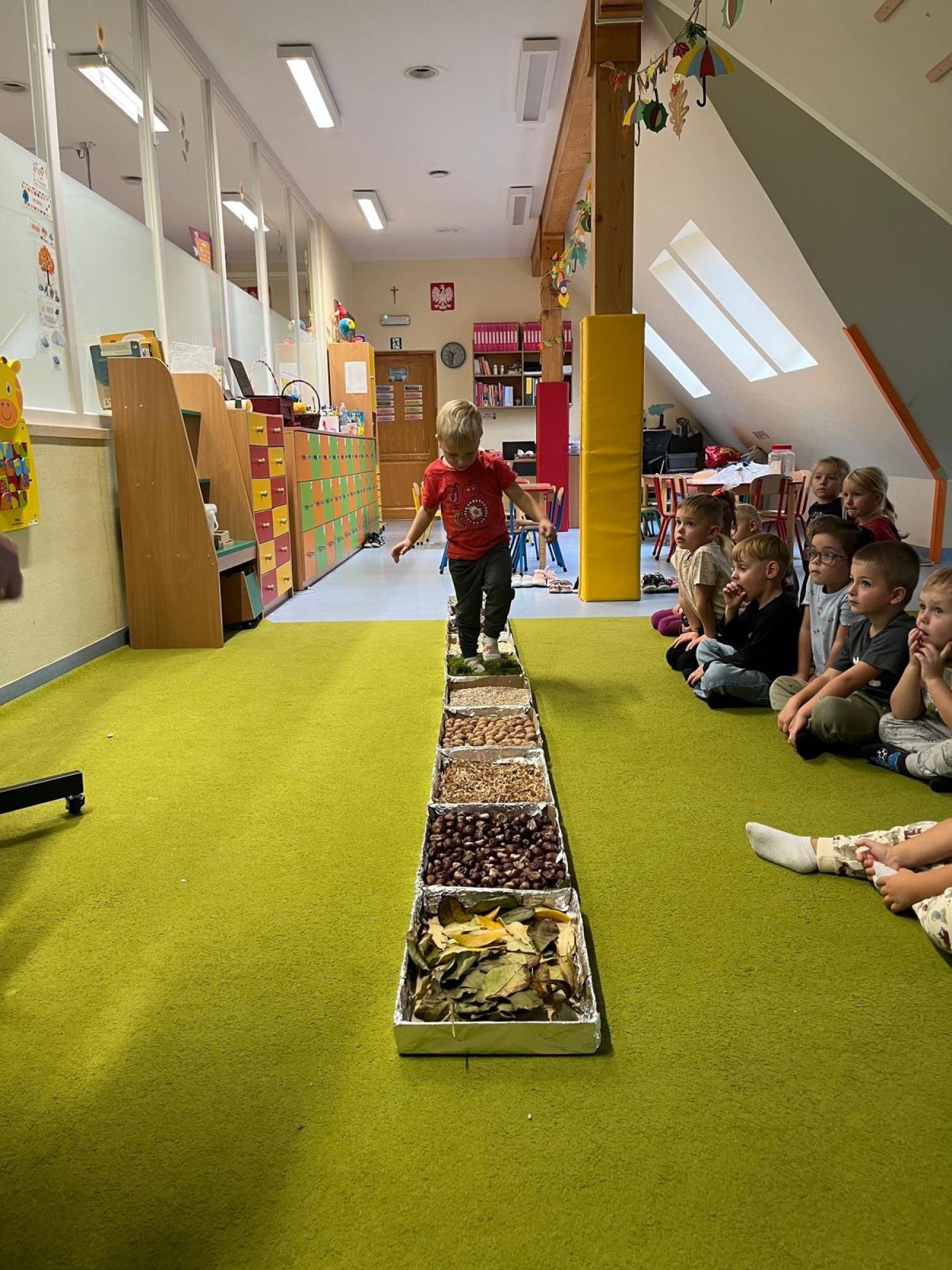 Na początku października do grupy Migotki Radości zawitała Pani Jesień, zostawiając list i zaczarowała zwykły dzień w niezwykłą przygodę! Były jesienne skarby, ścieżka sensoryczna, tańce z chustą i tajemnicze zadania do wykonania. Przedszkolaki świetnie się bawiły, odkrywając uroki jesiennego świata.