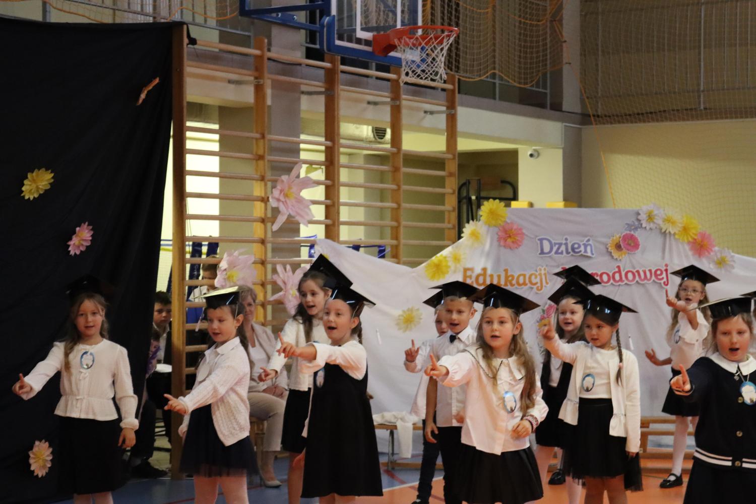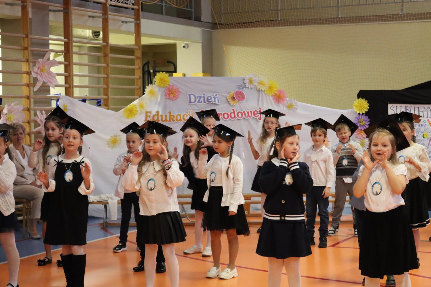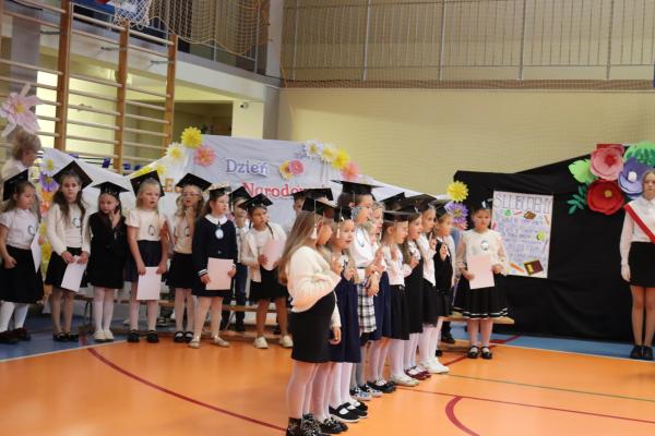 Nie zabrakło również życzeń i podziękowań dla nauczycieli oraz wszystkich pracowników szkoły z okazji Dnia Edukacji Narodowej. Słowa wdzięczności w imieniu społeczności szkolnej złożyli: pani dyrektor, przewodniczący Samorządu Uczniowskiego oraz przedstawiciele Rady Rodziców. Wspólne, głośne „Sto lat” dla nauczycieli było pięknym zwieńczeniem tego wyjątkowego dnia.