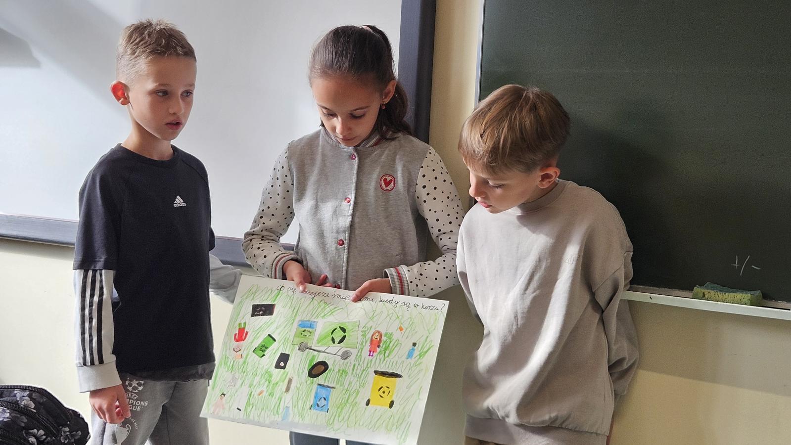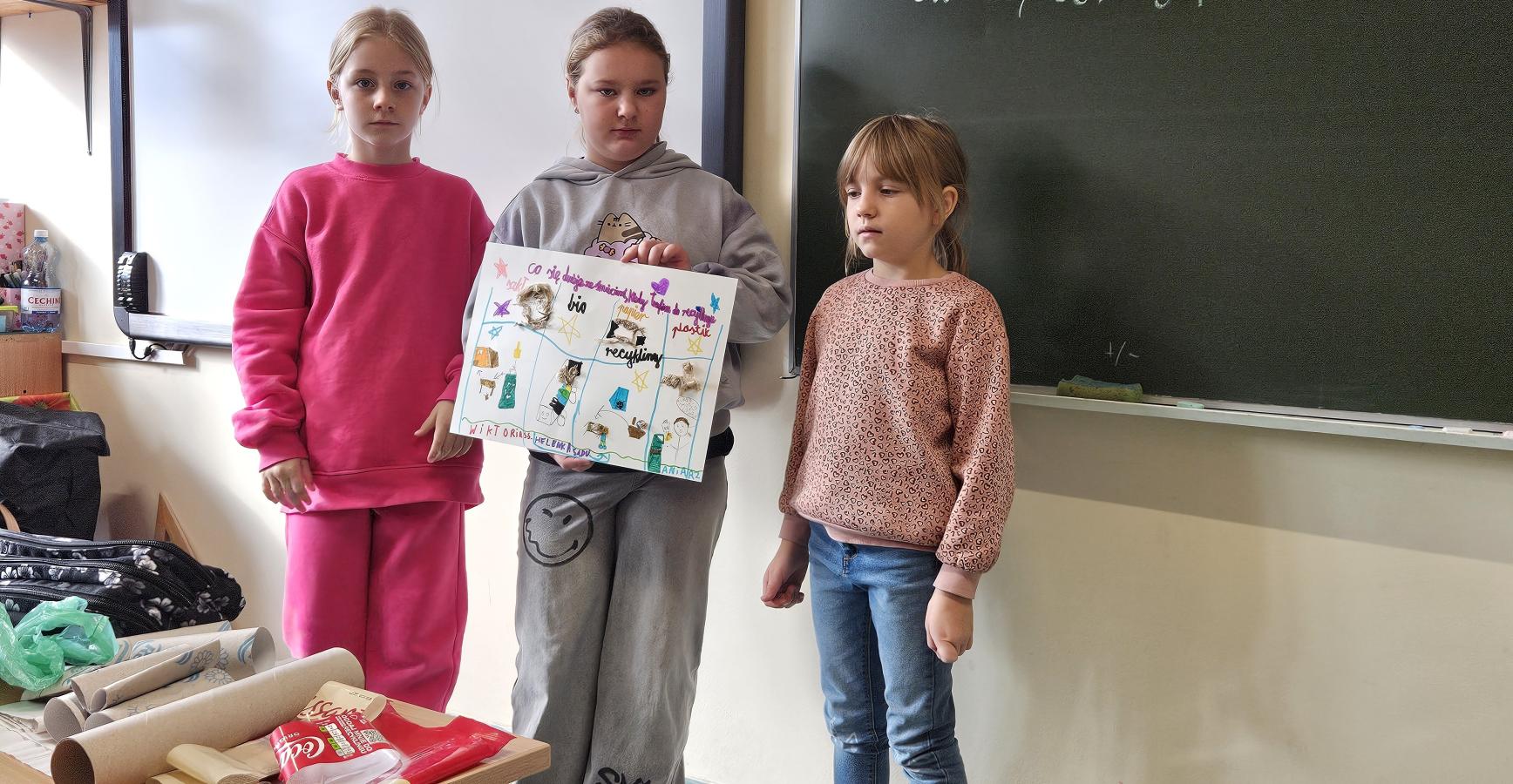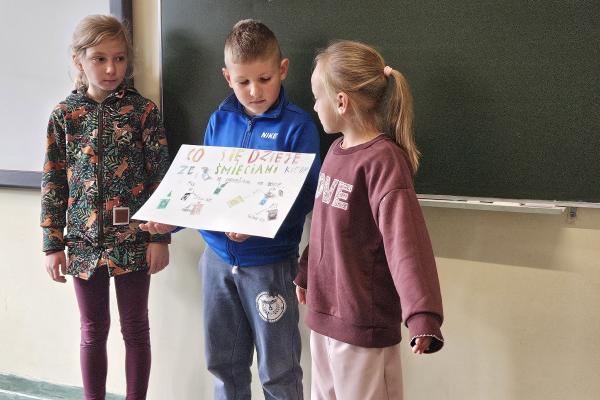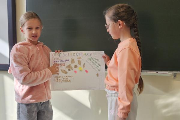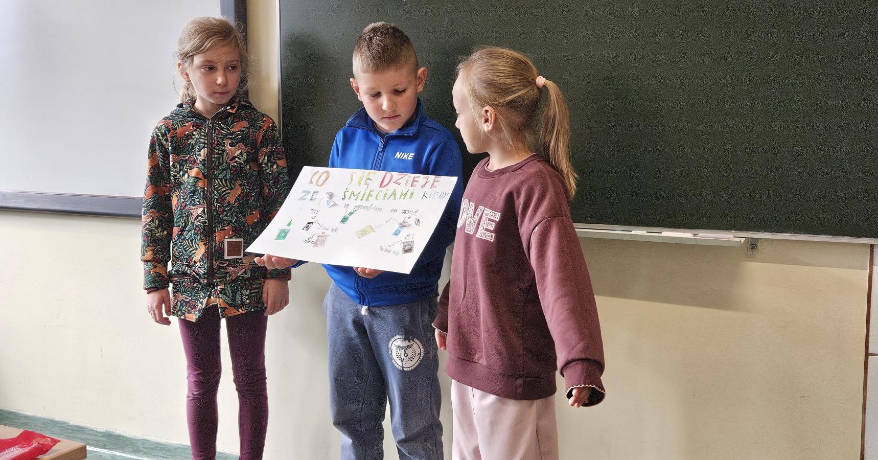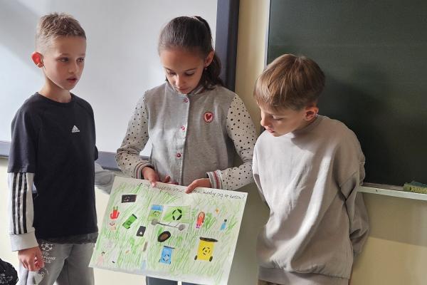 Uczniowie czytali tekst poświęcony problematyce odpadów, z którego pozyskali wiele interesujących informacji dotyczących segregacji śmieci i ich dalszego przetwarzania. W pracy grupowej przygotowali plakaty pt. „Co się dzieje ze śmieciami”, prezentujące etapy obiegu odpadów oraz sposoby ich ponownego wykorzystania. Kolejnym punktem zajęć był film edukacyjny poświęcony ekologii w życiu codziennym, który uświadomił uczniom, że każdy z nas może przyczynić się do ochrony środowiska poprzez drobne, ale systematyczne działania.