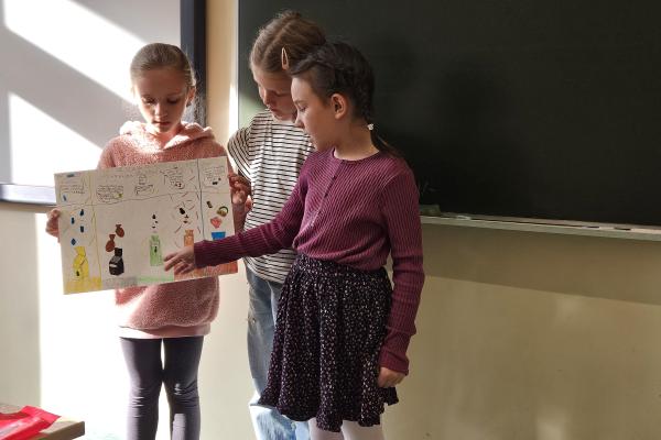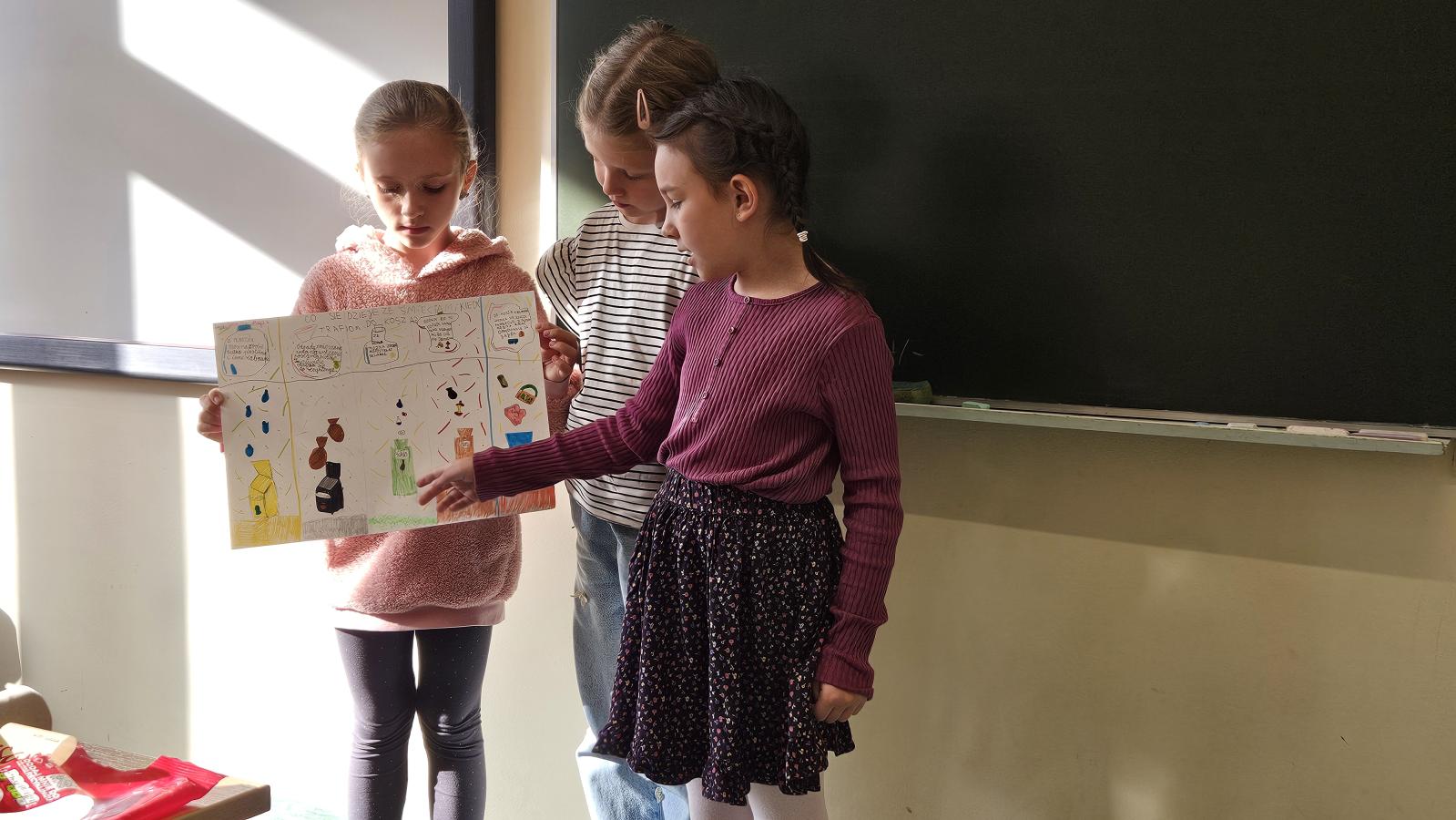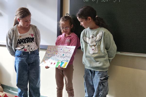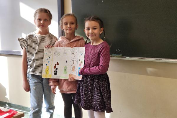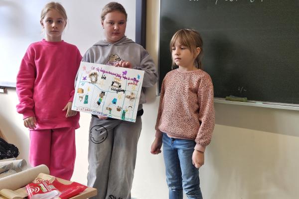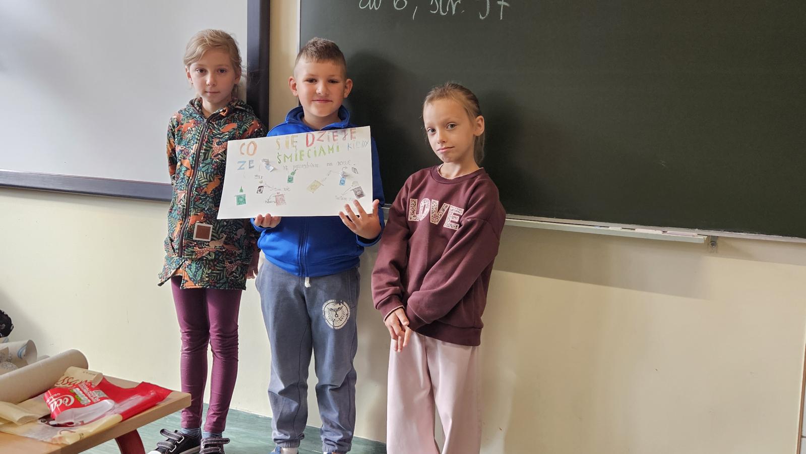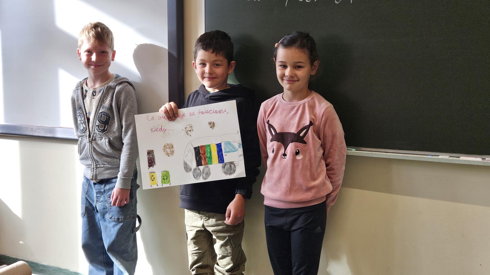Uczniowie czytali tekst poświęcony problematyce odpadów, z którego pozyskali wiele interesujących informacji dotyczących segregacji śmieci i ich dalszego przetwarzania. W pracy grupowej przygotowali plakaty pt. „Co się dzieje ze śmieciami”, prezentujące etapy obiegu odpadów oraz sposoby ich ponownego wykorzystania. Kolejnym punktem zajęć był film edukacyjny poświęcony ekologii w życiu codziennym, który uświadomił uczniom, że każdy z nas może przyczynić się do ochrony środowiska poprzez drobne, ale systematyczne działania.