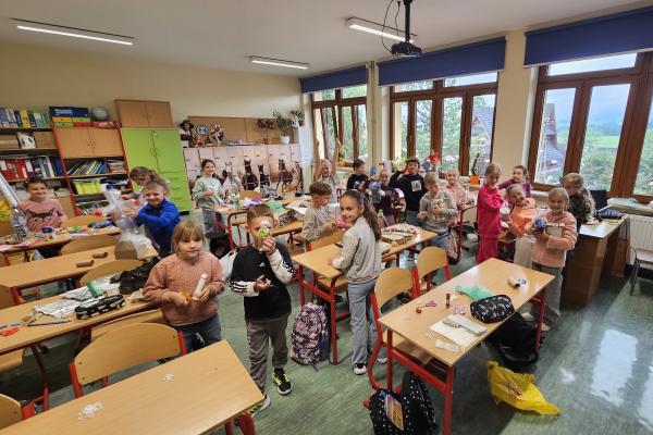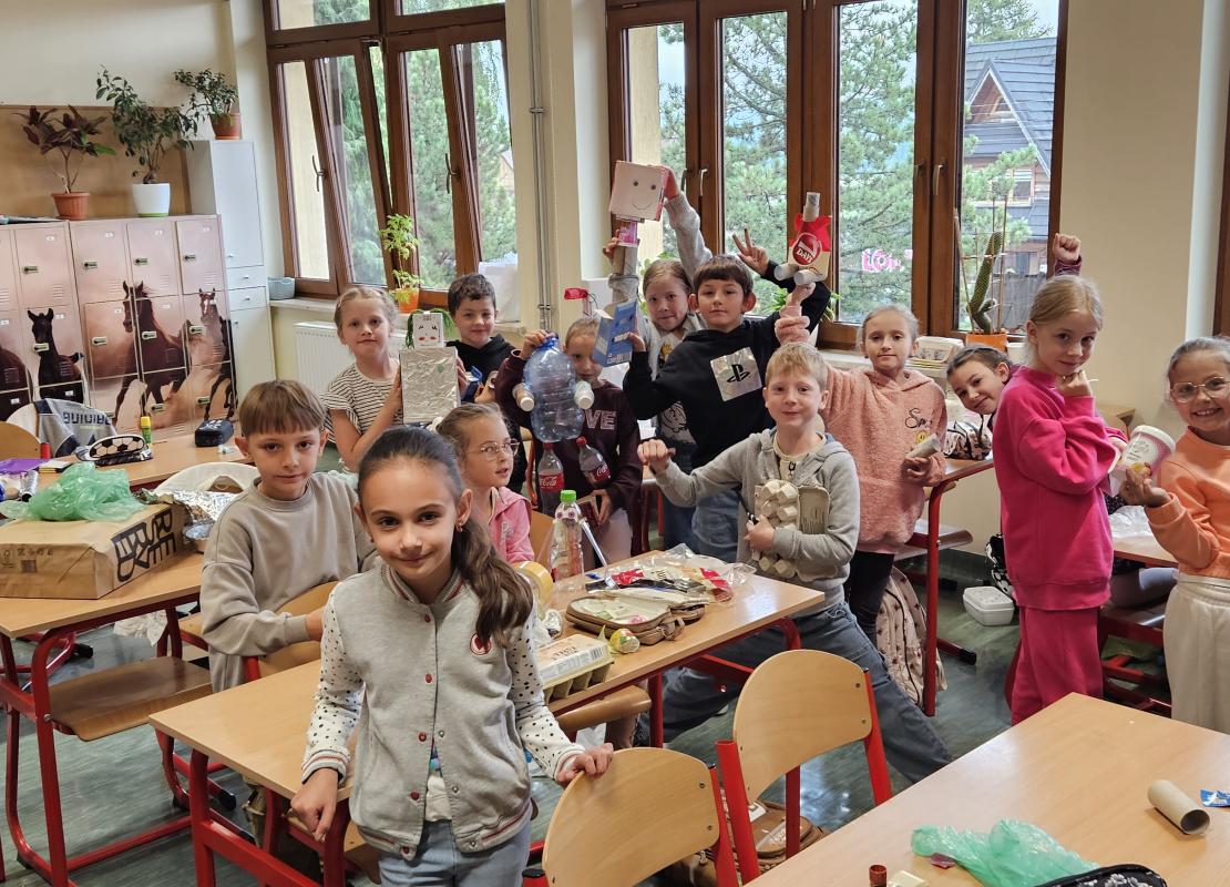Na zakończenie cyklu uczniowie wykonali Ekoludki z odpadów przyniesionych z domu, dając w ten sposób drugie życie niepotrzebnym przedmiotom i rozwijając swoją kreatywność.