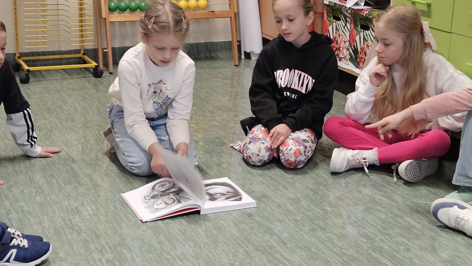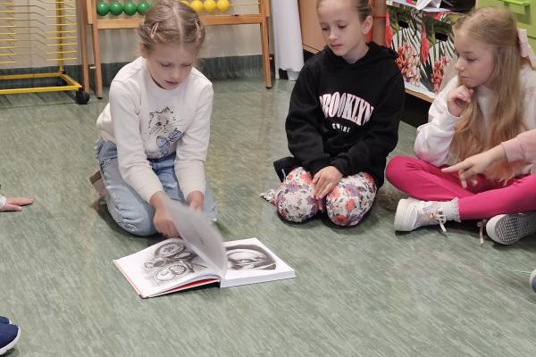 Zajęcia rozpoczęły się od prezentacji książki przygotowanej przez jedną z uczennic, która w ciekawy sposób opowiedziała o sztuce malowania martwej natury i podzieliła się z koleżankami oraz kolegami kilkoma cennymi wskazówkami dotyczącymi obserwacji kształtów, barw i światła.