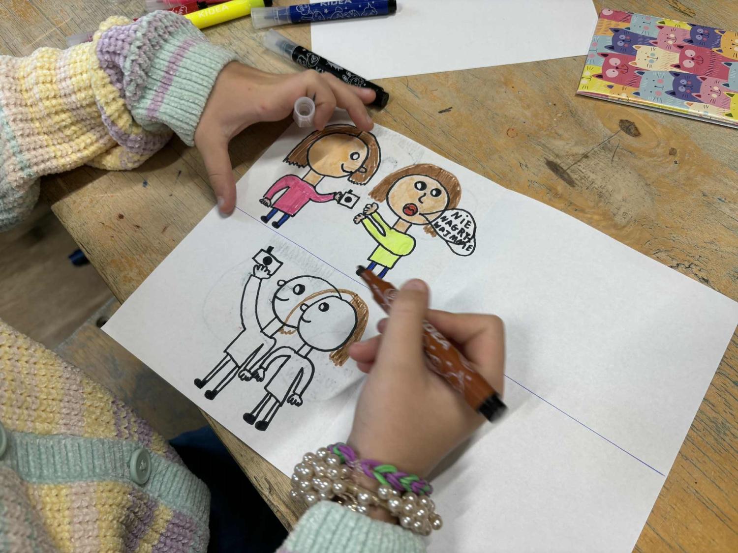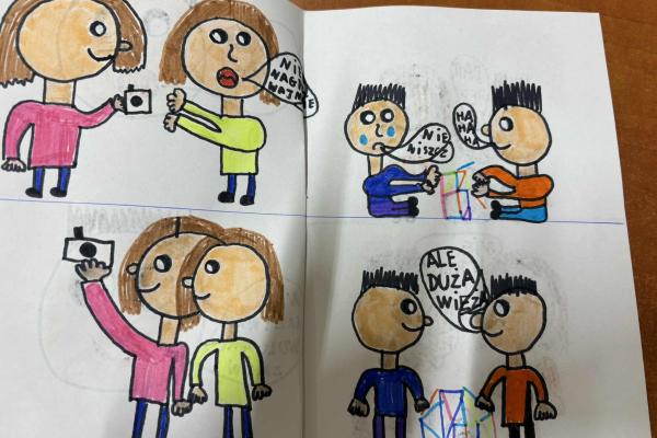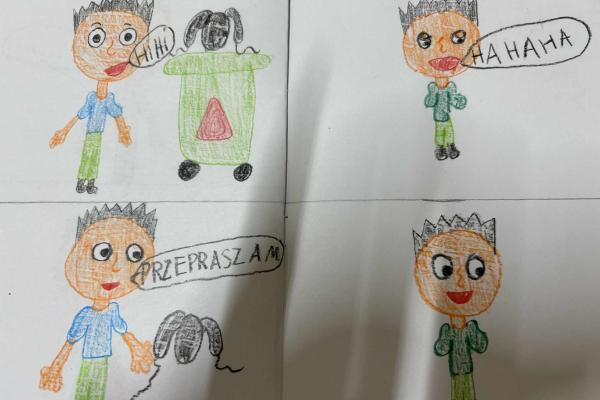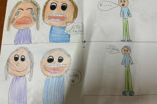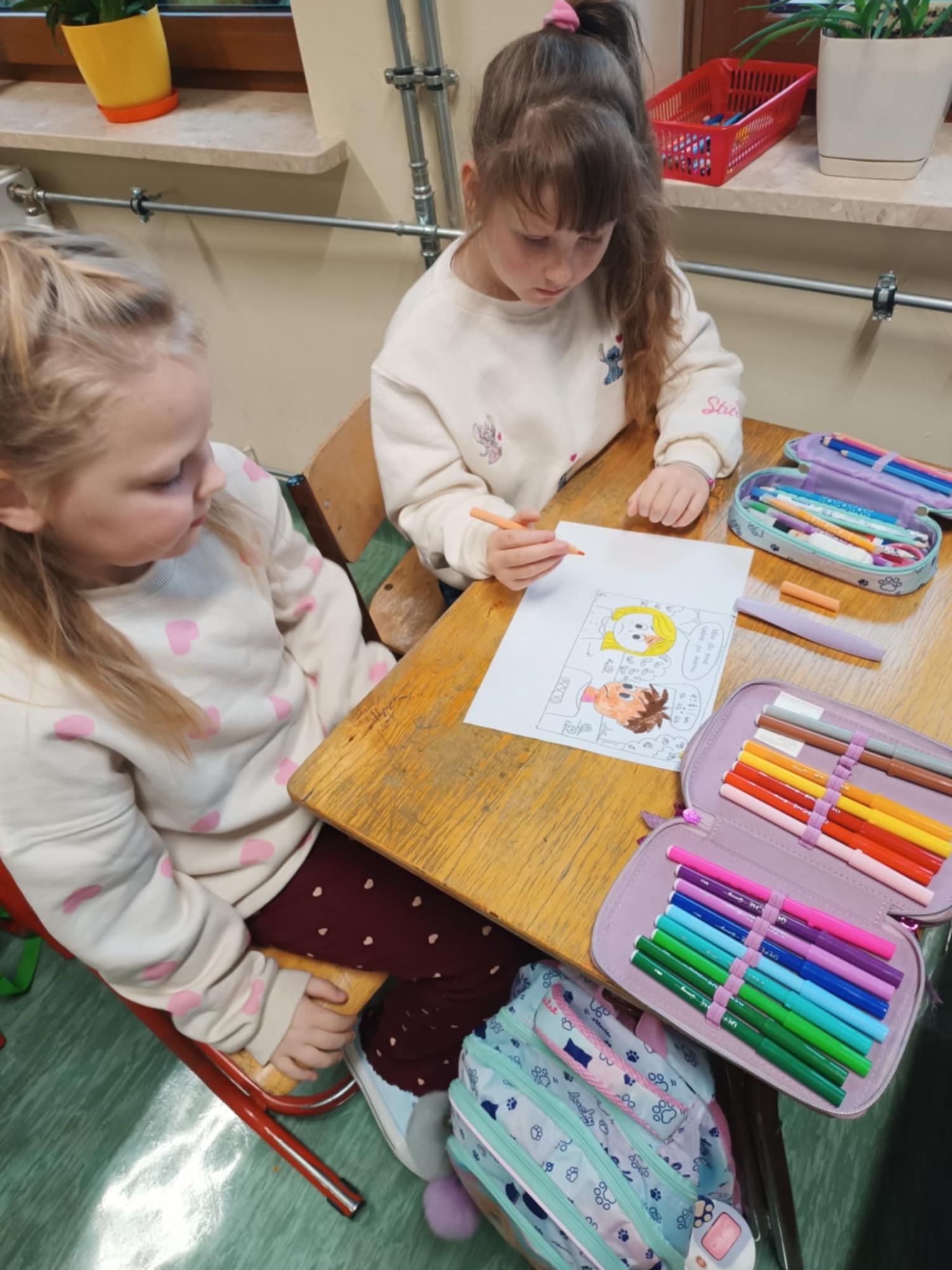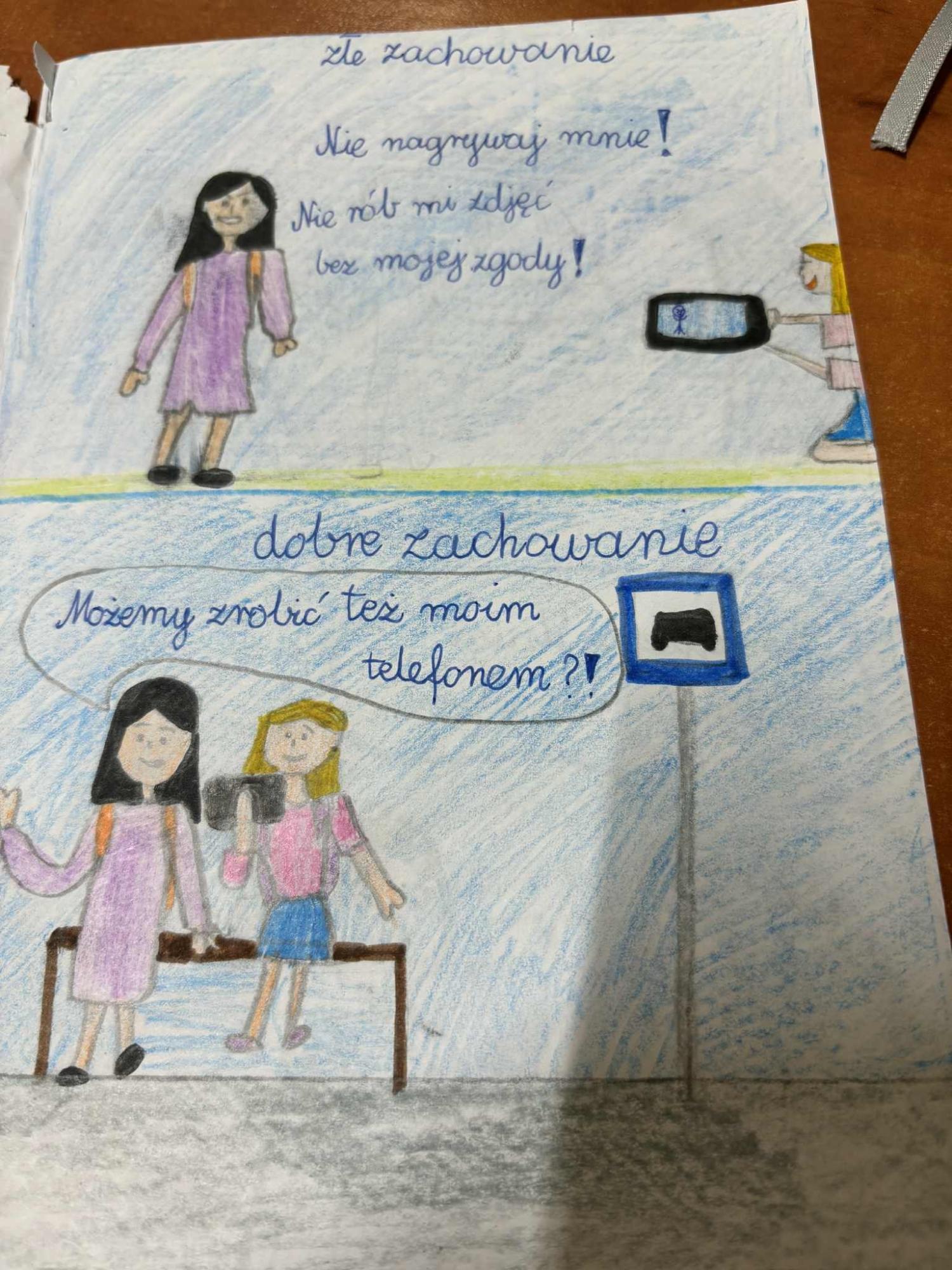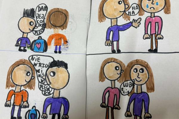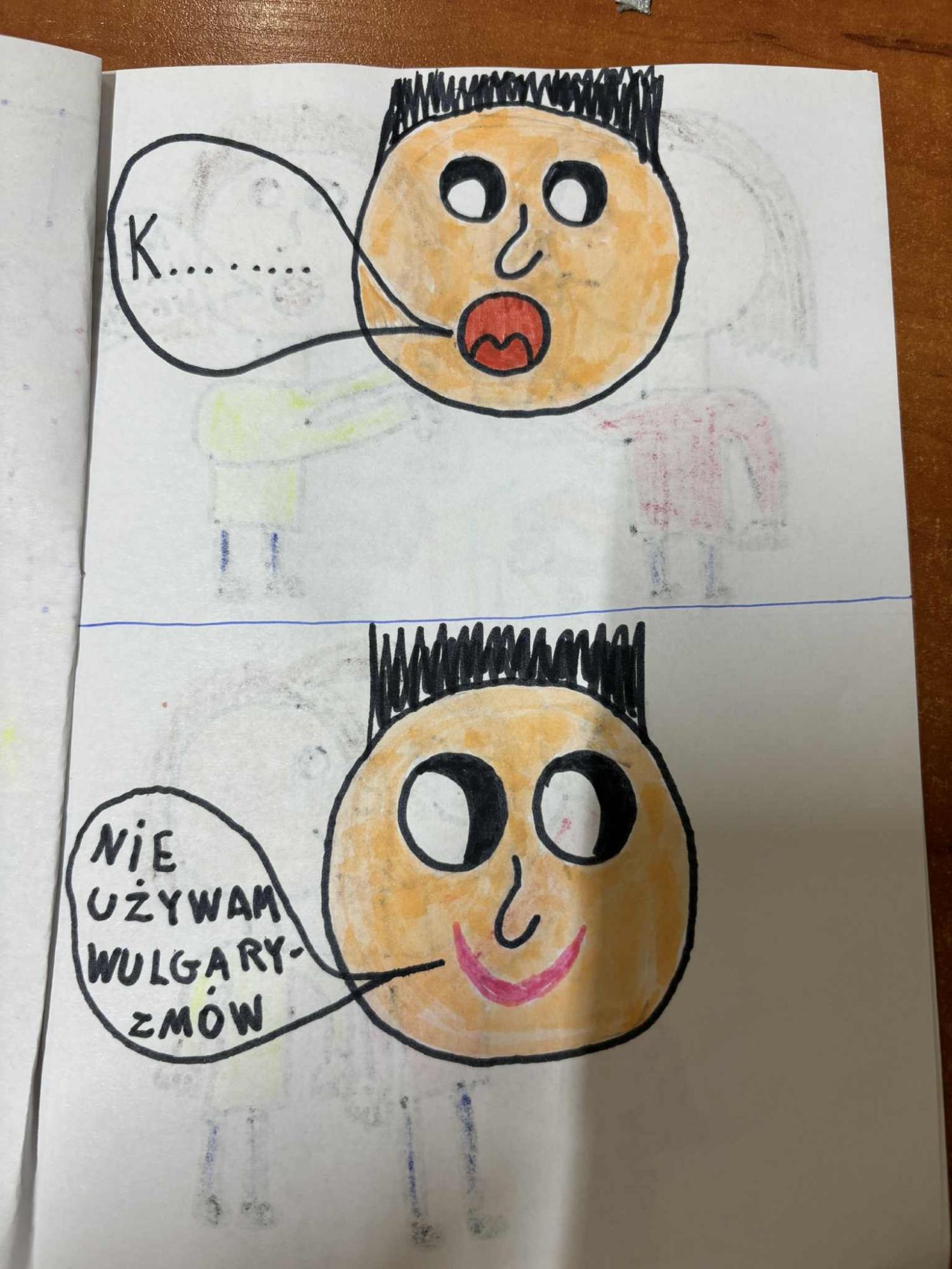 W klasach drugich poruszano tematykę hejtu, rówieśnictwa i właściwego zachowania w relacjach z innymi. Uczniowie rozmawiali o tym, jak reagować na przemoc słowną, jak wspierać kolegów i koleżanki oraz dlaczego warto być życzliwym wobec innych. Dzieci uczestniczyły w dyskusjach, scenkach dramowych i tworzyły hasła przeciwko hejtowi.