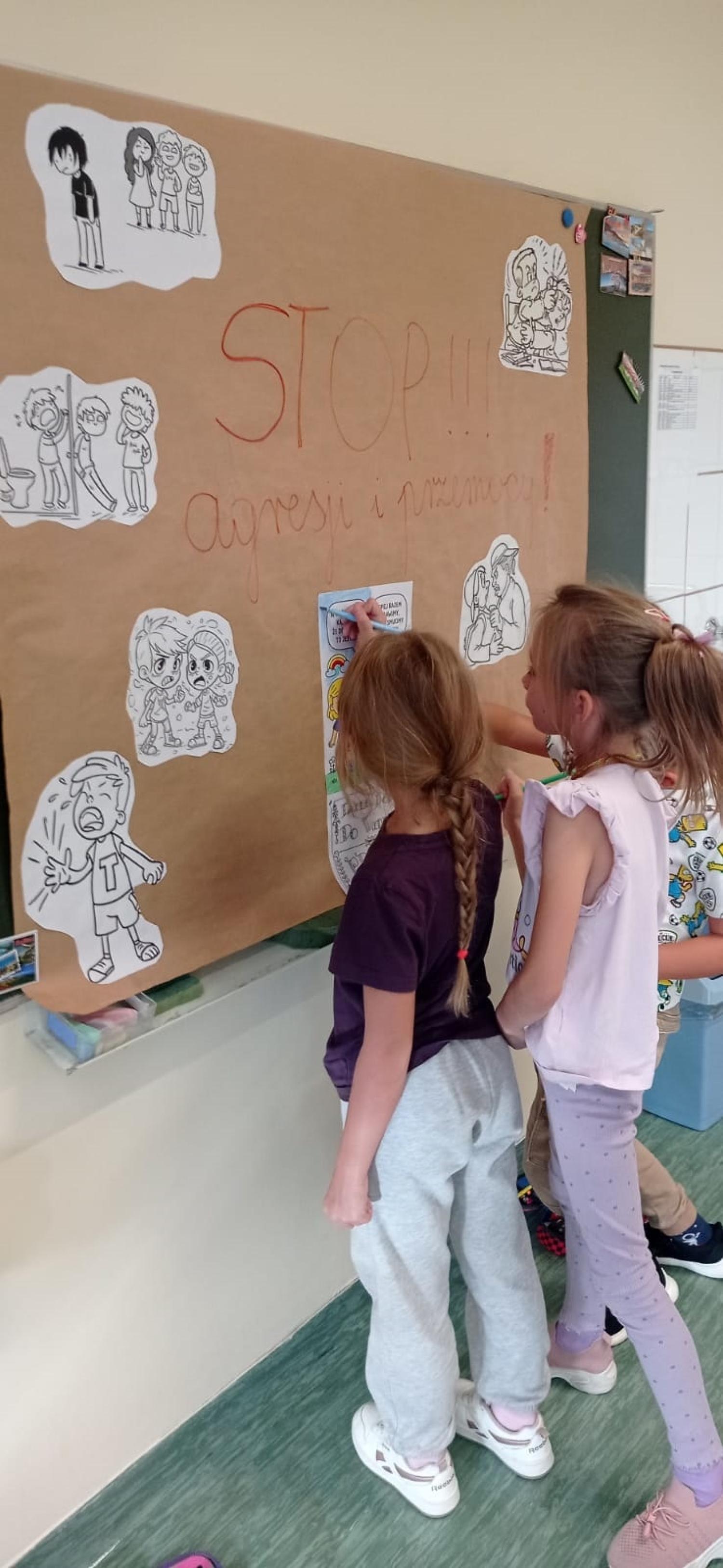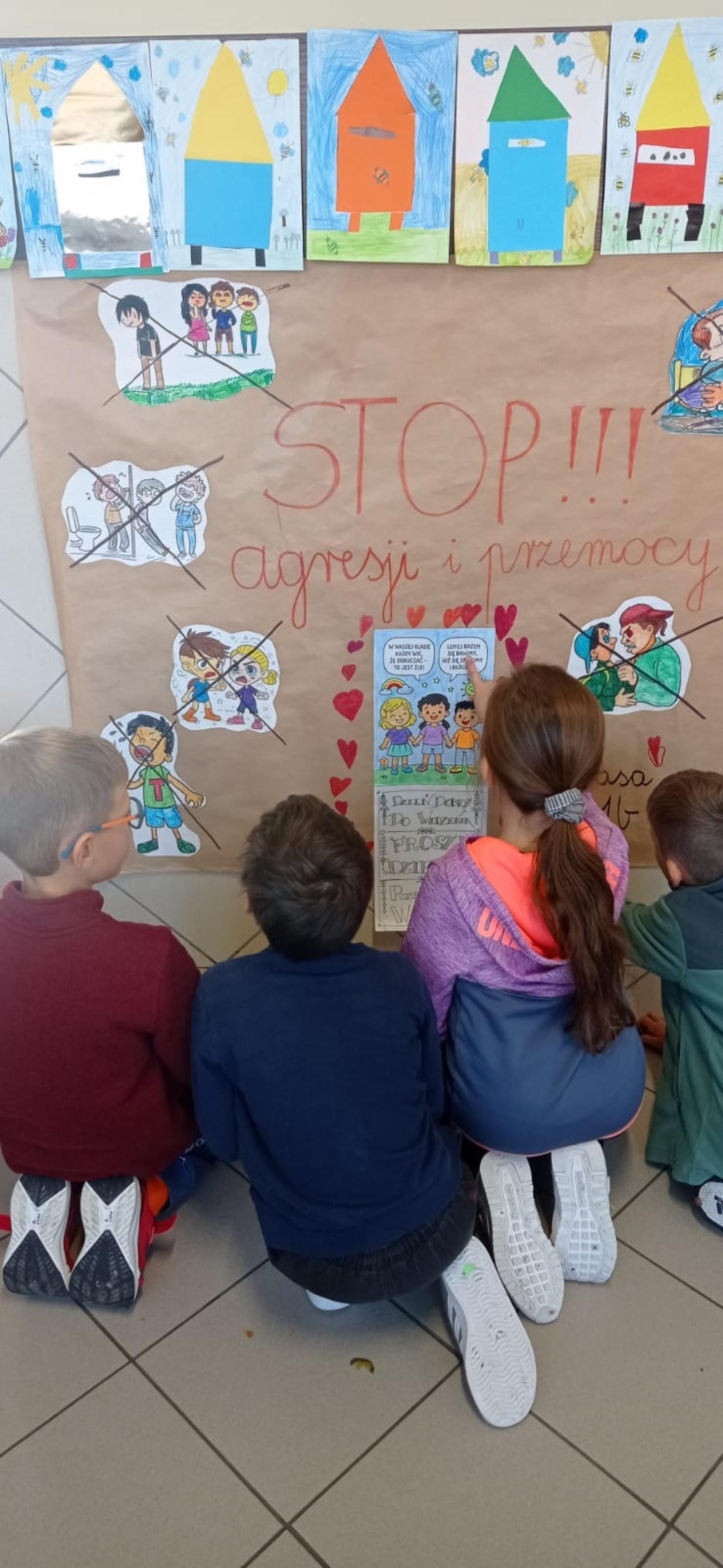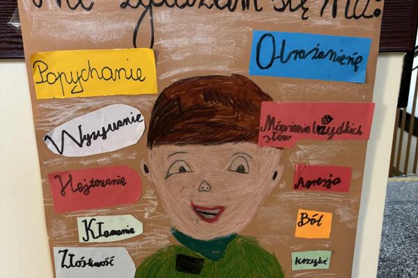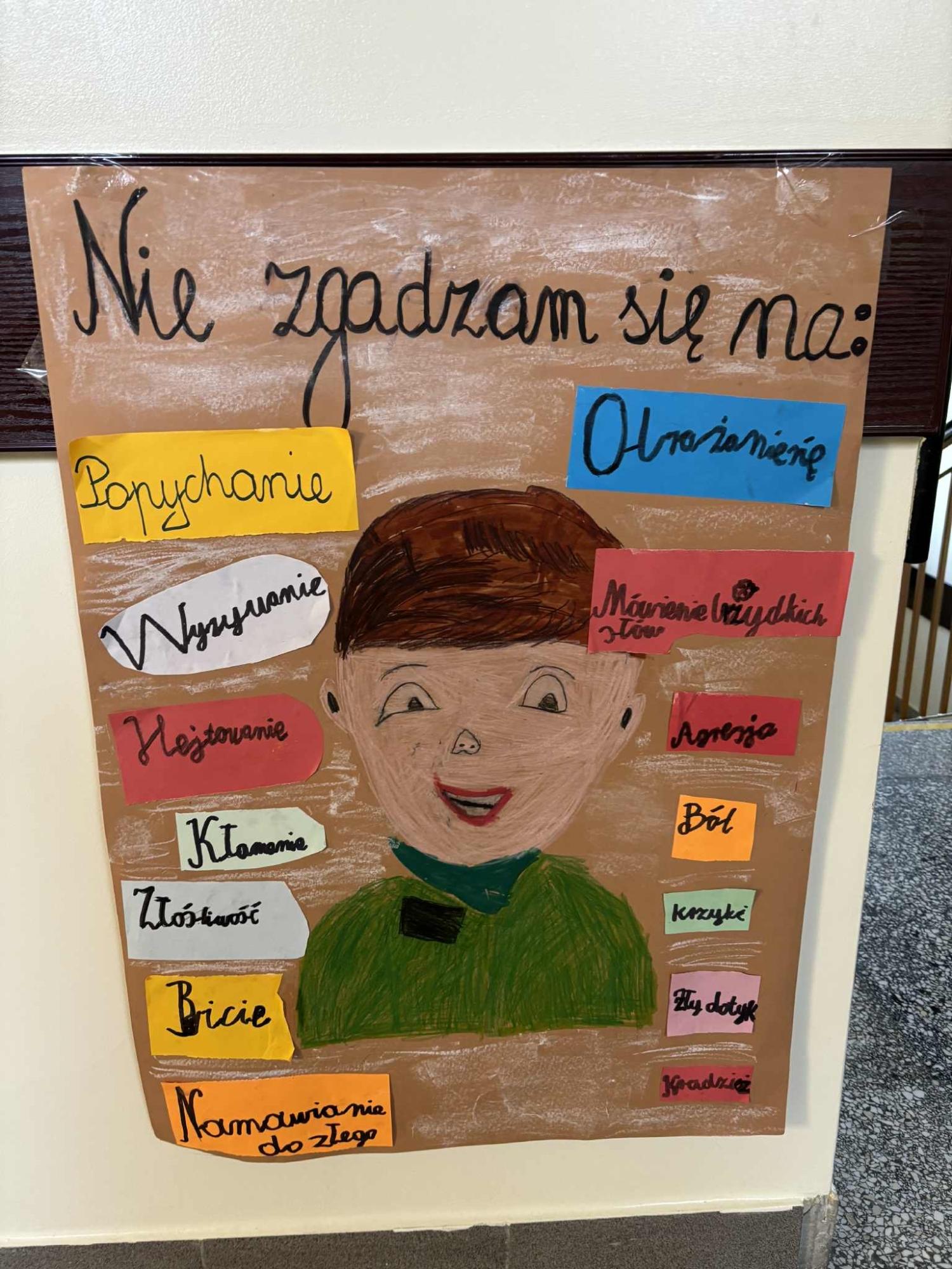 Uczniowie klas pierwszych poznawali pojęcie przemocy oraz sposoby jej zapobiegania. Uczyli się rozpoznawać i wyrażać emocje w sposób spokojny i kulturalny, a także rozwiązywać konflikty bez agresji. W ramach zajęć wykonywali rysunki i plakaty promujące życzliwość i przyjaźń.