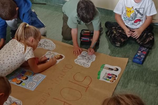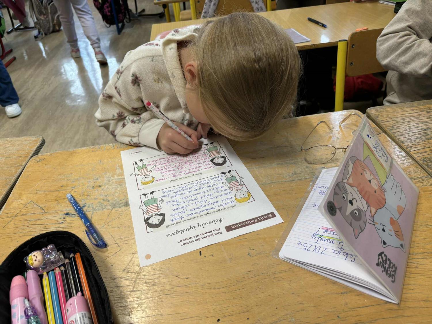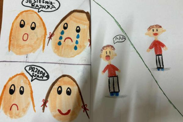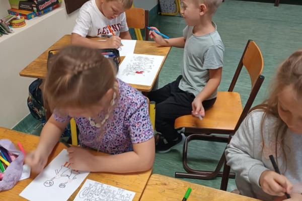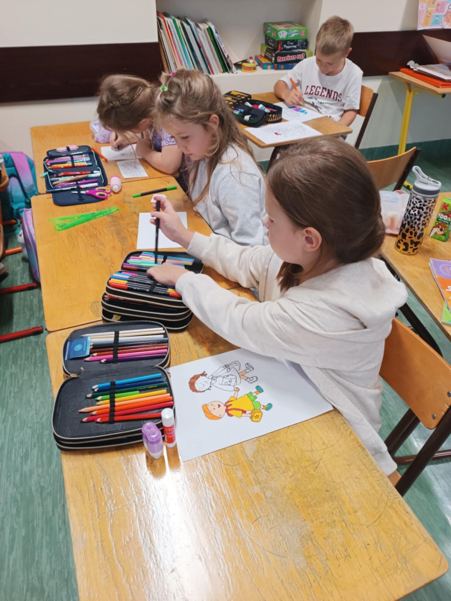 Uczniowie klas pierwszych poznawali pojęcie przemocy oraz sposoby jej zapobiegania. Uczyli się rozpoznawać i wyrażać emocje w sposób spokojny i kulturalny, a także rozwiązywać konflikty bez agresji. W ramach zajęć wykonywali rysunki i plakaty promujące życzliwość i przyjaźń.
