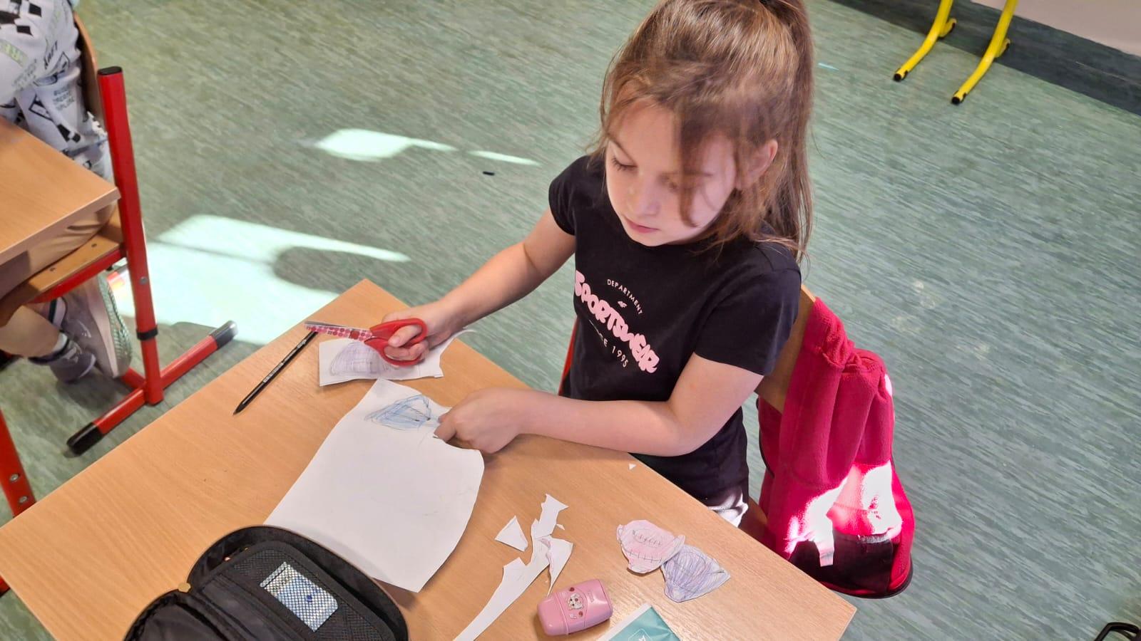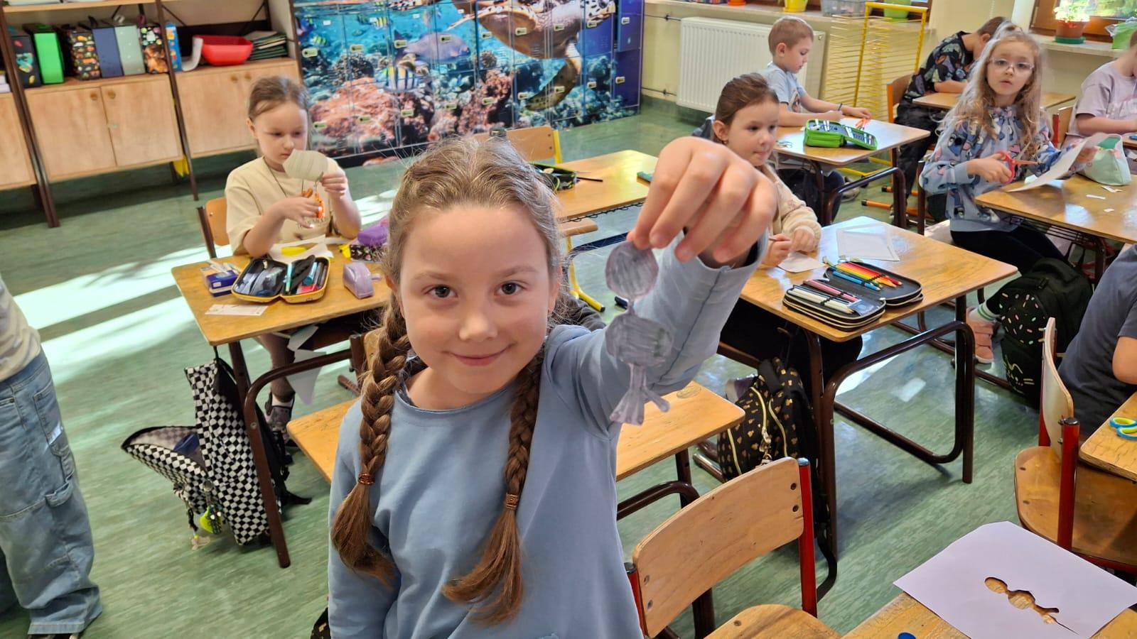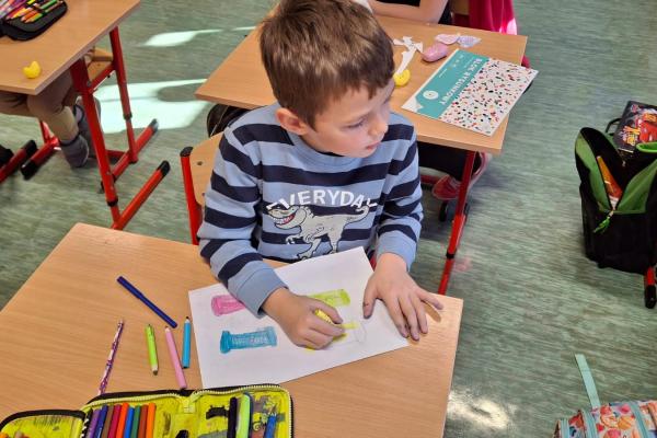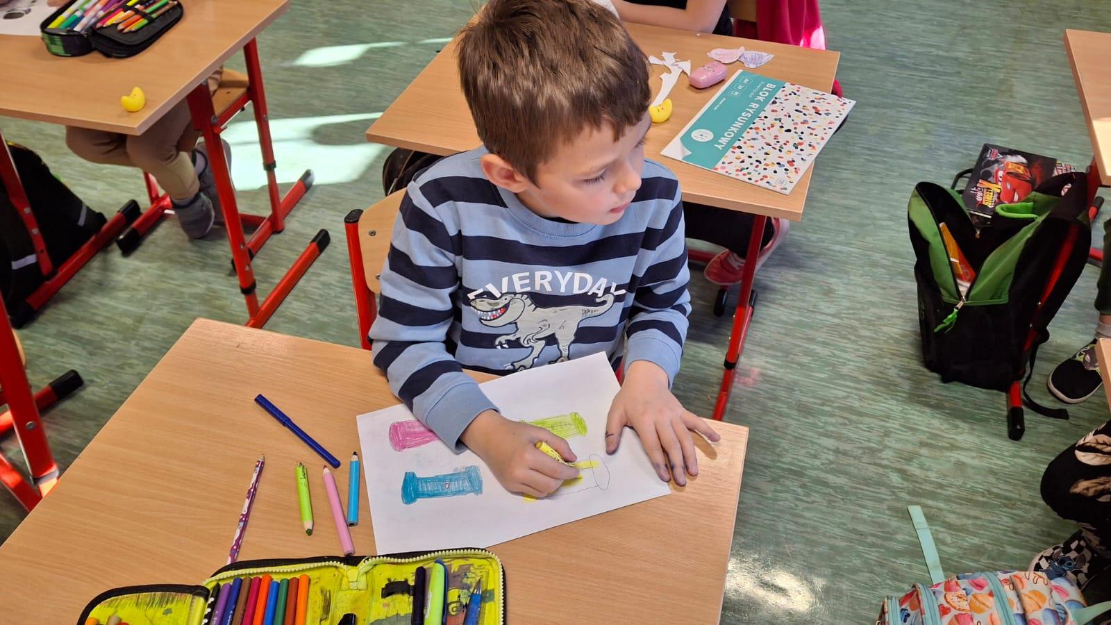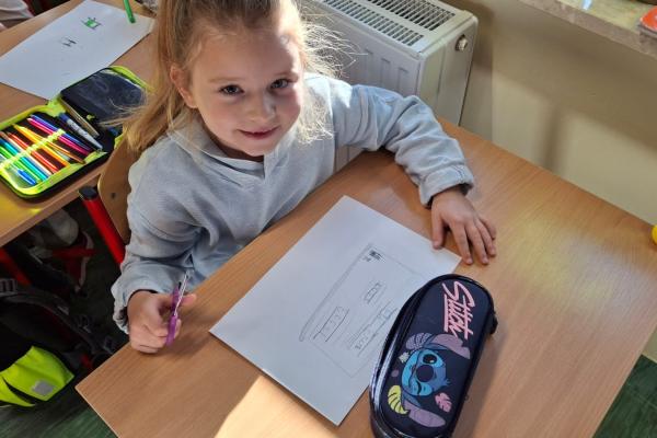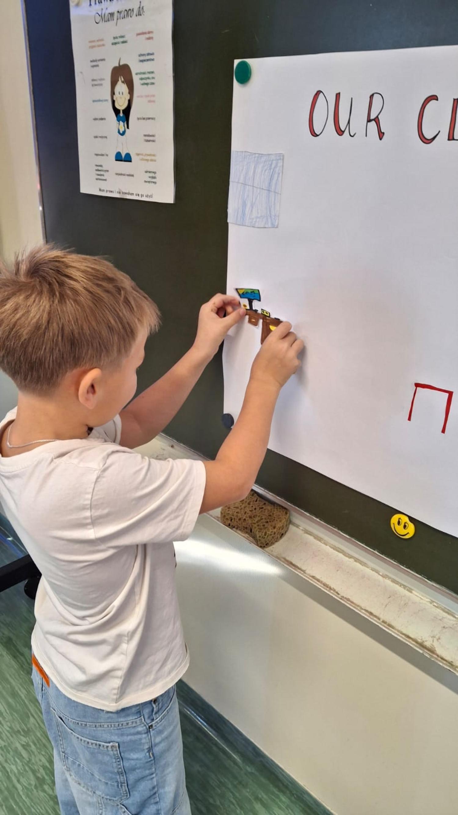 Dzięki temu mogli nie tylko powtórzyć słownictwo związane z wyposażeniem klasy, ale także rozwijać swoją wyobraźnię i pracować w atmosferze zabawy, bo język angielski to nie tylko podręcznik i ćwiczenia – to również twórczość, współpraca i radość z odkrywania nowych słów w praktyce!