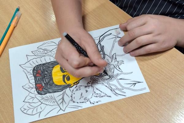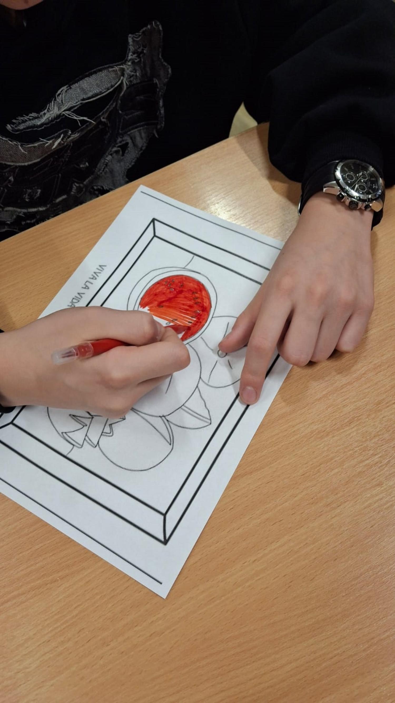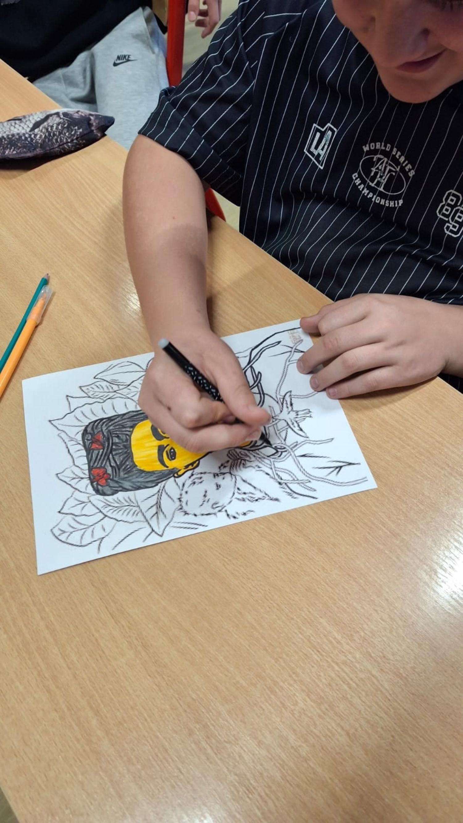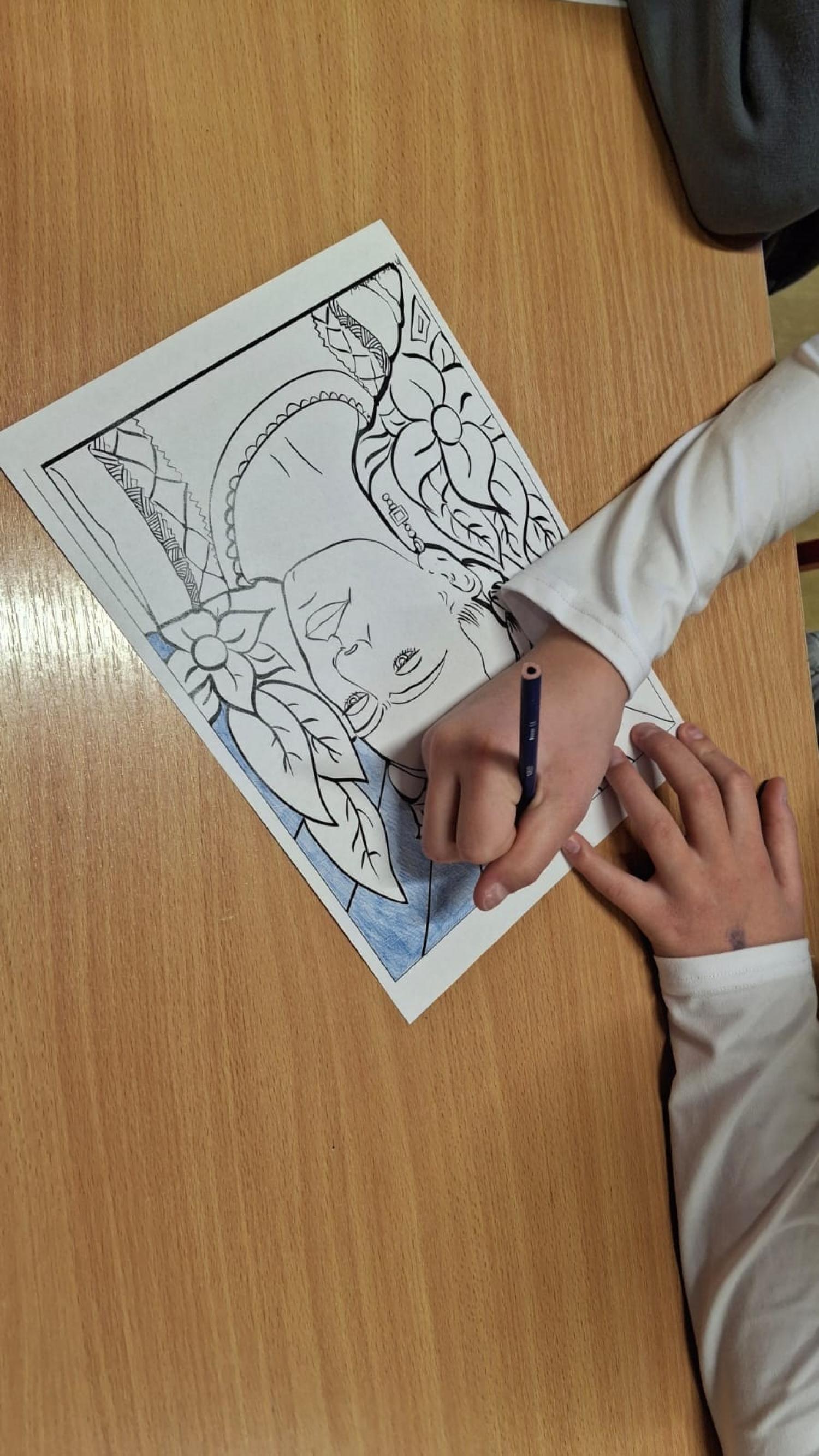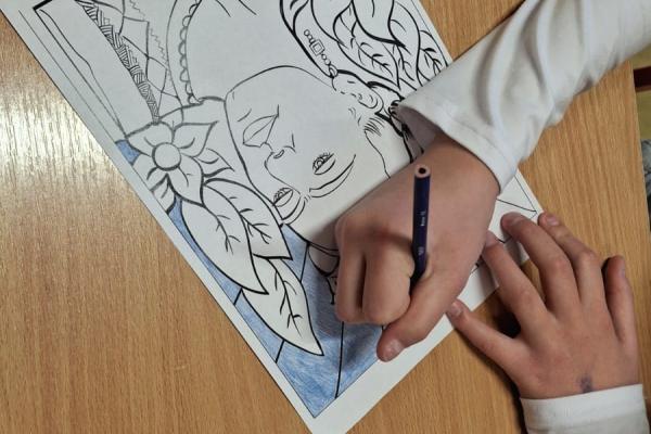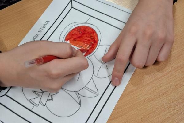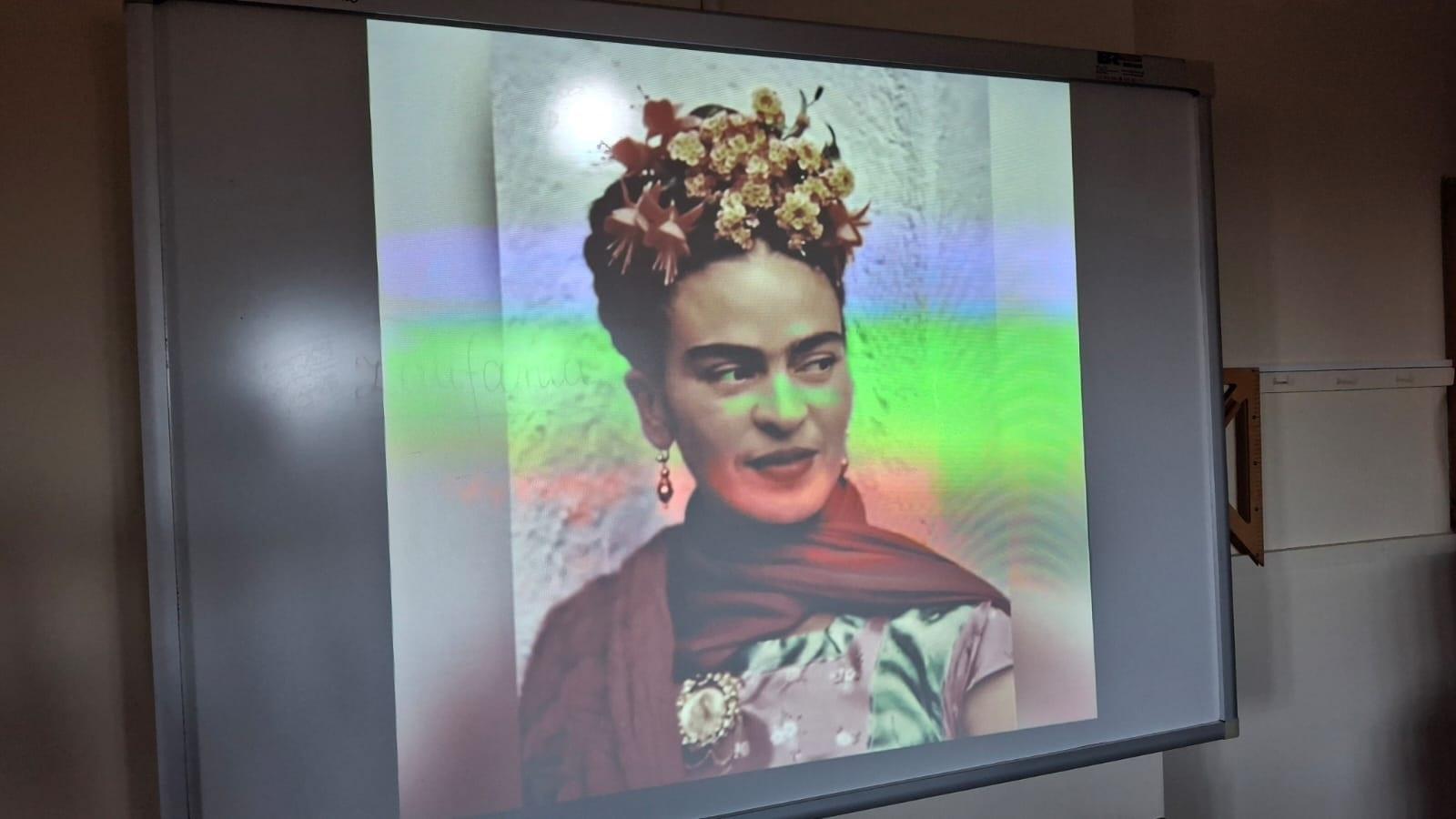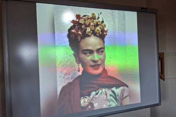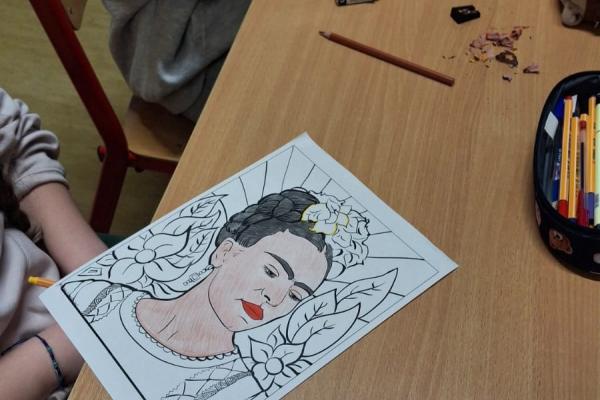 Podczas zajęć poznaliśmy sylwetkę artystki, ciekawostki z jej życia oraz kulturę Meksyku. Rozmawialiśmy o tym, czym jest pasja i jak dzięki niej można pokonywać trudności. Wspólnie omówiliśmy cechy, które warto podkreślić u Fridy: kreatywność, odwagę, wytrwałość oraz miłość do kultury swojego kraju.