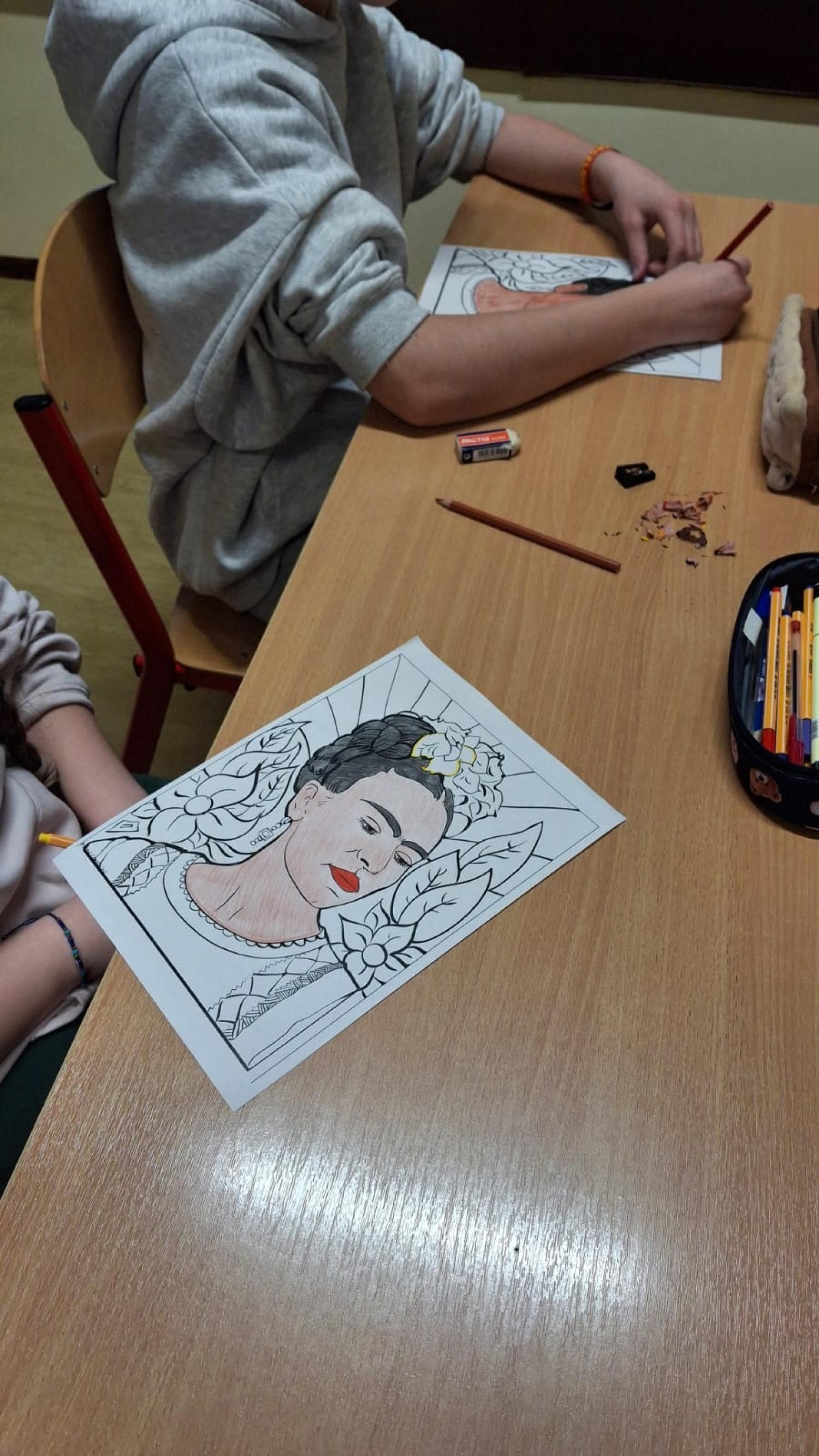 W ramach kolejnej edycji Ogólnopolskiego Projektu Edukacyjnego „Akademia Świetlicowa: Świetliczaki na tropie… ludzi z pasją” zrealizowaliśmy zadanie poświęcone Fridzie Kahlo – wybitnej meksykańskiej malarce, pasjonatce podróży, kultury i kolekcjonowania niezwykłych przedmiotów.
