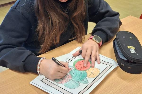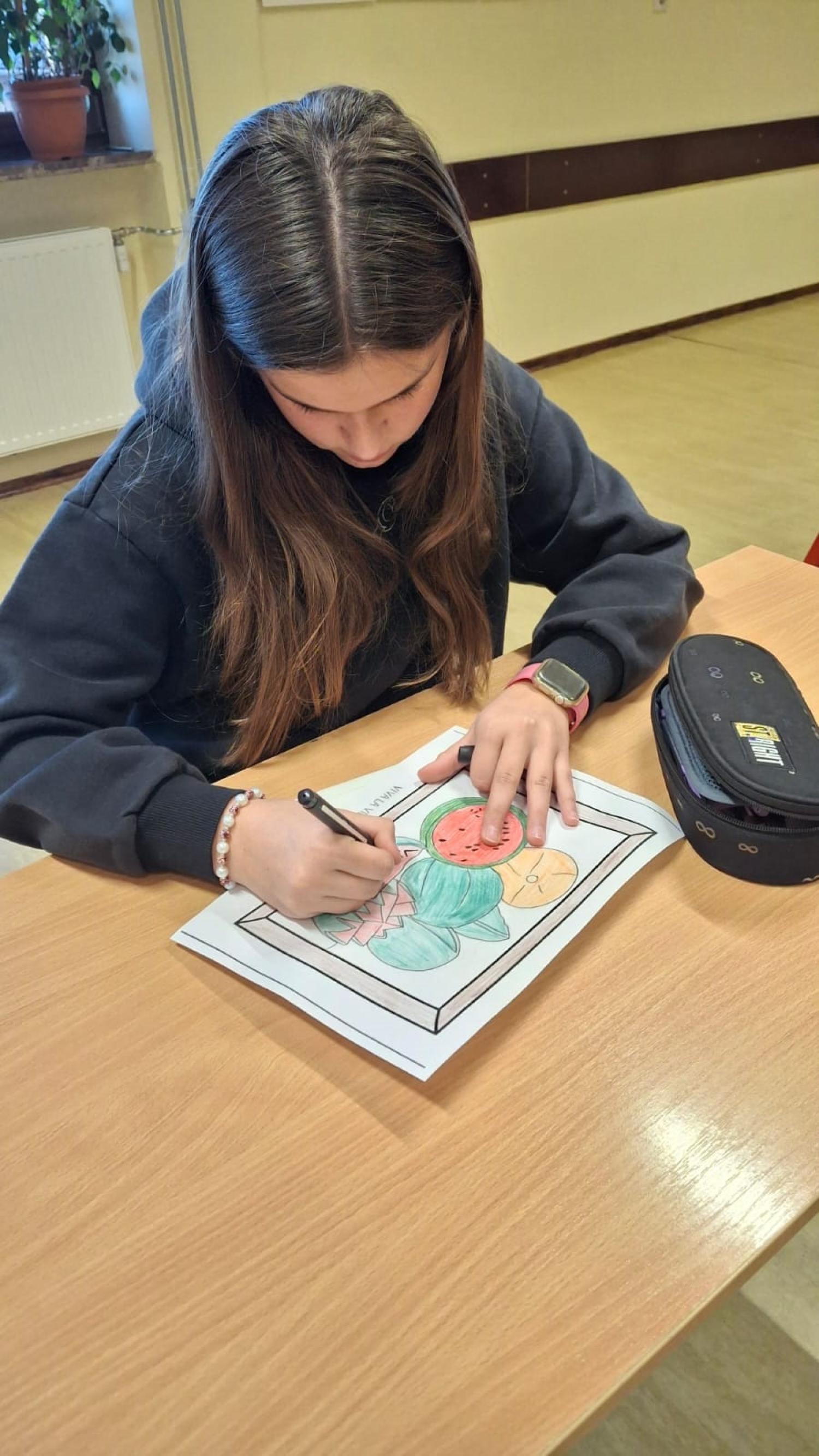 W części praktycznej uczniowie wykonali prace plastyczne inspirowane twórczością Fridy Kahlo, w których dominowały intensywne kolory, kwiatowe motywy i symbole meksykańskiej sztuki.