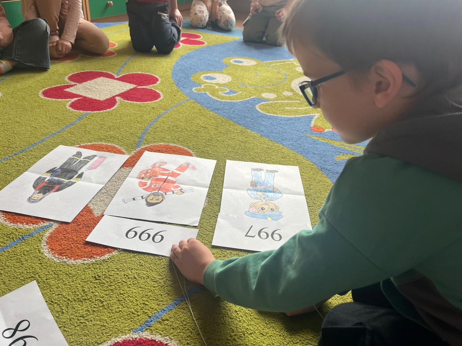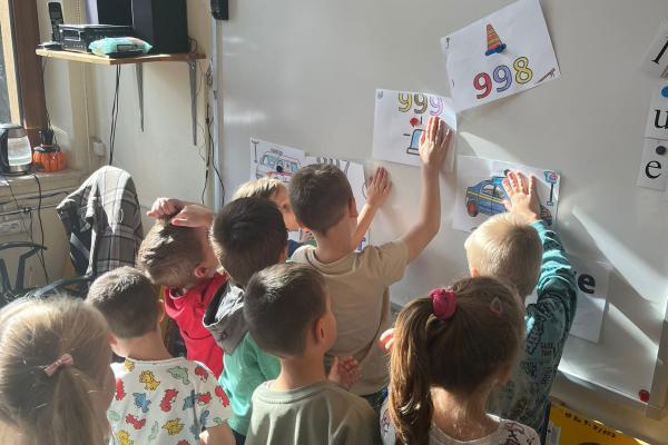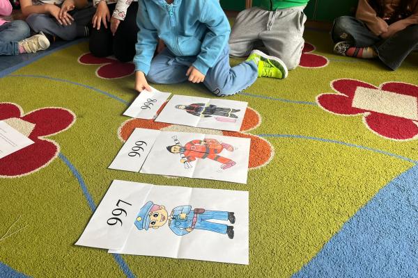 Każde dziecko miało okazję wcielić się w rolę osoby potrzebującej pomocy i zadzwonić na numer alarmowy 112 – oczywiście w zabawie, podczas scenek odgrywanych z nauczycielem. Dzięki temu mogły poćwiczyć, jak spokojnie i wyraźnie przekazać najważniejsze informacje dyspozytorowi.
