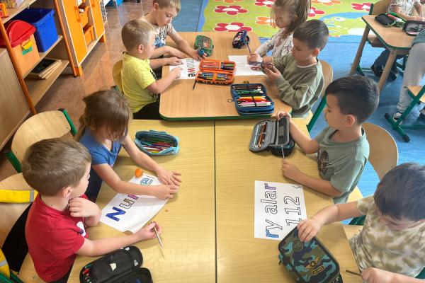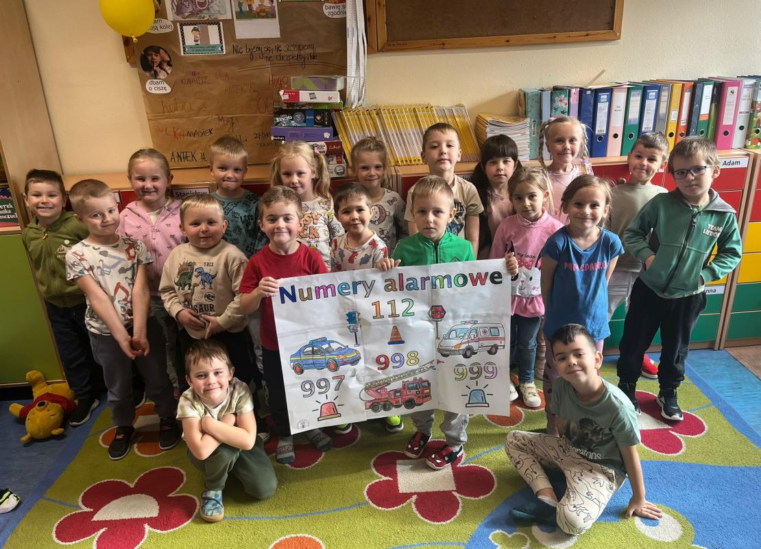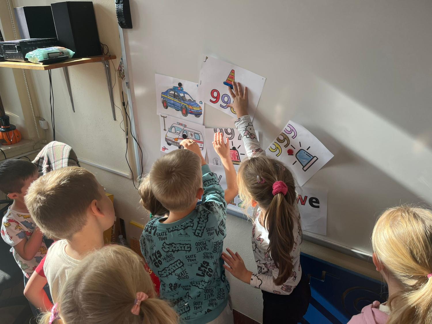Na zakończenie zajęć wspólnie stworzyliśmy kolorowy plakat z numerami alarmowymi i wizerunkami służb ratunkowych, który zawisł na szkolnym korytarzu, przypominając wszystkim, jak ważna jest znajomość tych numerów. Zajęcia były nie tylko edukacyjne, ale też pełne zaangażowania i emocji!