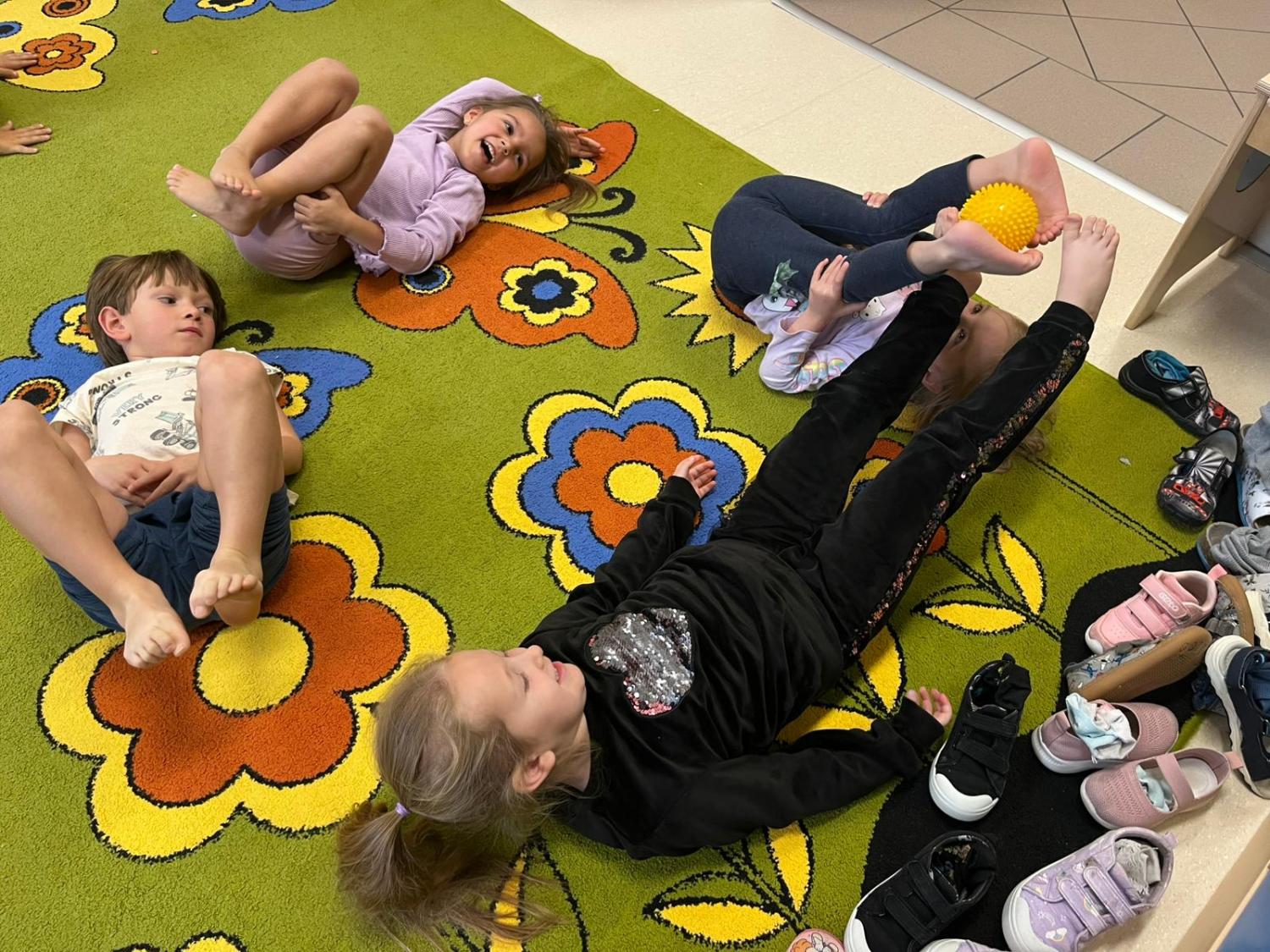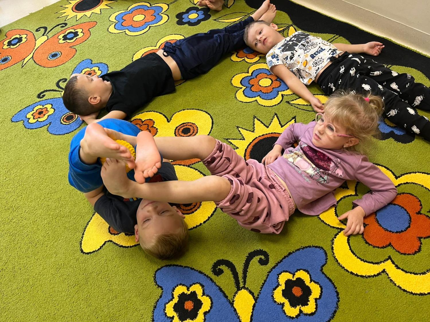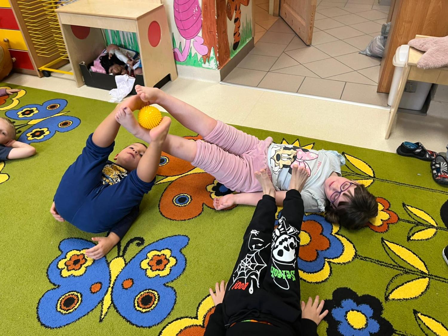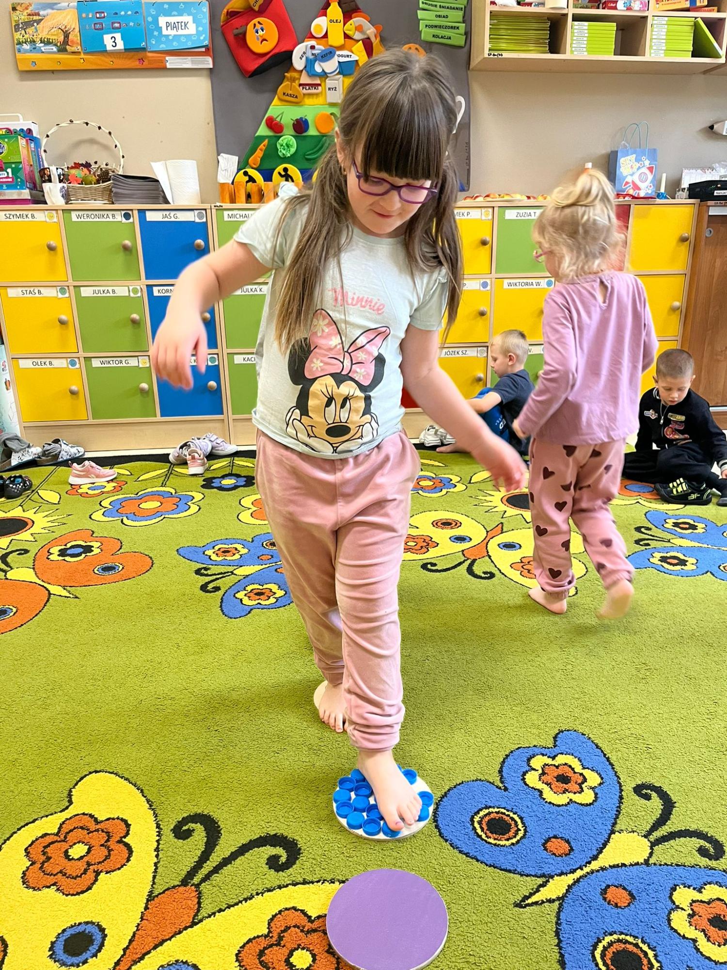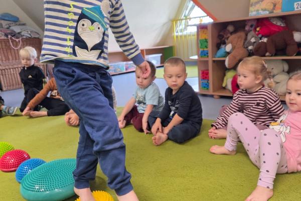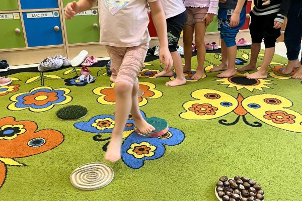 Na przedszkolaków czekała ścieżka sensoryczna, po której mogły przechodzić boso, odkrywając różne faktury – miękkie i szorstkie, chłodne i ciepłe. Dzieci uczestniczyły również w zabawie z piłkami. Każdy krok był nowym doświadczeniem, które nie tylko dostarczało radości, ale też wspierało rozwój równowagi i koordynacji.
