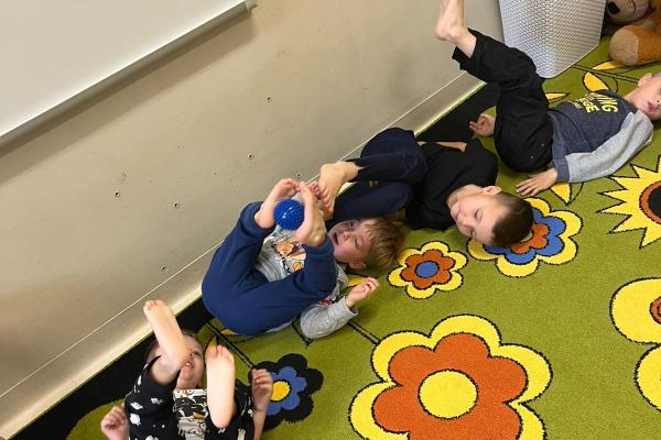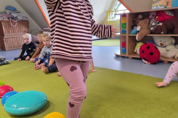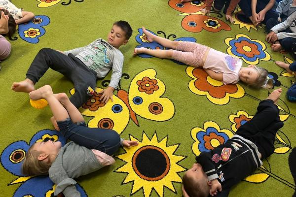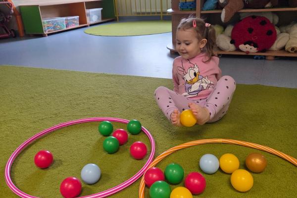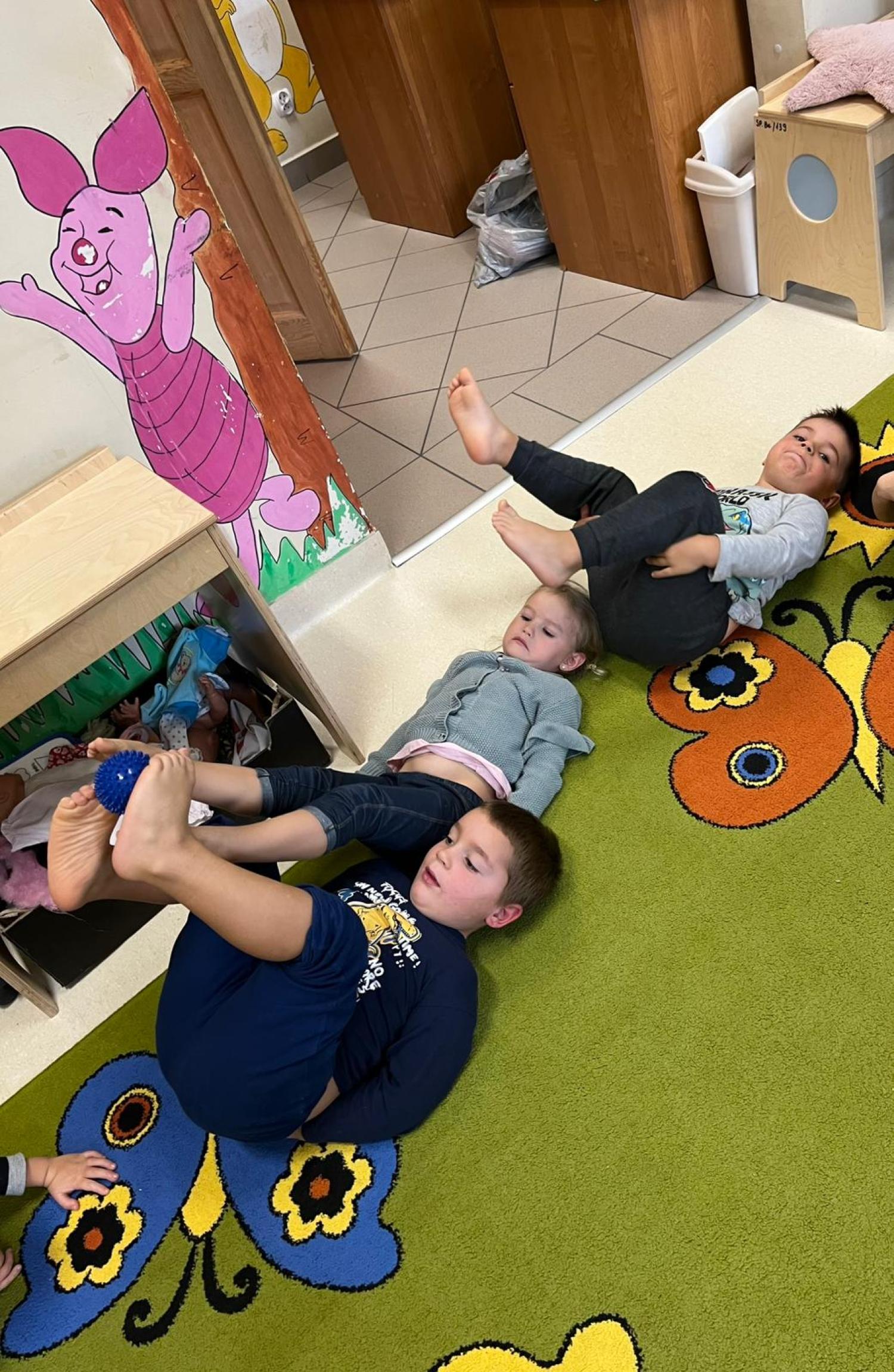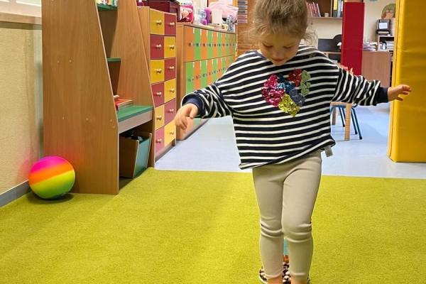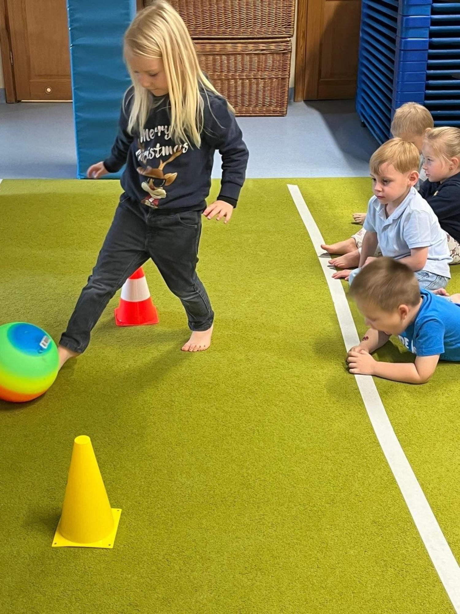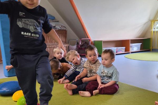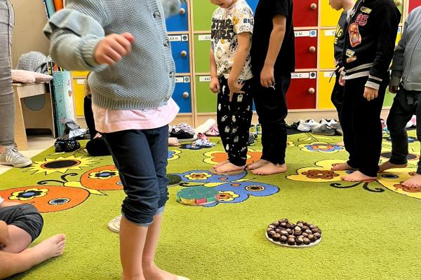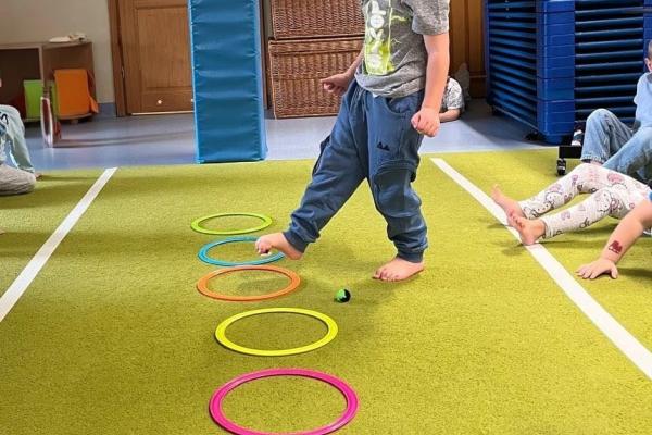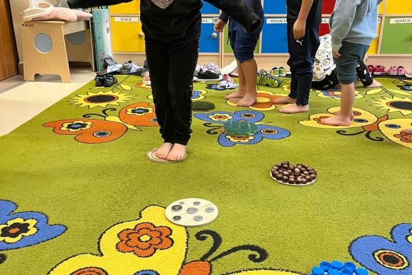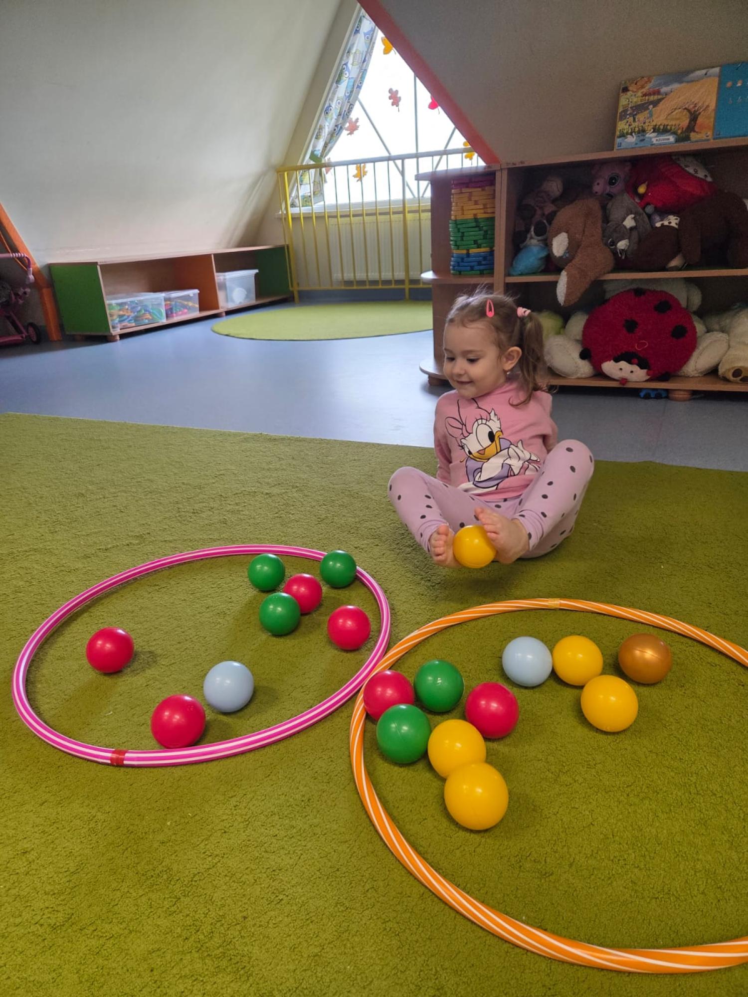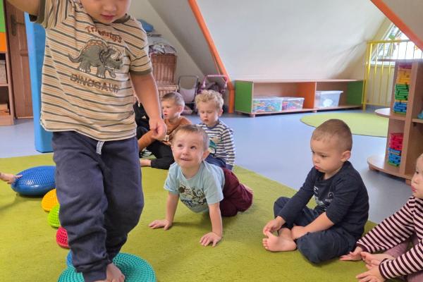 Na przedszkolaków czekała ścieżka sensoryczna, po której mogły przechodzić boso, odkrywając różne faktury – miękkie i szorstkie, chłodne i ciepłe. Dzieci uczestniczyły również w zabawie z piłkami. Każdy krok był nowym doświadczeniem, które nie tylko dostarczało radości, ale też wspierało rozwój równowagi i koordynacji.