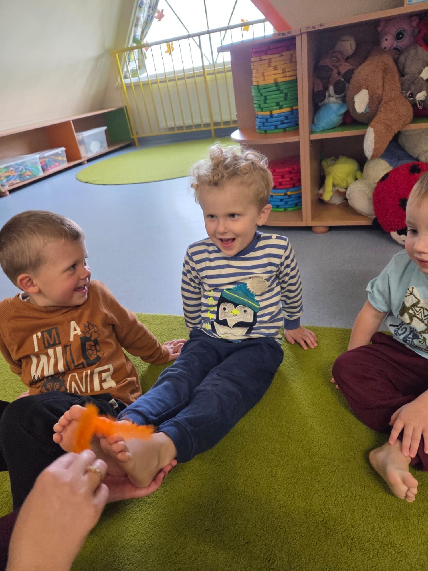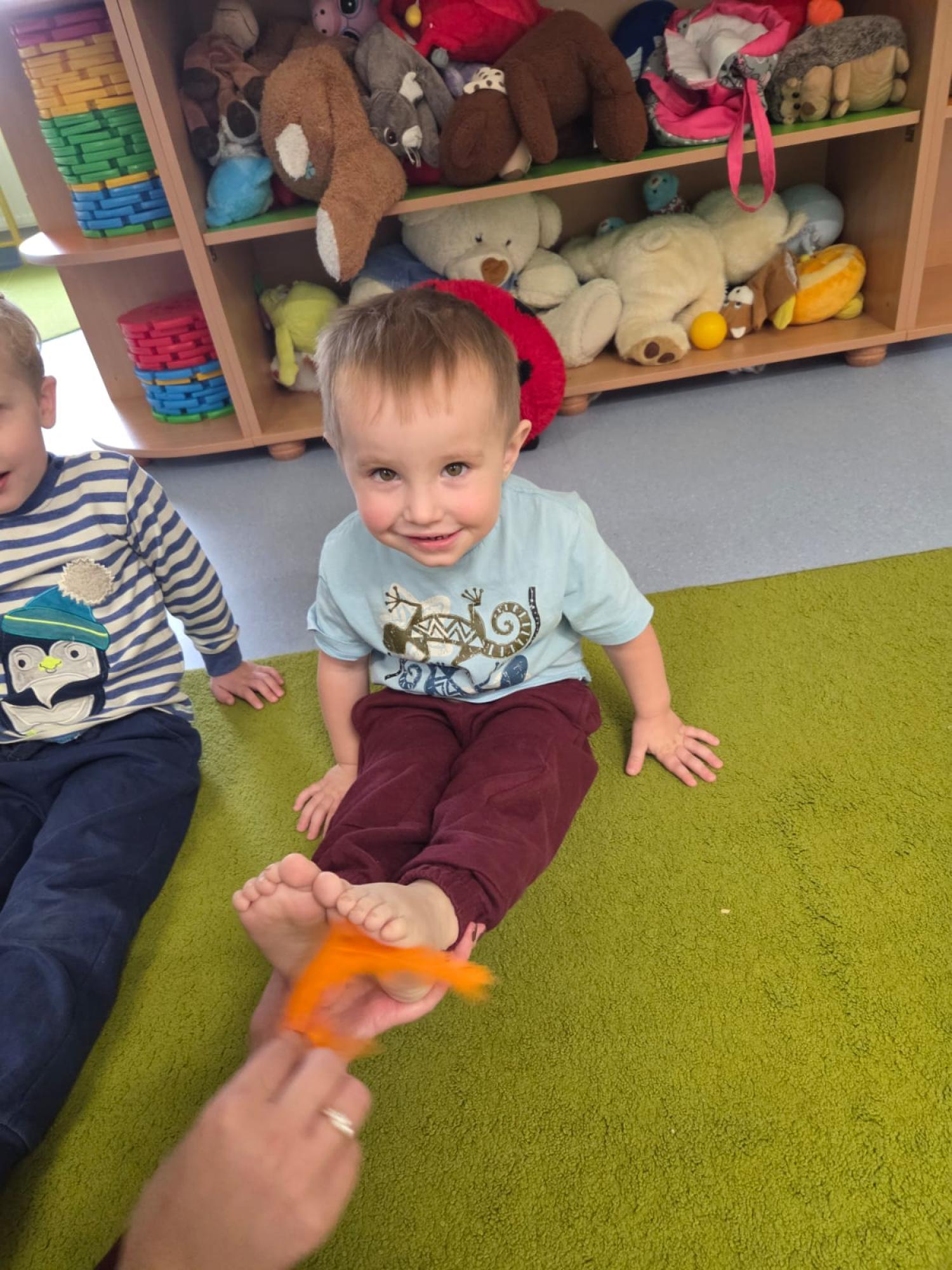 W naszym przedszkolu obchodziliśmy „Dzień bez skarpetek” – pełen uśmiechu, ruchu i ciekawych wrażeń dotykowych! Tego dnia chętne dzieci mogły zdjąć skarpetki i poczuć świat pod stopami w zupełnie nowy sposób.