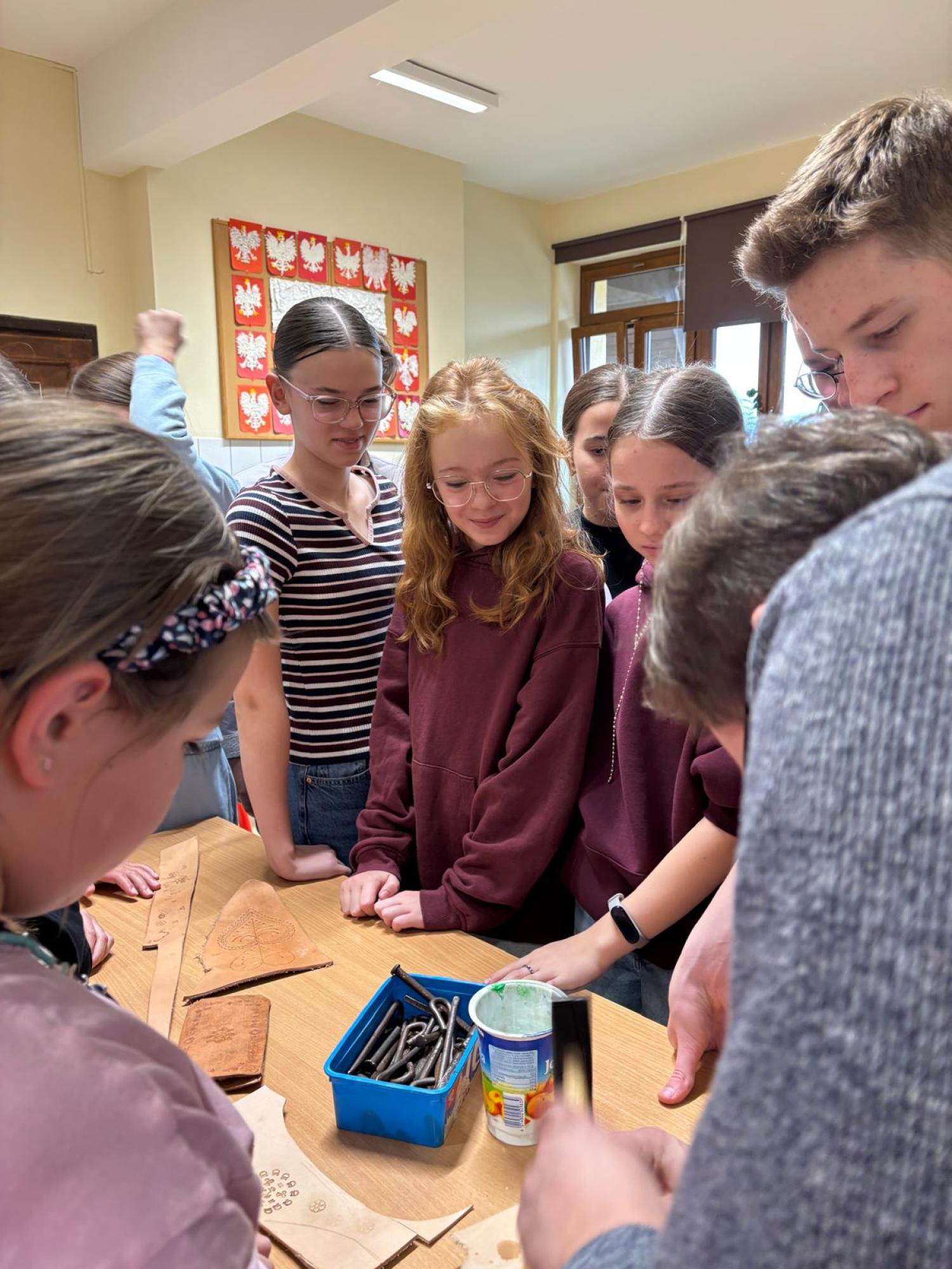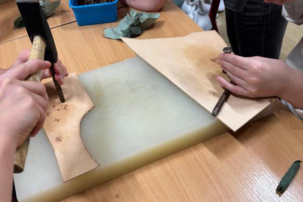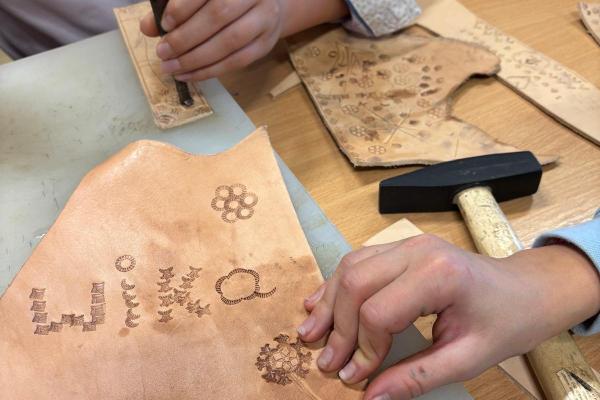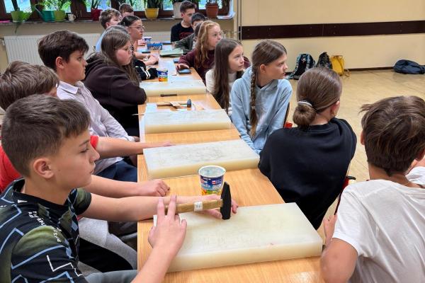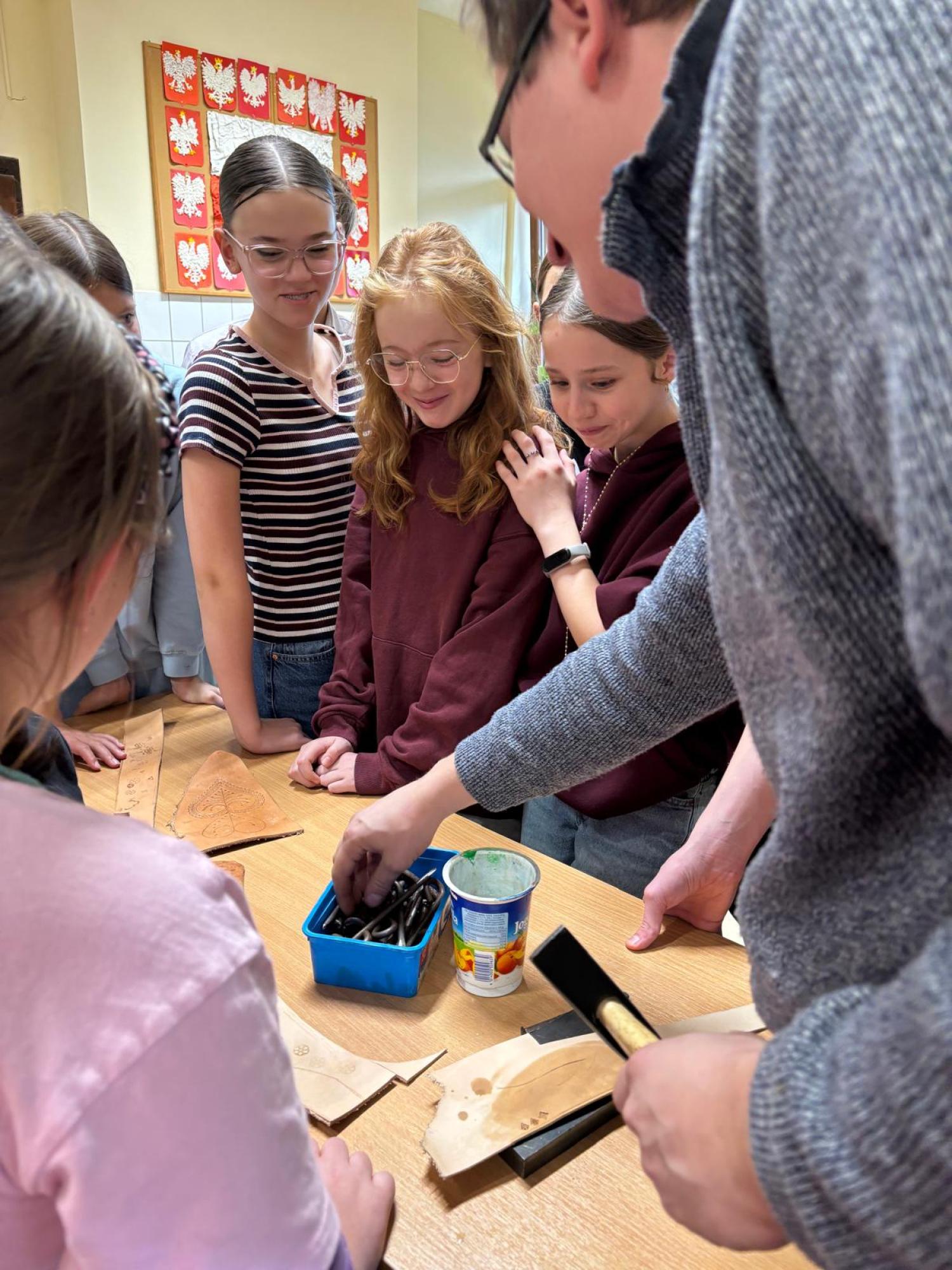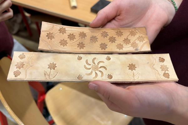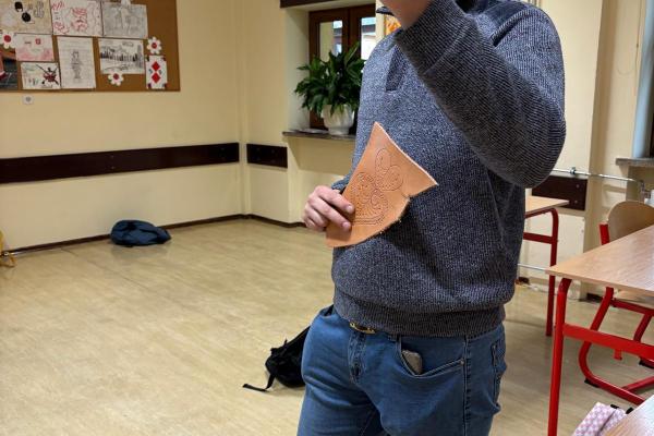 Artysta opowiedział im, w jaki sposób wykonuje się tradycyjne opaski, torebki skórzane oraz kierpce. Podczas spotkania uczniowie mogli spróbować swoich sił w pracy ze skórą – samodzielnie wykonali piękne zakładki do książek. Dziękujemy Bukowiańskiemu Centrum Kultury za współpracę!