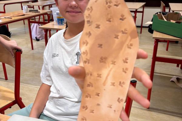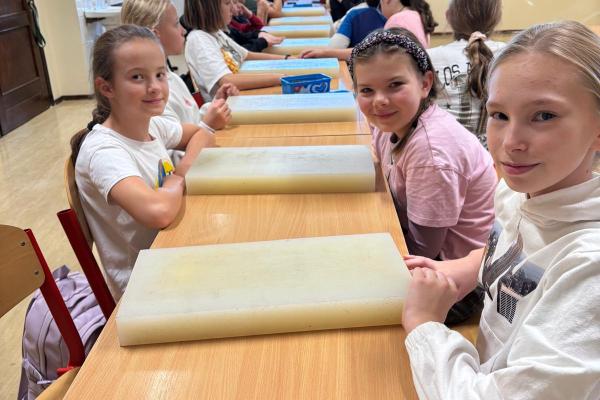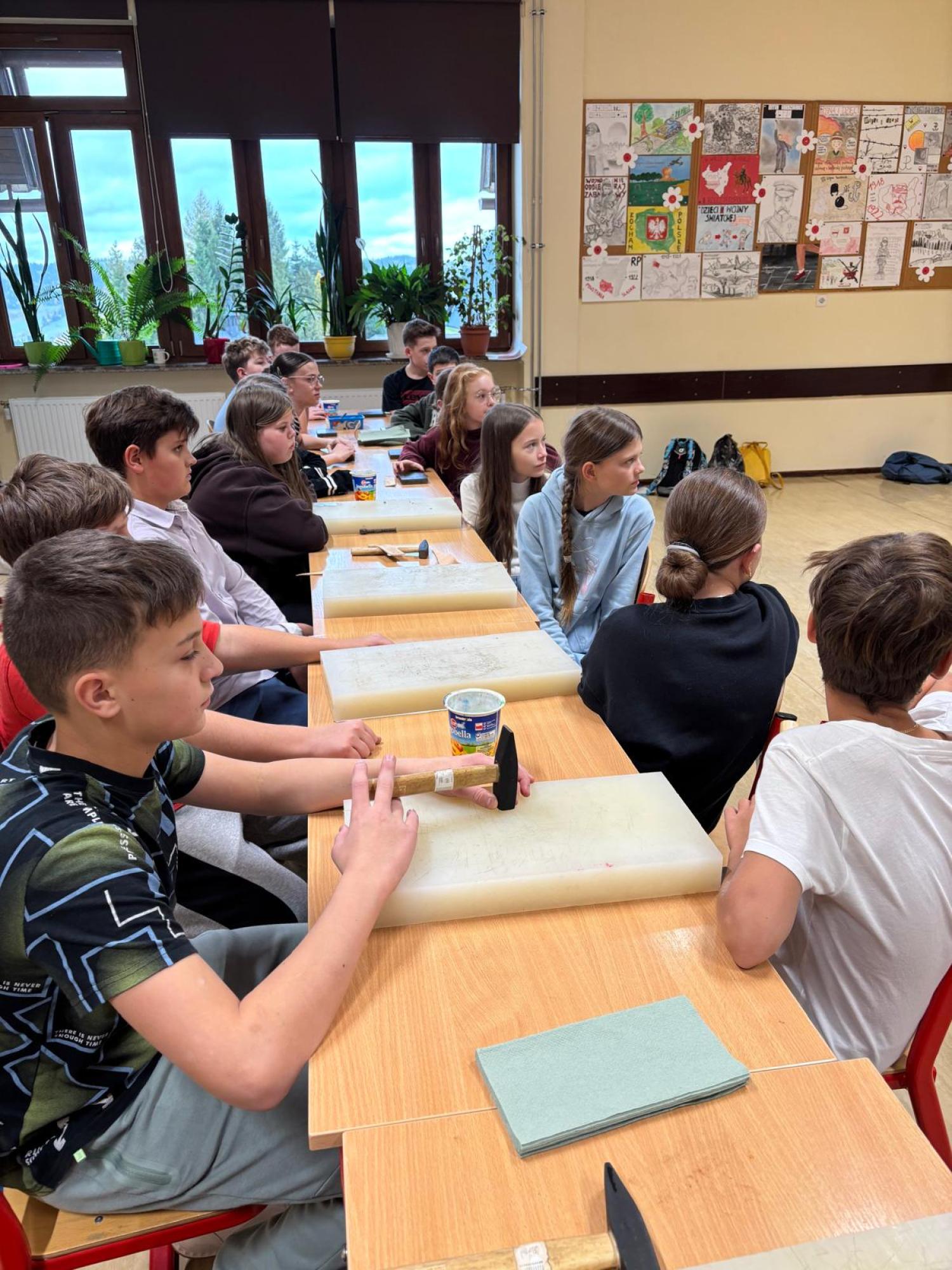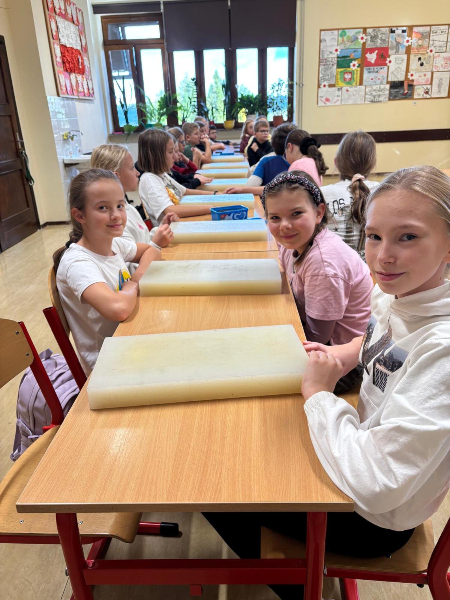Artysta opowiedział im, w jaki sposób wykonuje się tradycyjne opaski, torebki skórzane oraz kierpce. Podczas spotkania uczniowie mogli spróbować swoich sił w pracy ze skórą – samodzielnie wykonali piękne zakładki do książek. Dziękujemy Bukowiańskiemu Centrum Kultury za współpracę!