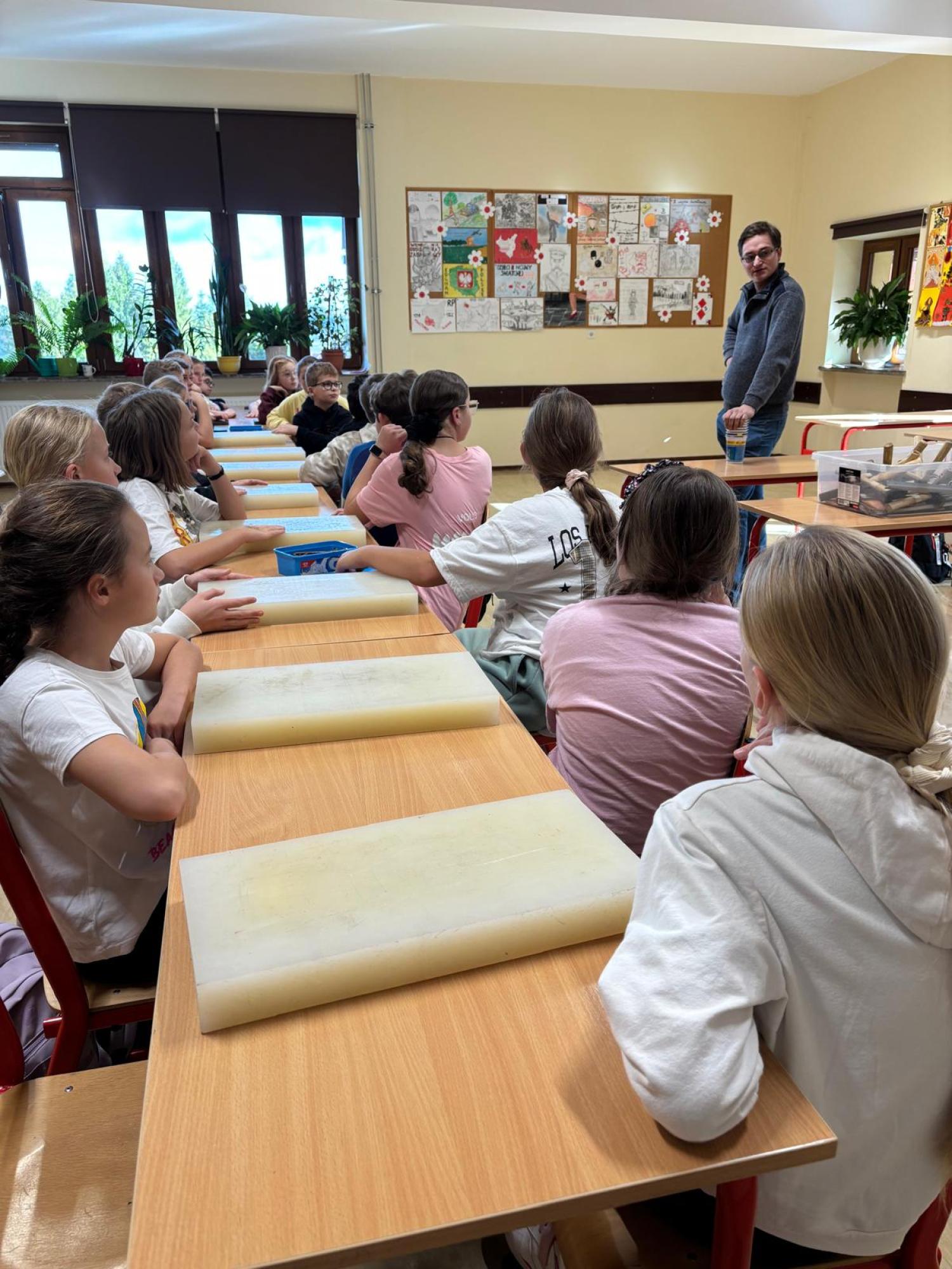 28 października 2025 roku uczniowie klas Vb i VIa mieli okazję spotkać się z naszym bukowiańskim twórcą ludowym – Bartłomiejem Łukaszczykiem.